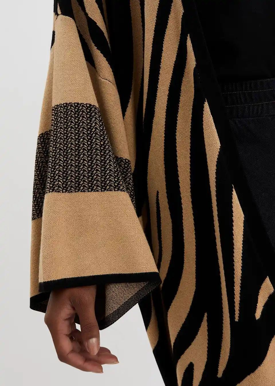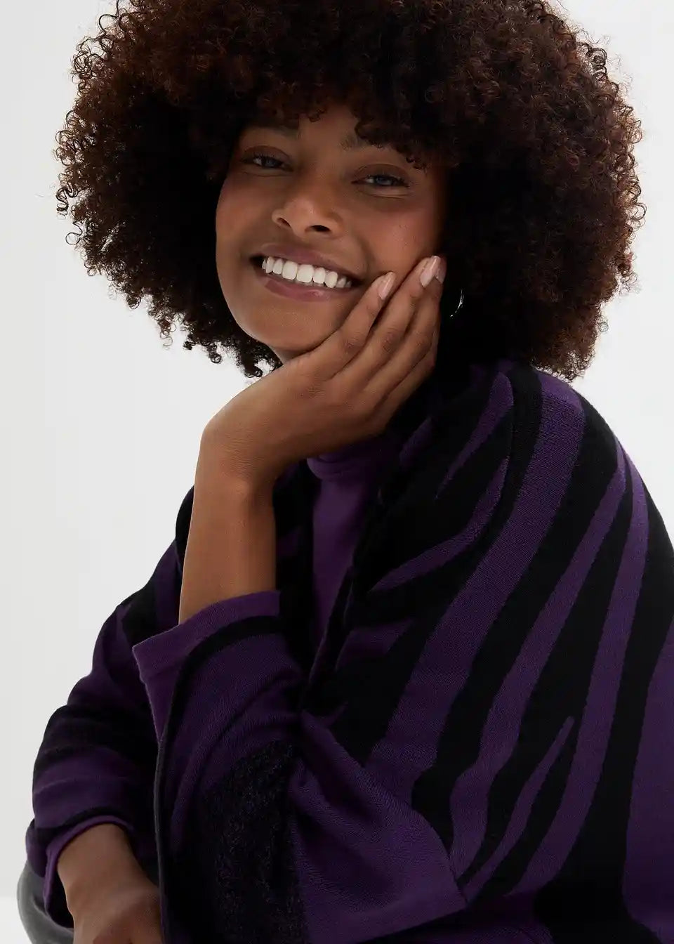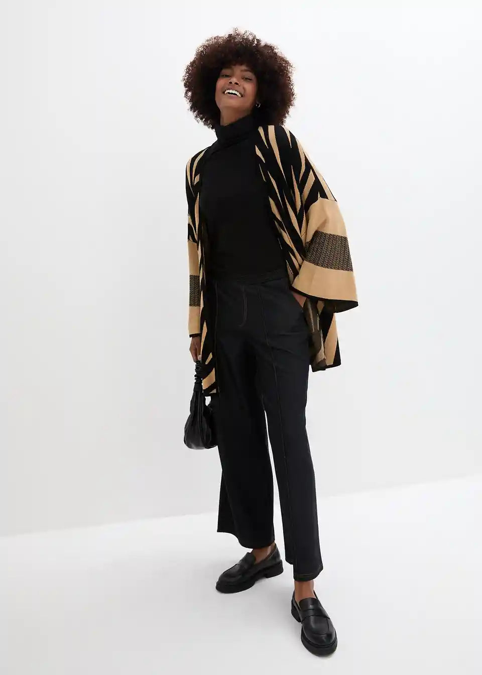 Das Material ist recht hochwertig, fester Feinstrick. Leider lässt das Muster die Trägerin viel fülliger erscheinen.