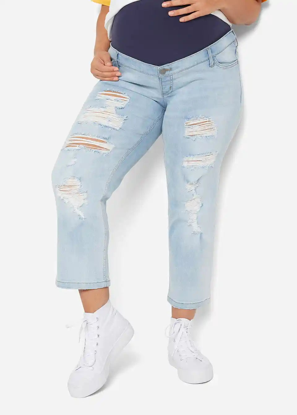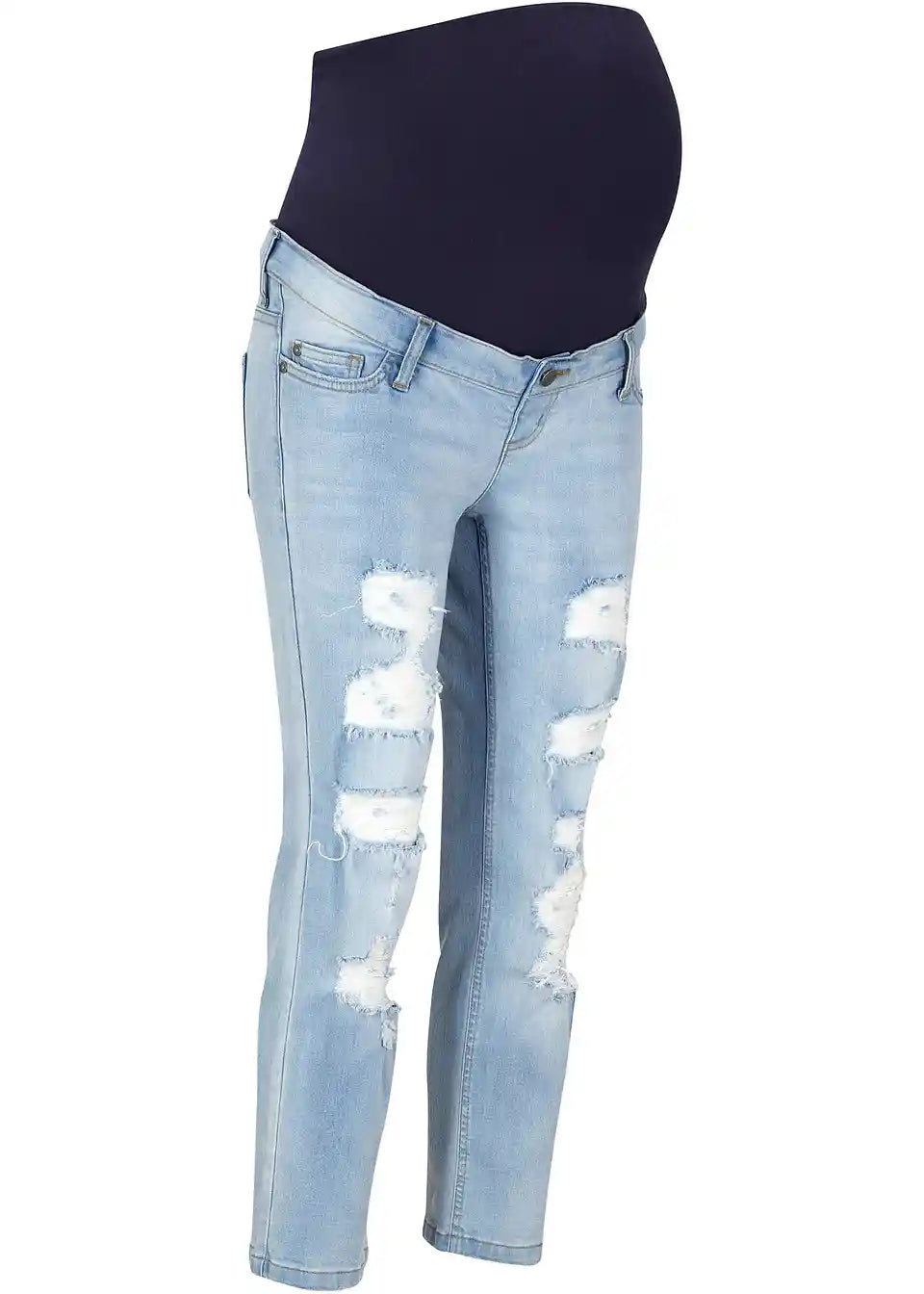 Verkürzte Umstandsjeans mit Destroy-Effekten