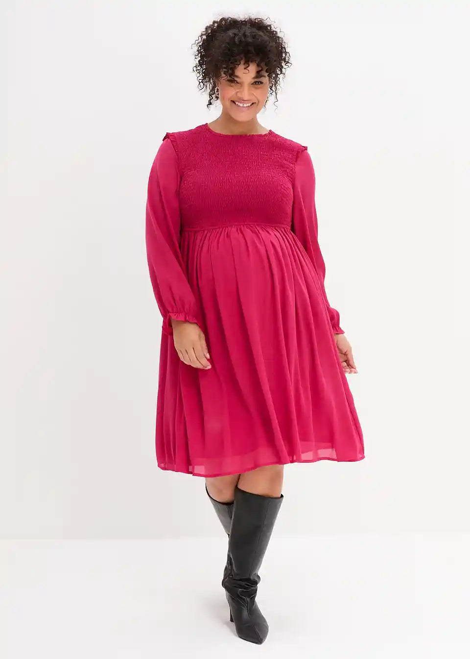 Elegantes Kleid mit Raffungen an den Schultern und Mehrweite für den Schwangerschaftsbauch