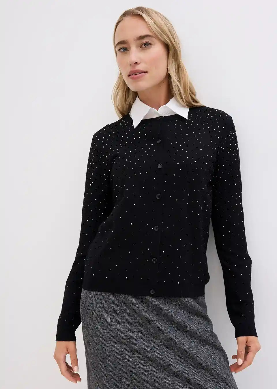hübsche Strickjacke aus weichem Viskose-Mix mit Glitzersteinchen