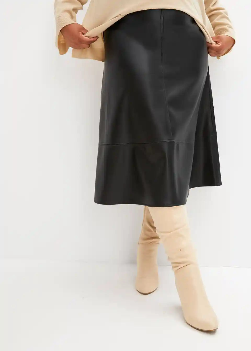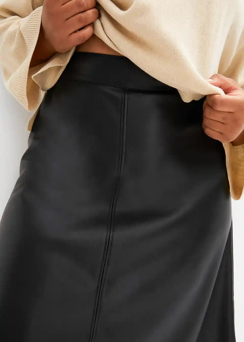 Modischer Lederimitat-Rock mit verdecktem Verschluss.