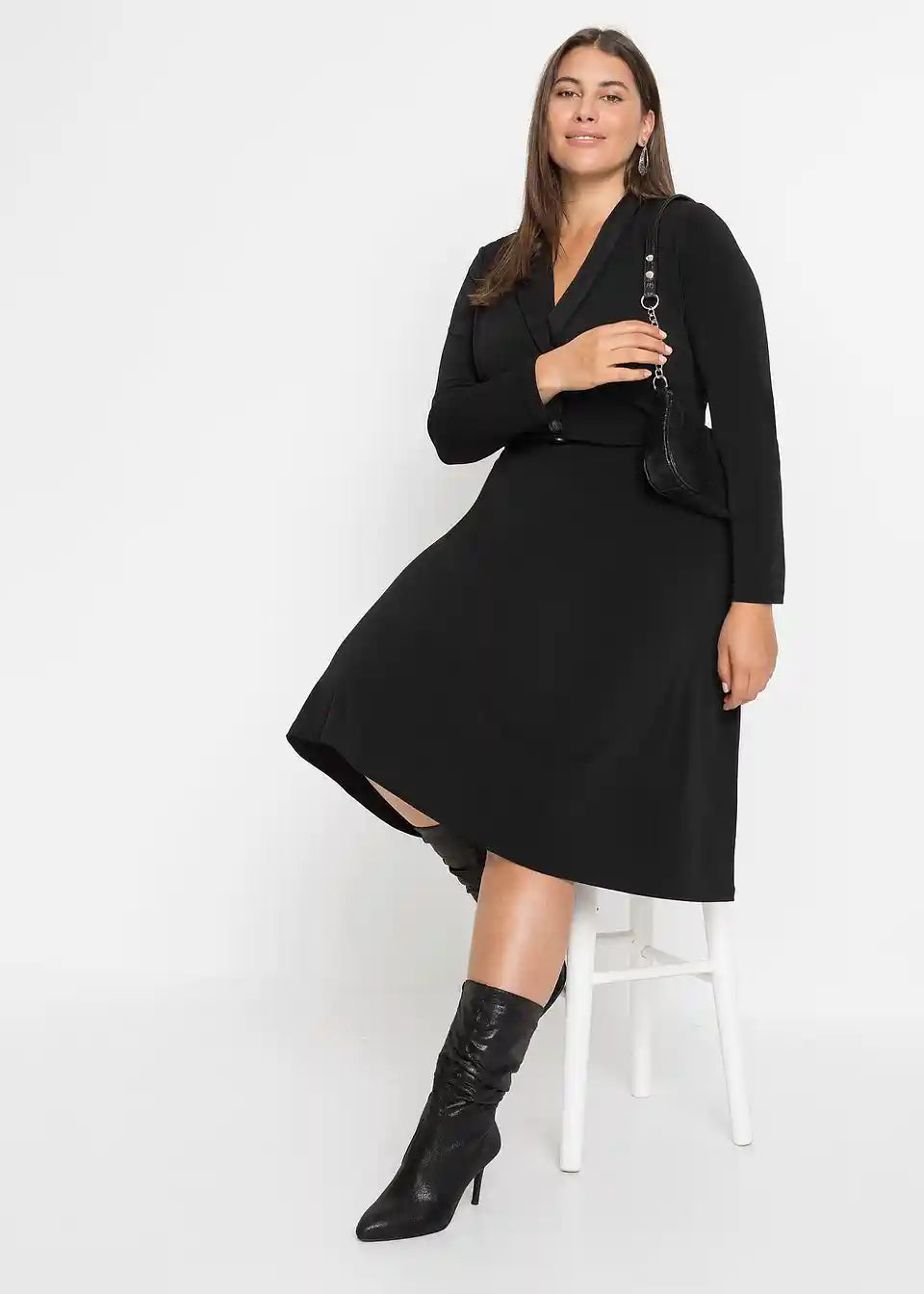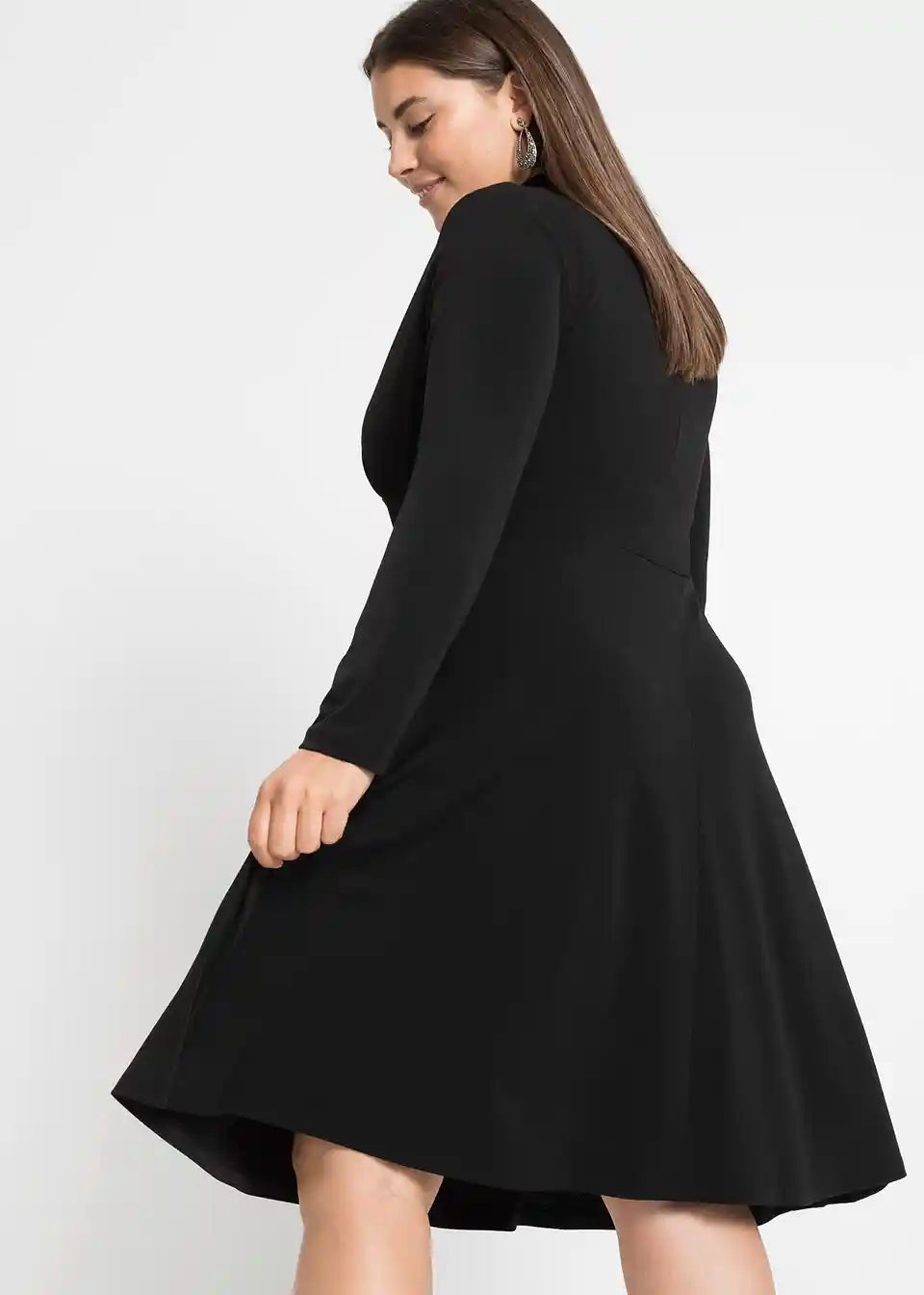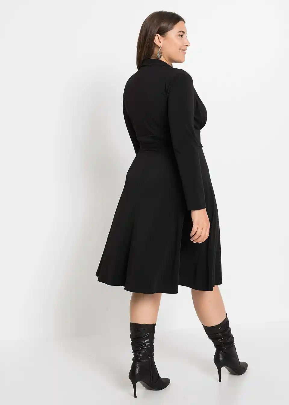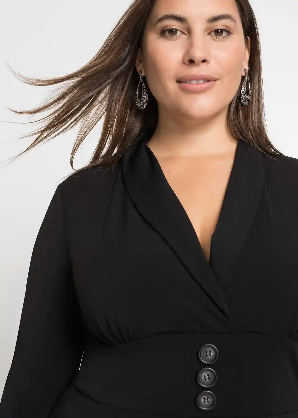 Modisches Jerseykleid mit Knöpfen verziert, das Kleid besitzt einen auffallenden Schal-Kragen.
