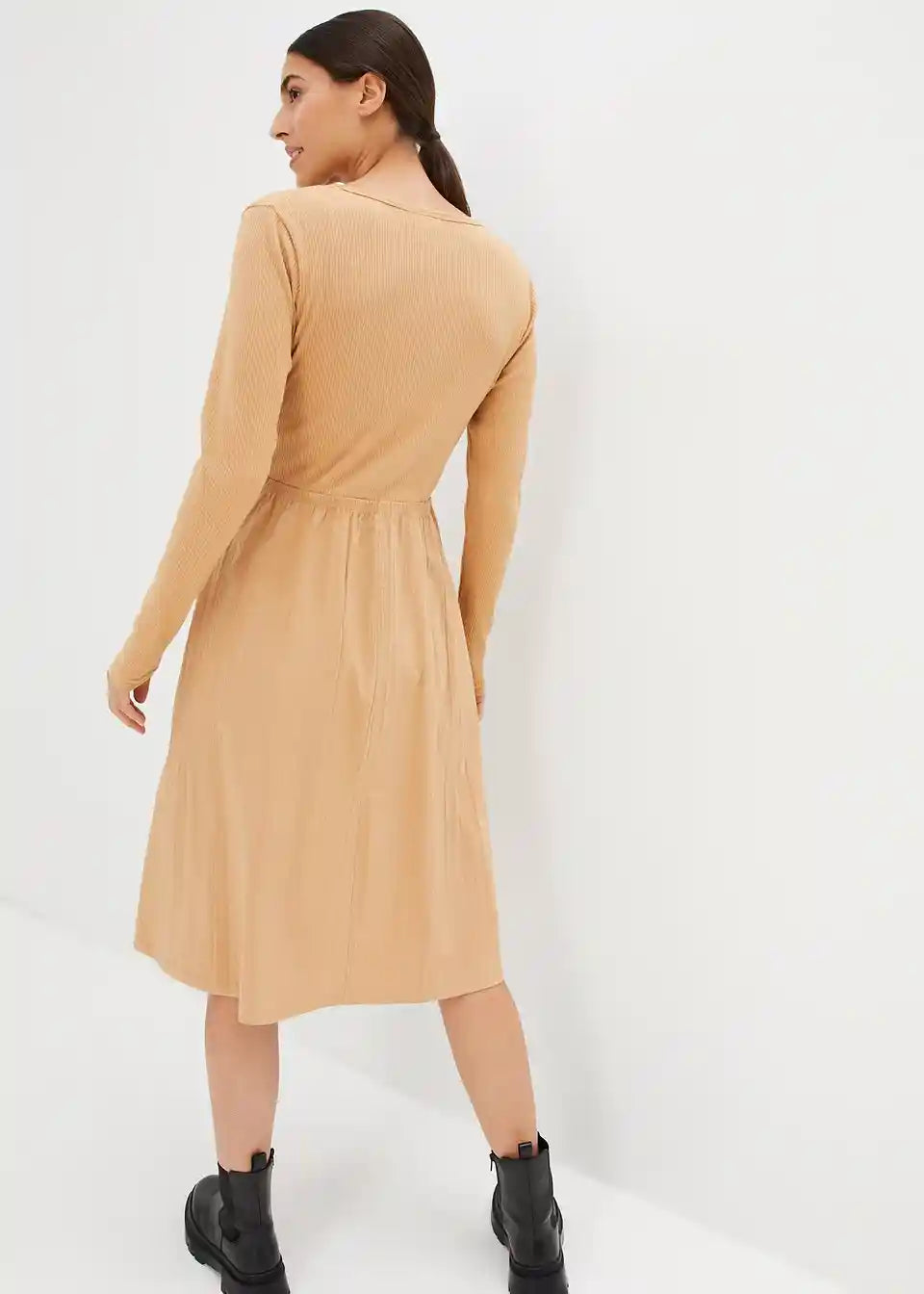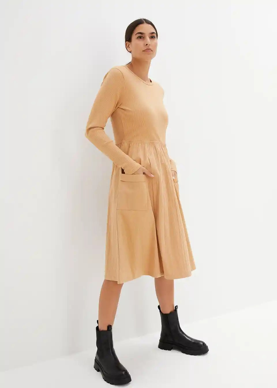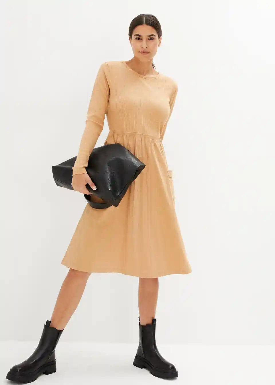 Modisches Kleid mit dekorativer Raffung und Taschen