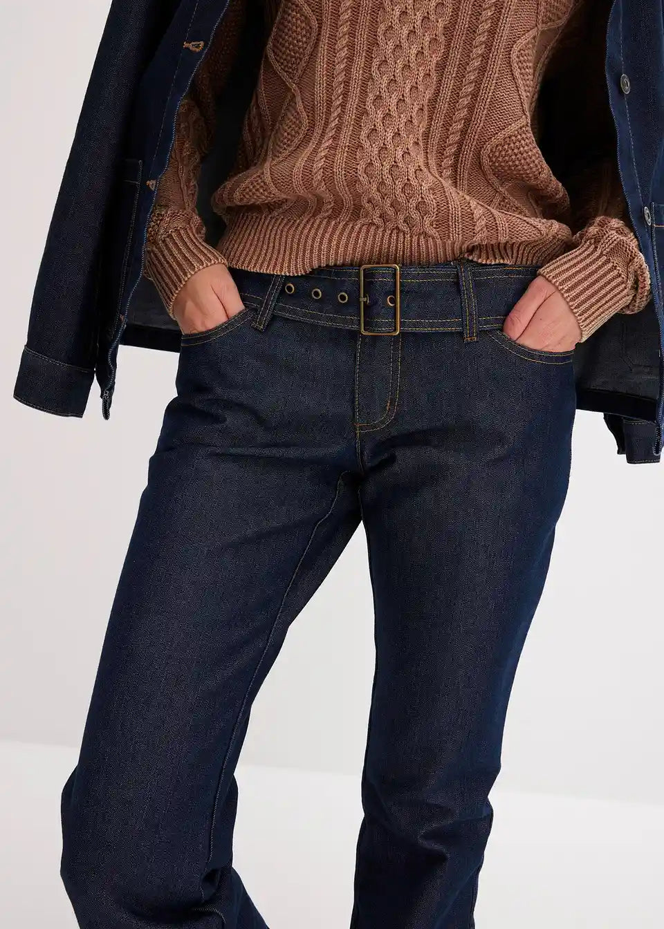 Schlagjeans Low Waist mit Gürtel, rinse washed(2-tlg. Set)