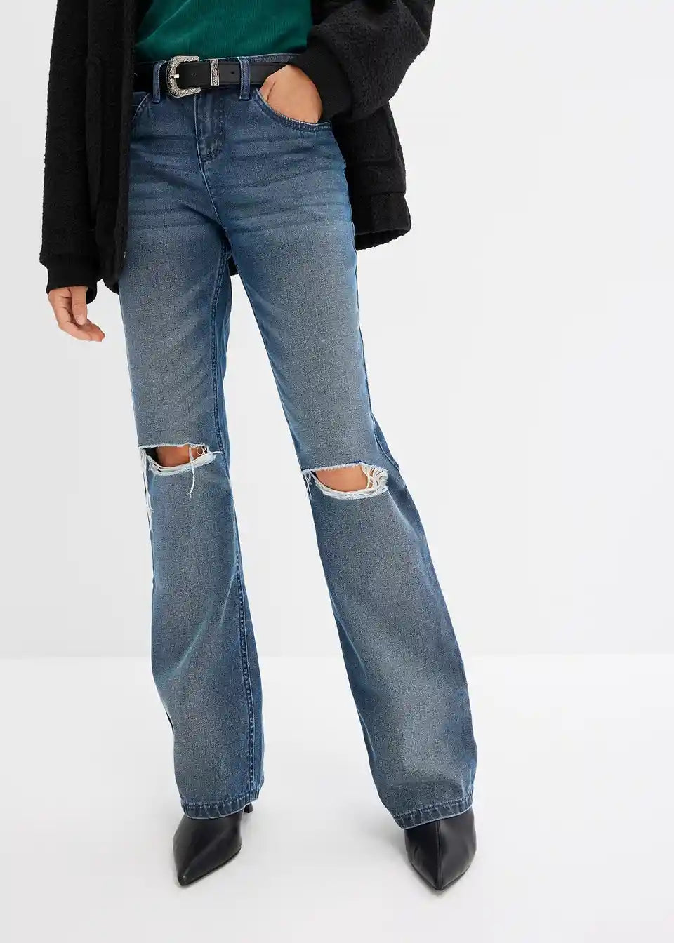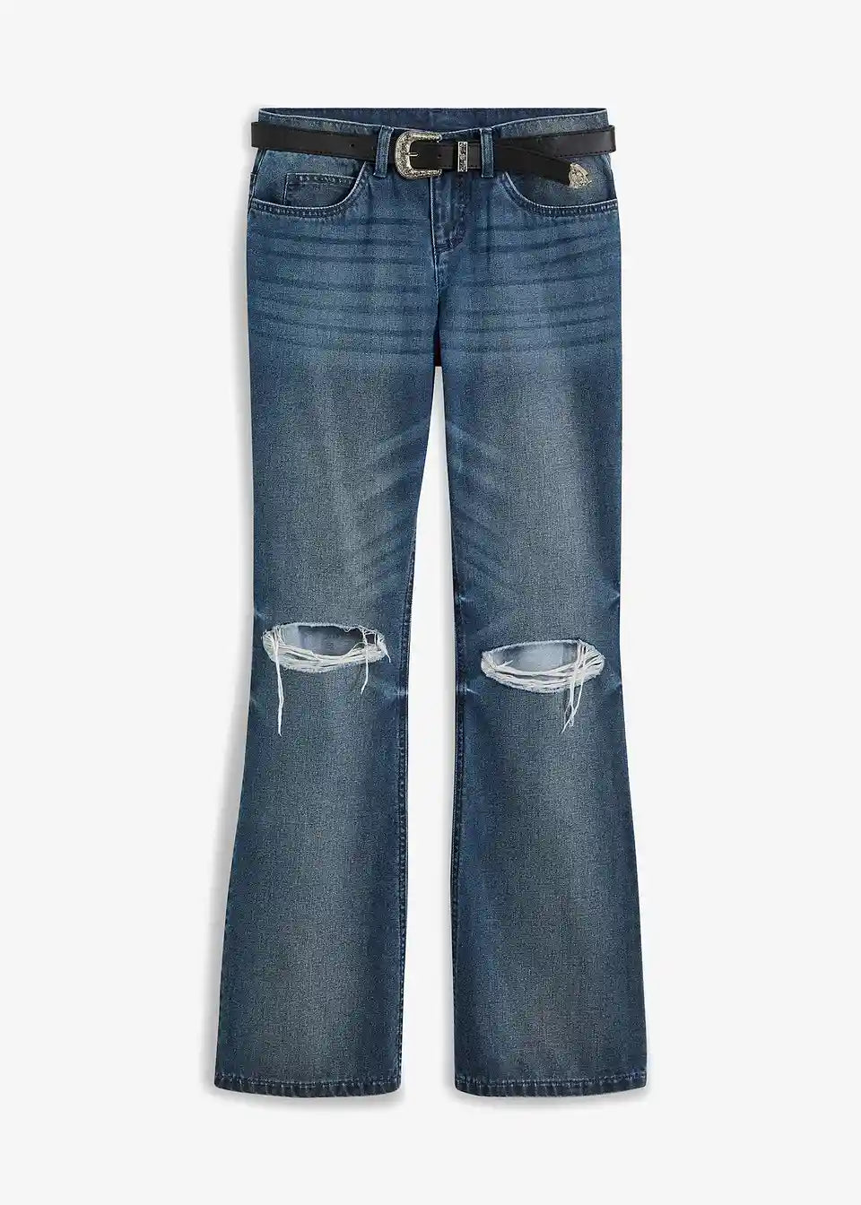 Jeans mit Gürtel (2-tlg. Set) und Destroy Effekten