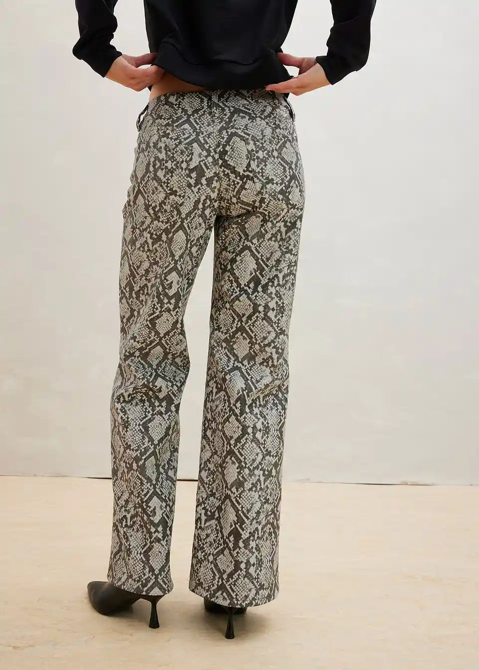 Bedruckte Lederimitat-Hose mit weitem Bein