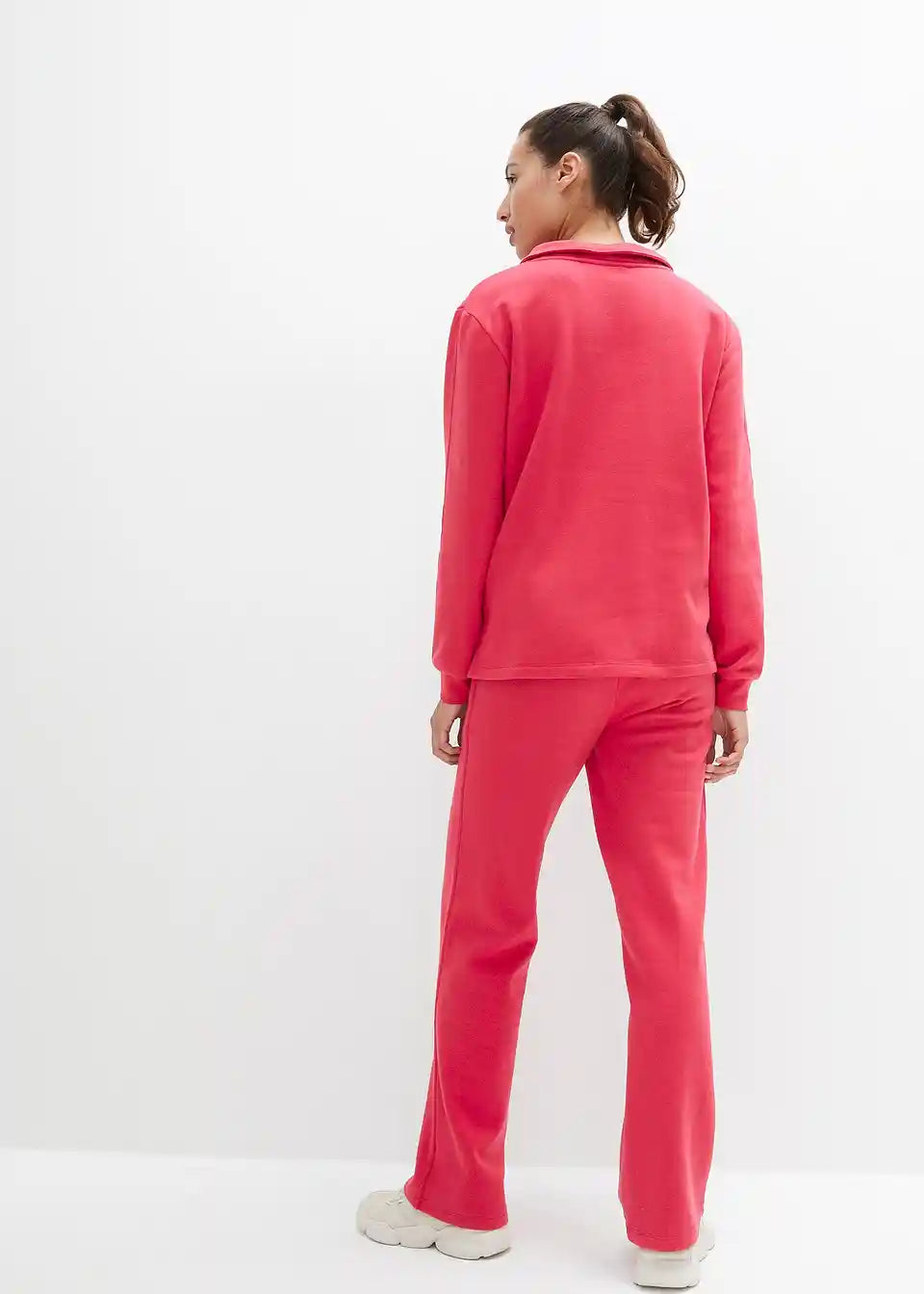 Jogginganzug aus Sweatshirt mit Kragen und weiter Sweathose mit weich aufgerauter Innenseite (2-teilig)