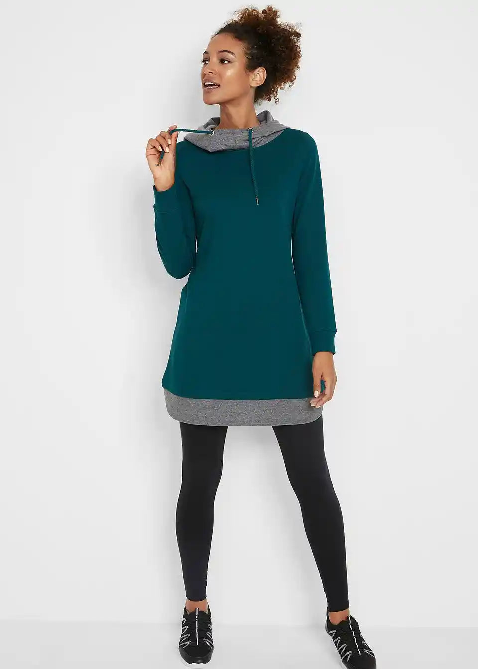 Longsweatshirt mit großem Kragen und Kapuze mit Tunnelzug, abgerundeter Saum mit Schlitzen, Länge in Gr. 40/42 ca. 88 cm, Leggings: Innenbeinlänge in Gr. 40/42 ca. 74 cm, maschinenwaschbar.