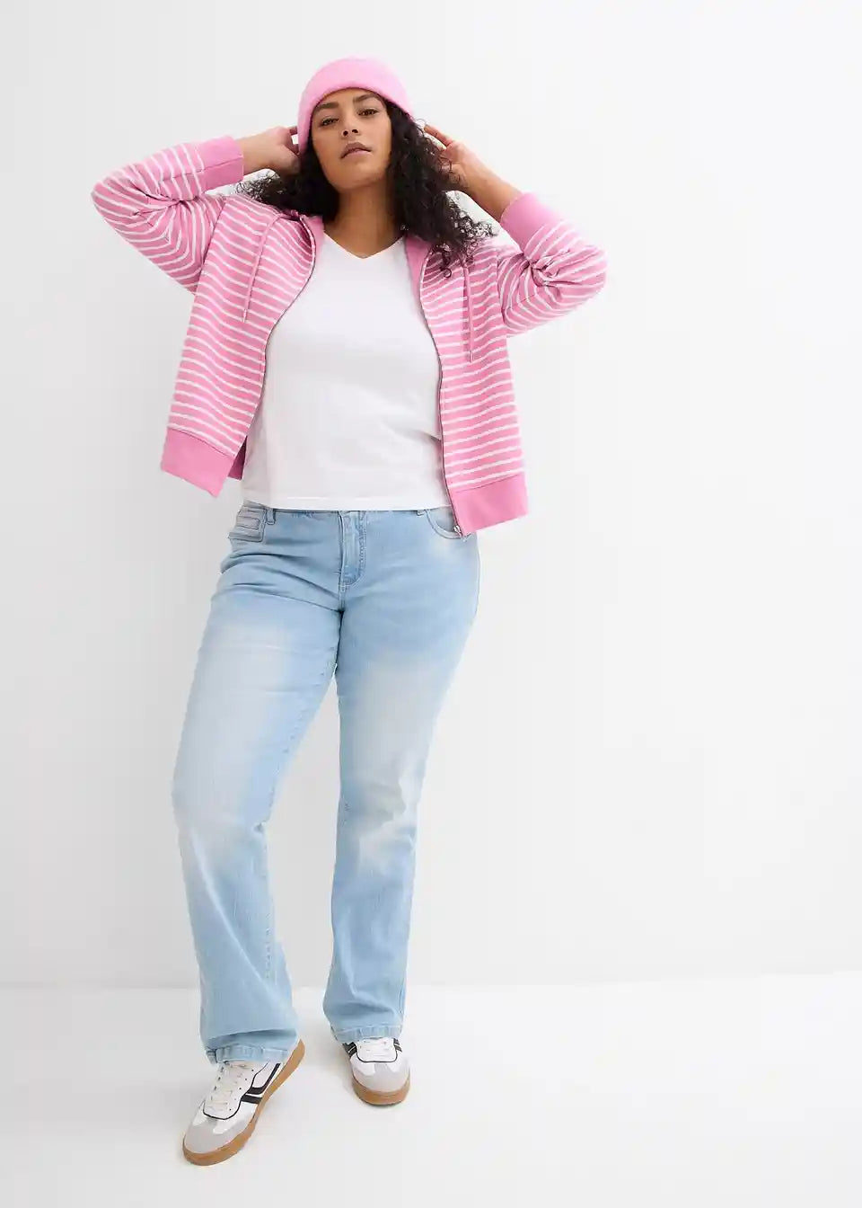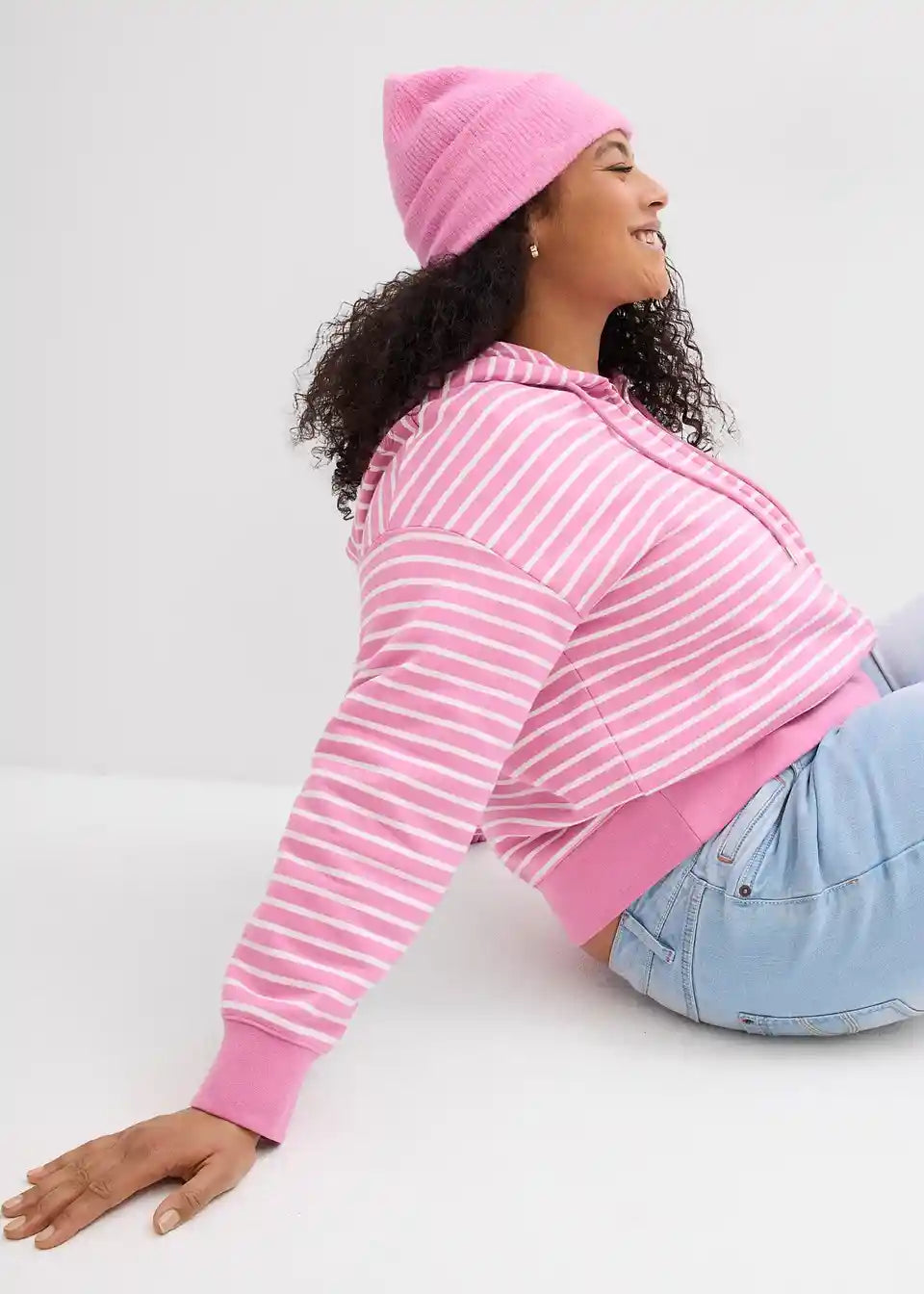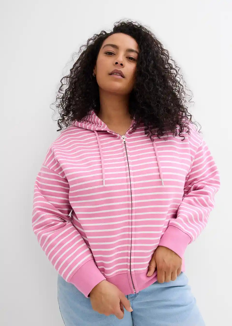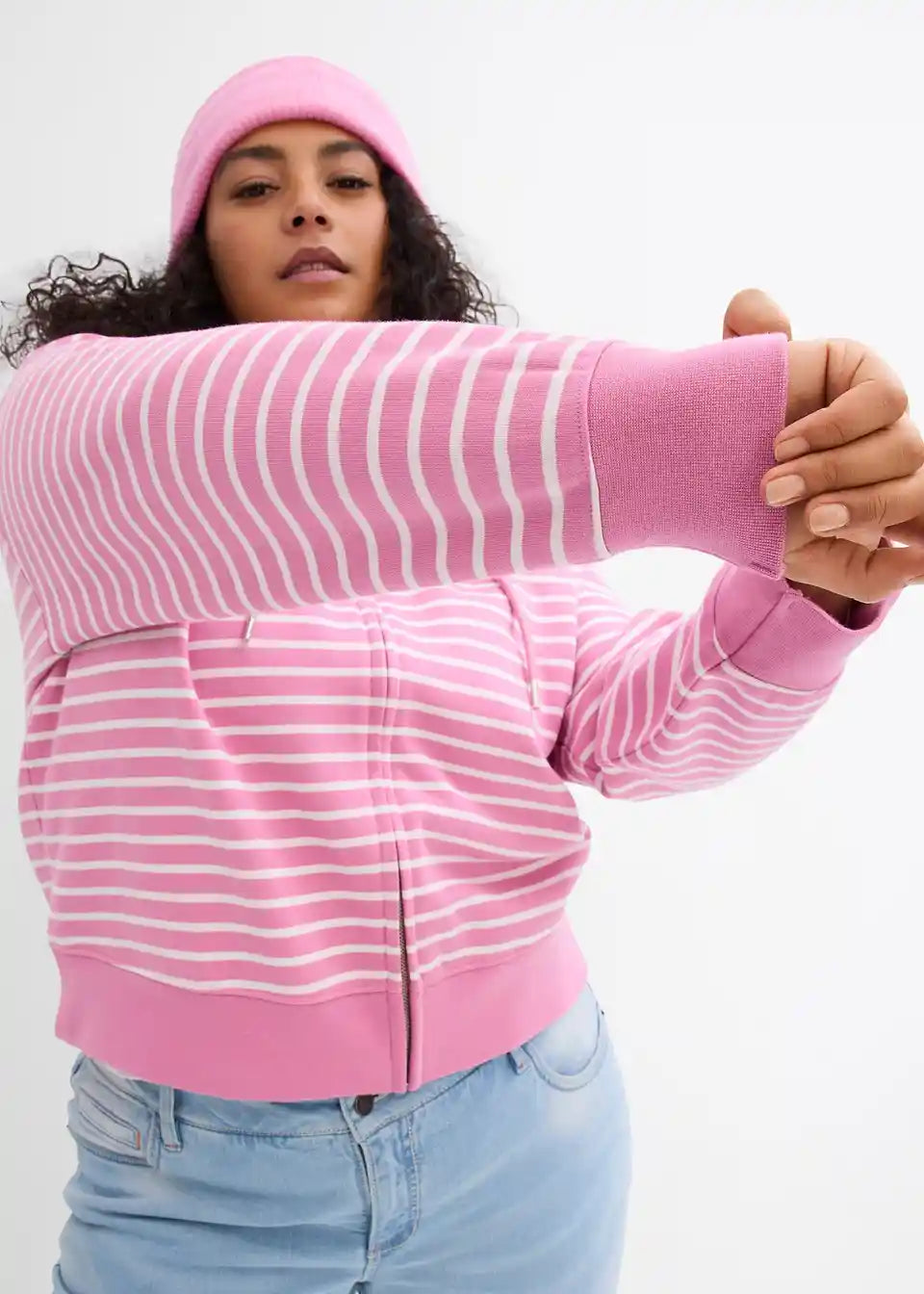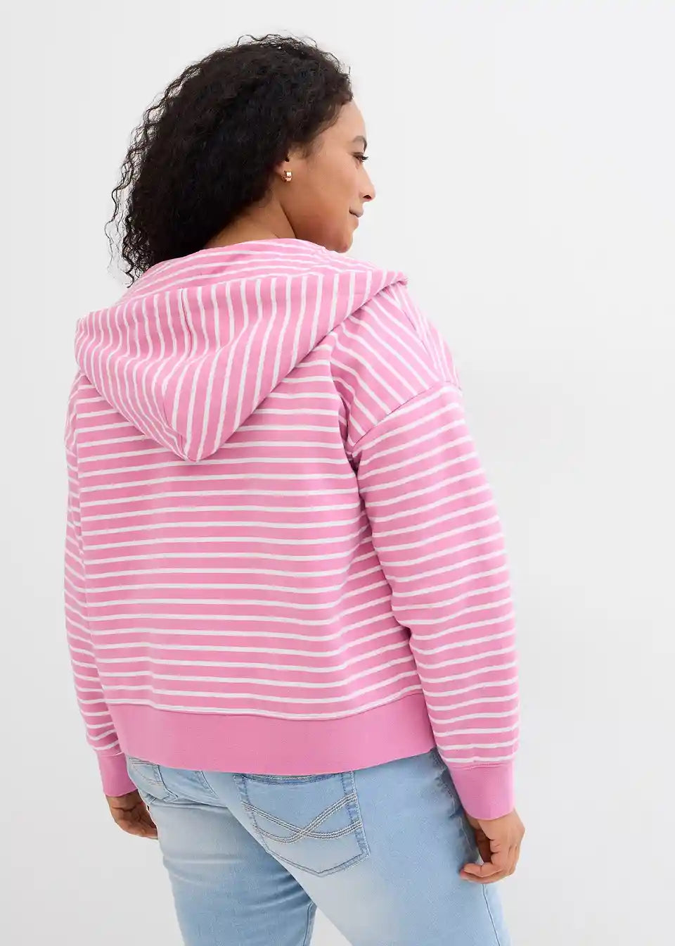 Weit geschnittene, kurze Sweatjacke in moderner Streifenoptik