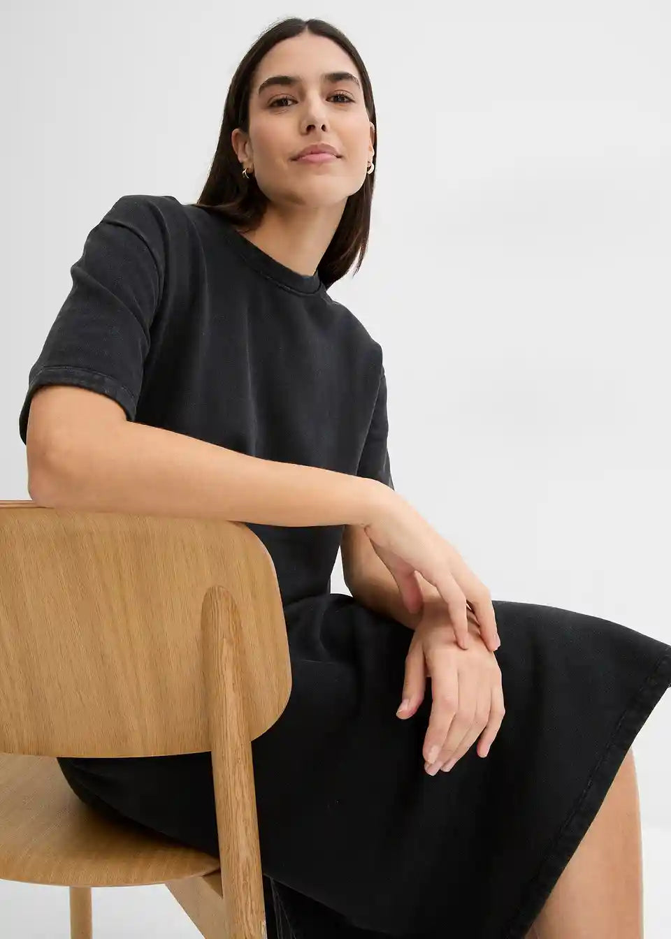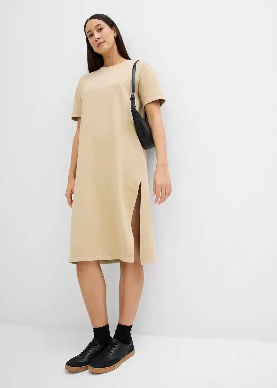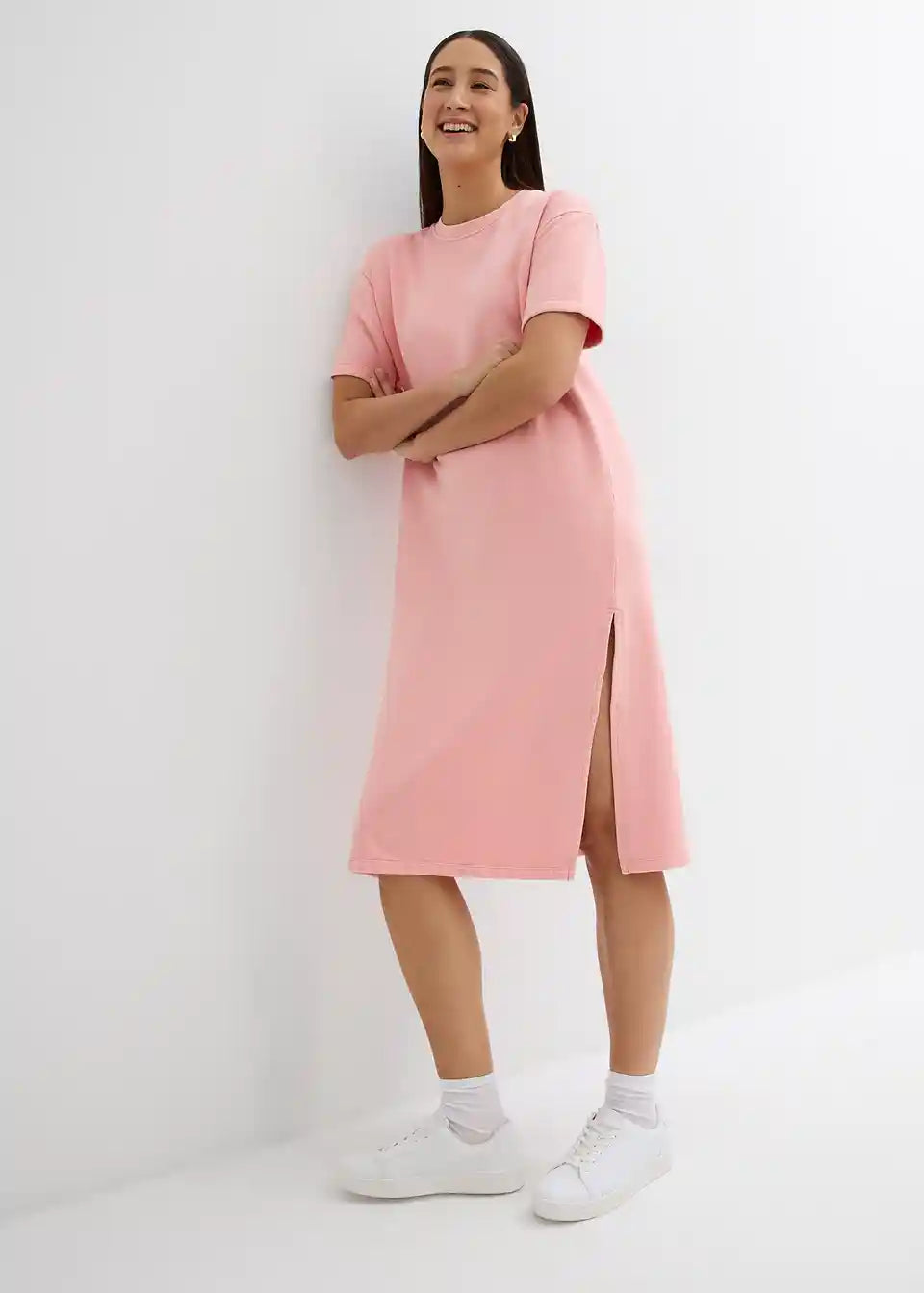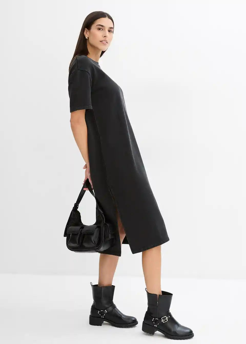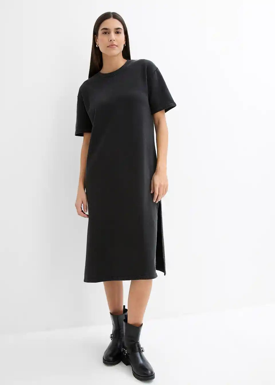 Midi-Shirt-Kleid mit Schlitzen in leicht verwaschener Optik