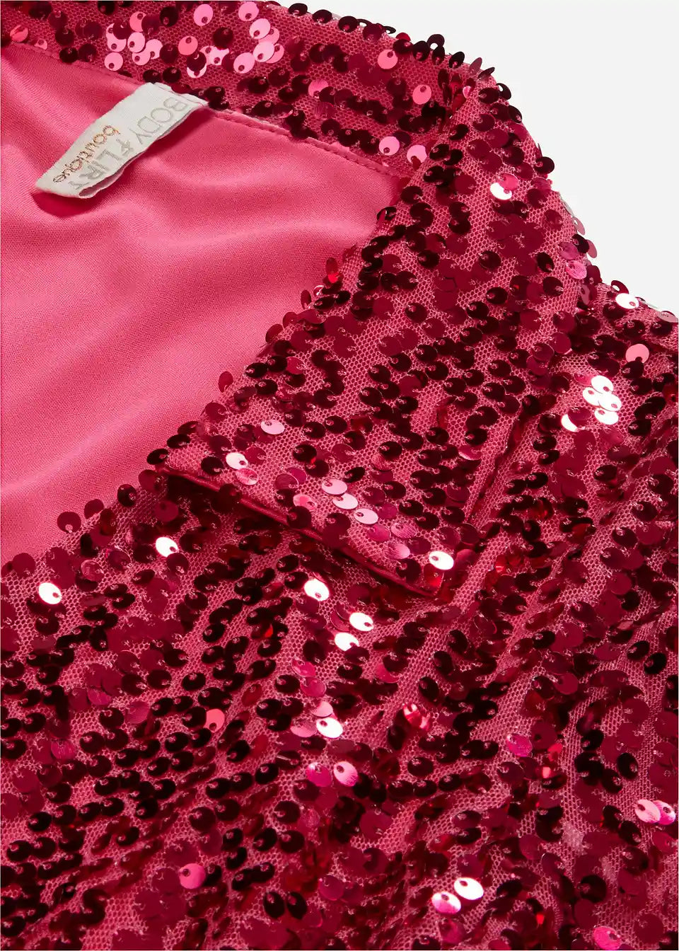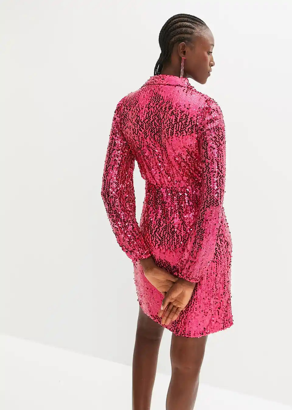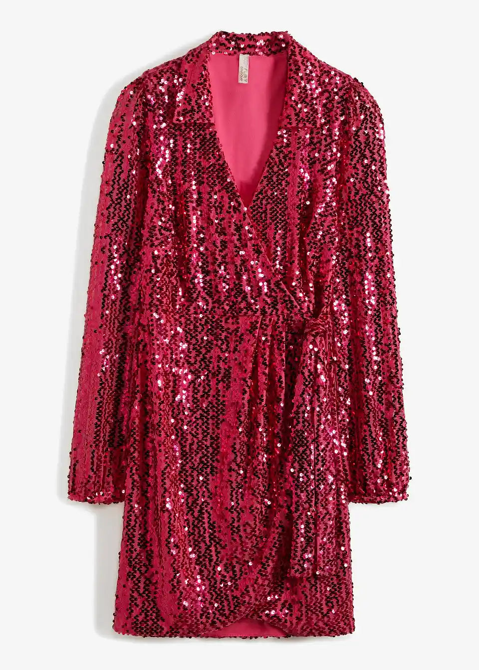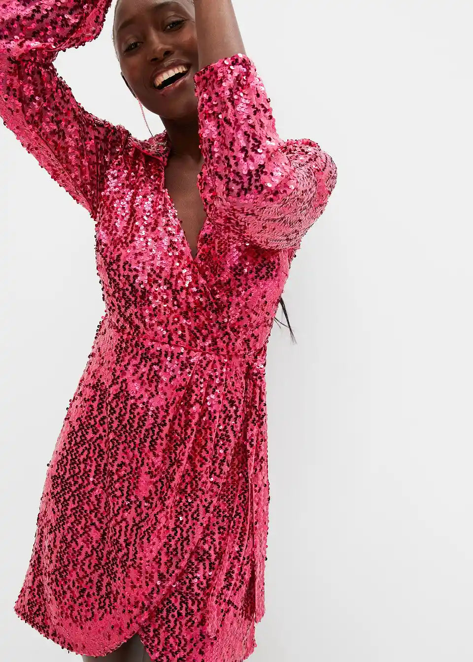 Modern und feminin: Bezauberndes Partykleid mit Pailletten. Mit seinem liegenden Kragen, Wickeloptik und Raffungen, macht es das Kleid zu einem wahren Eye-Catcher.