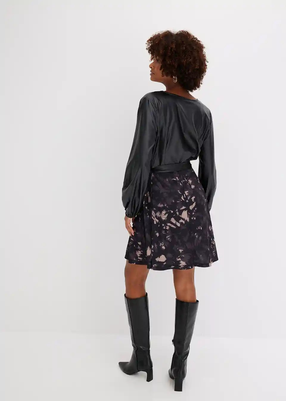 Lederimitat-Kleid mit bedrucktem Rockteil