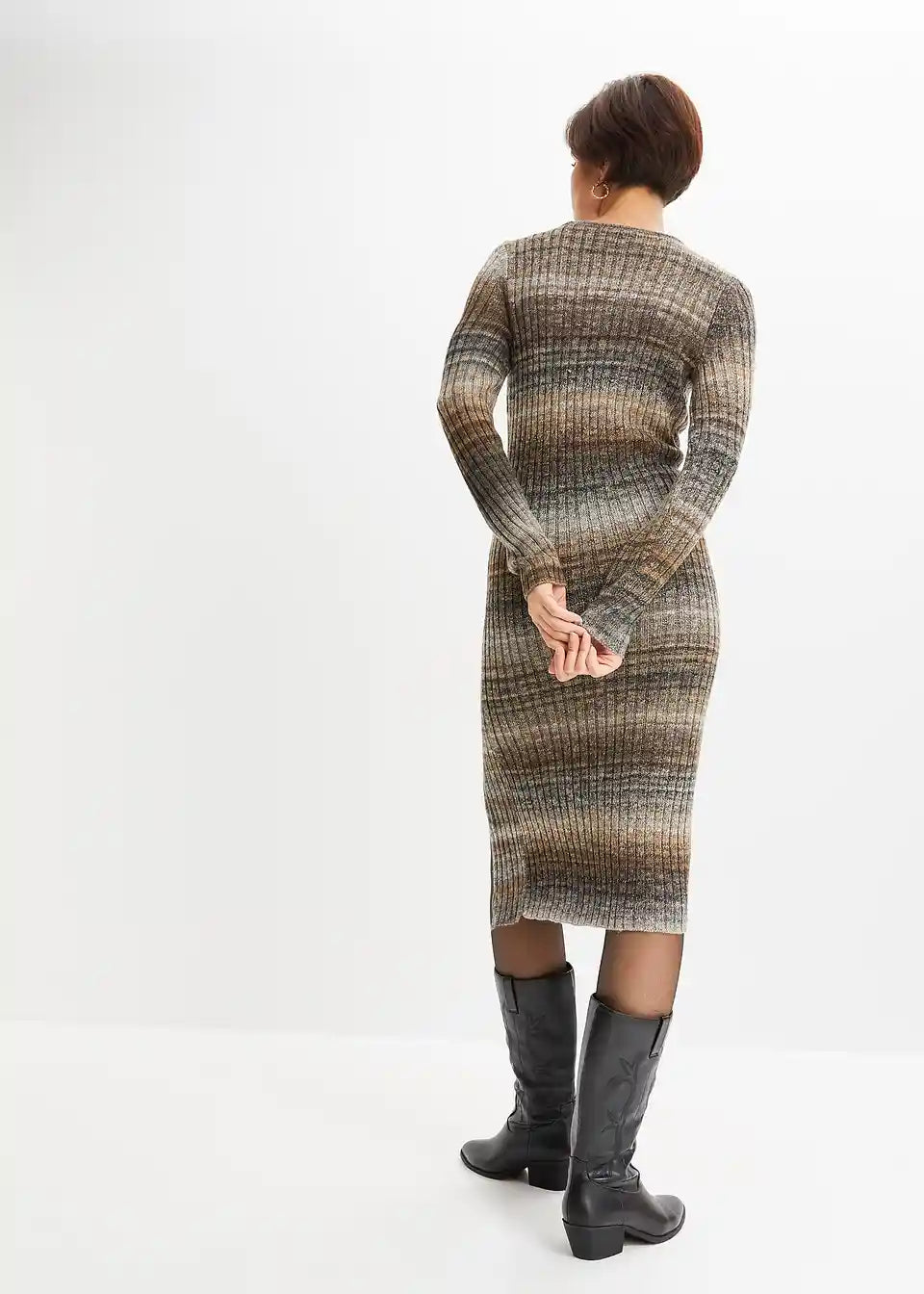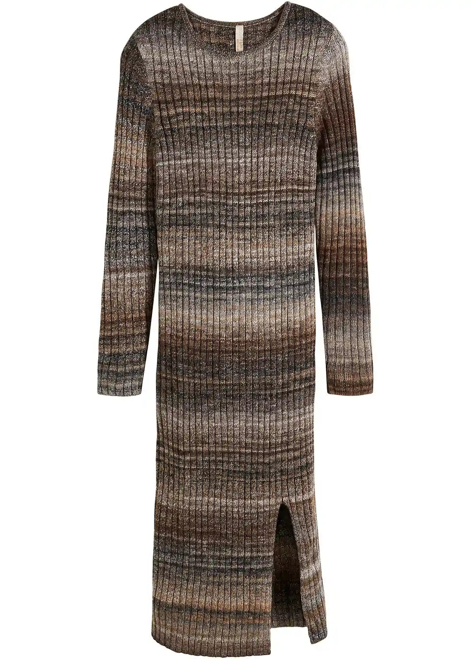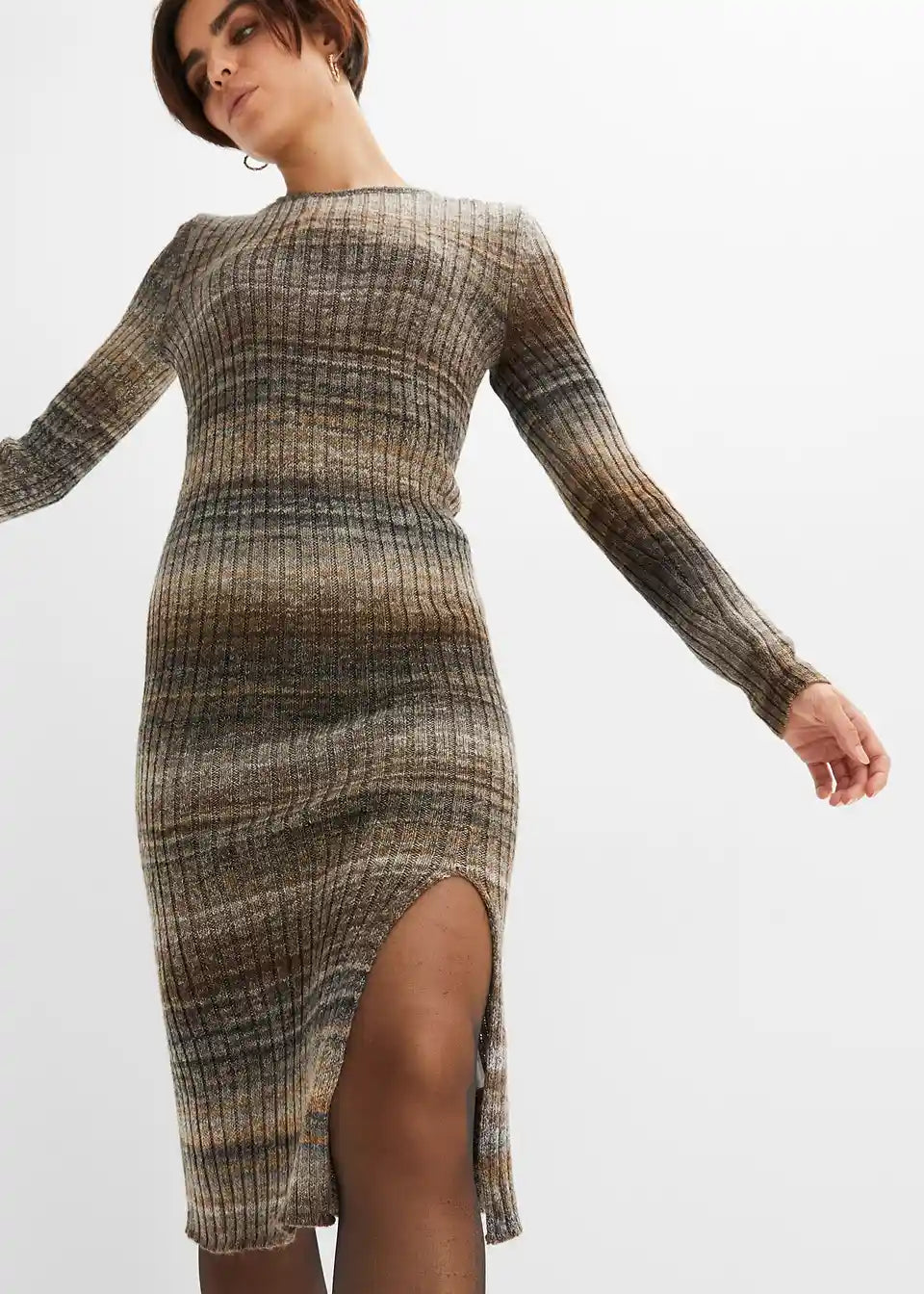 Modern und Feminin: figurbetontes Strickkleid mit langem Schlitz.