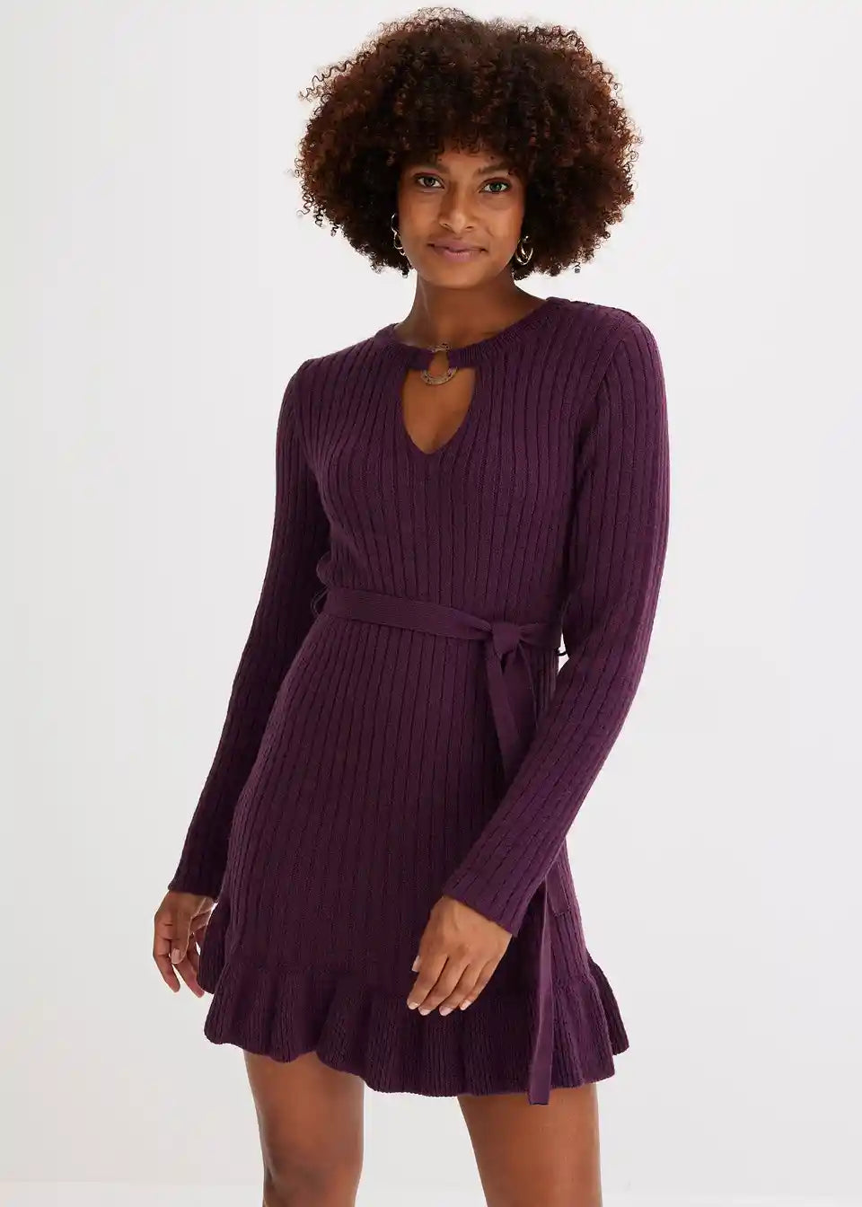 Modern und feminin: Strickkleid mit Rippmuster und Ringdetail am Ausschnitt