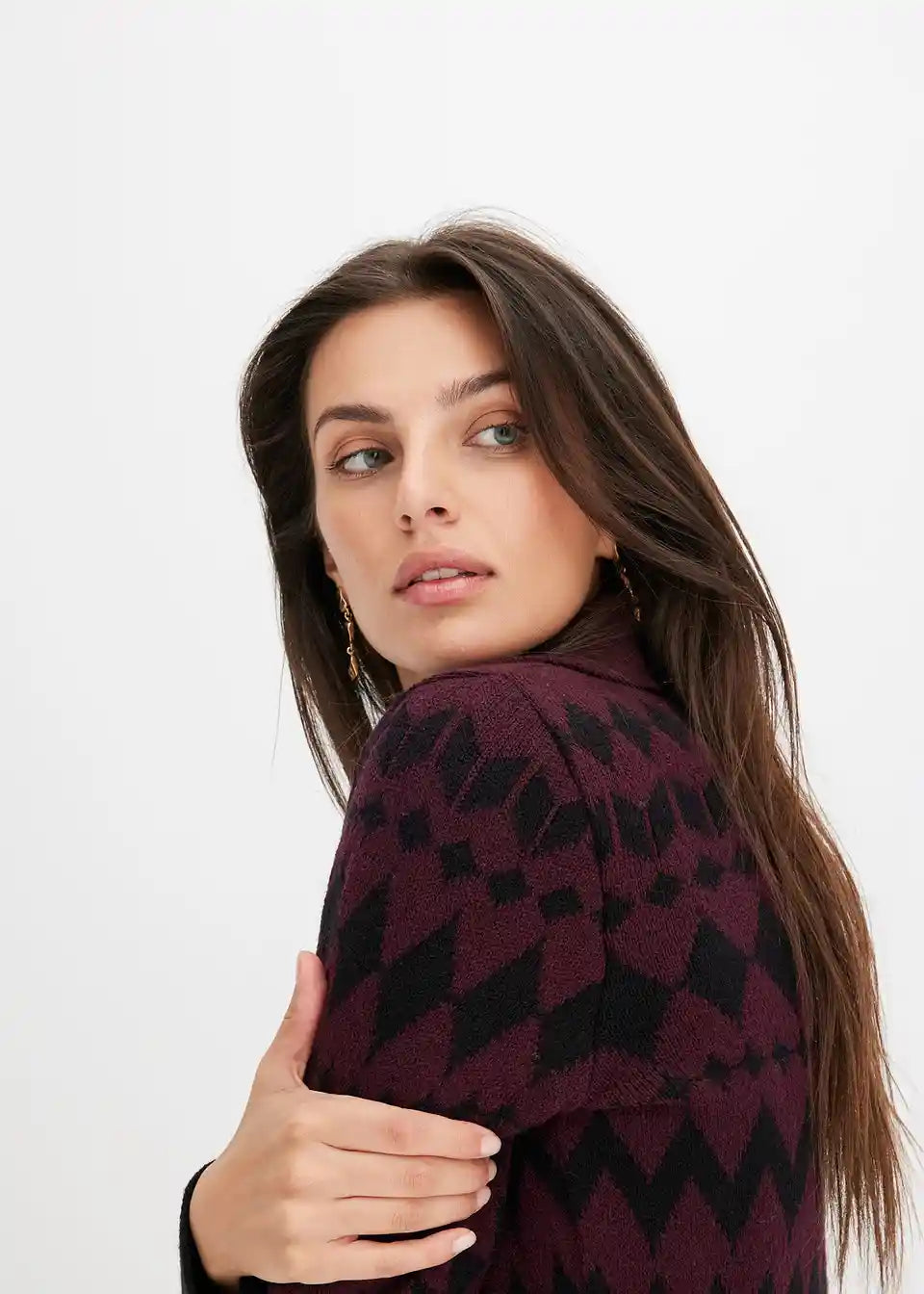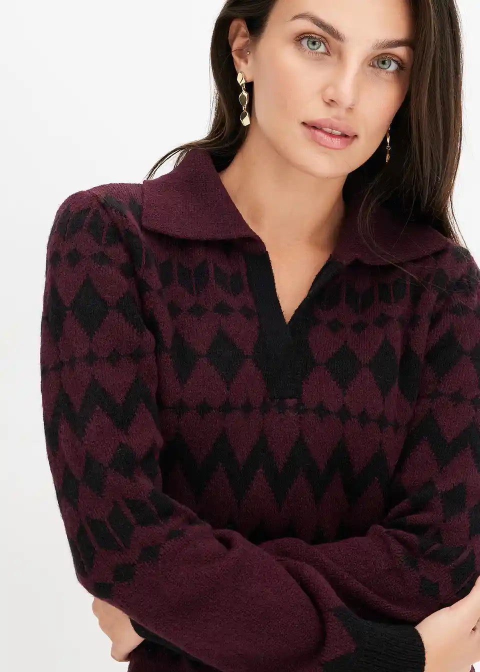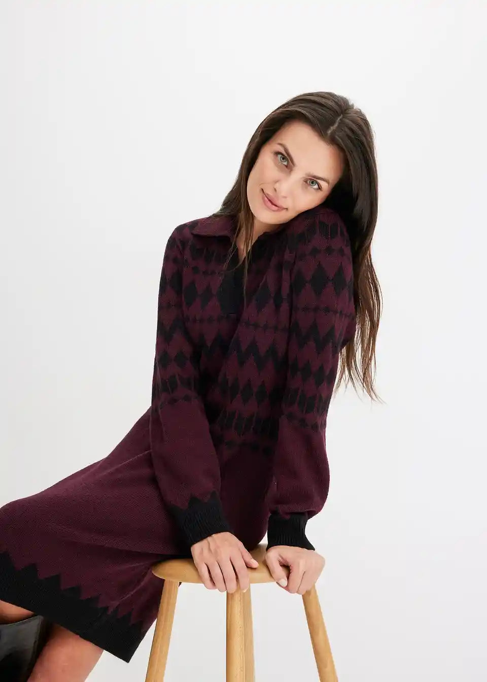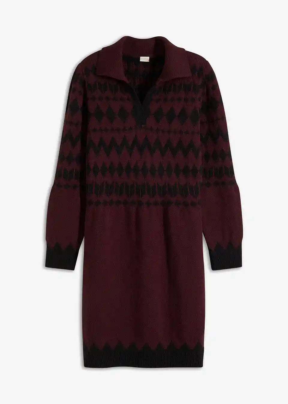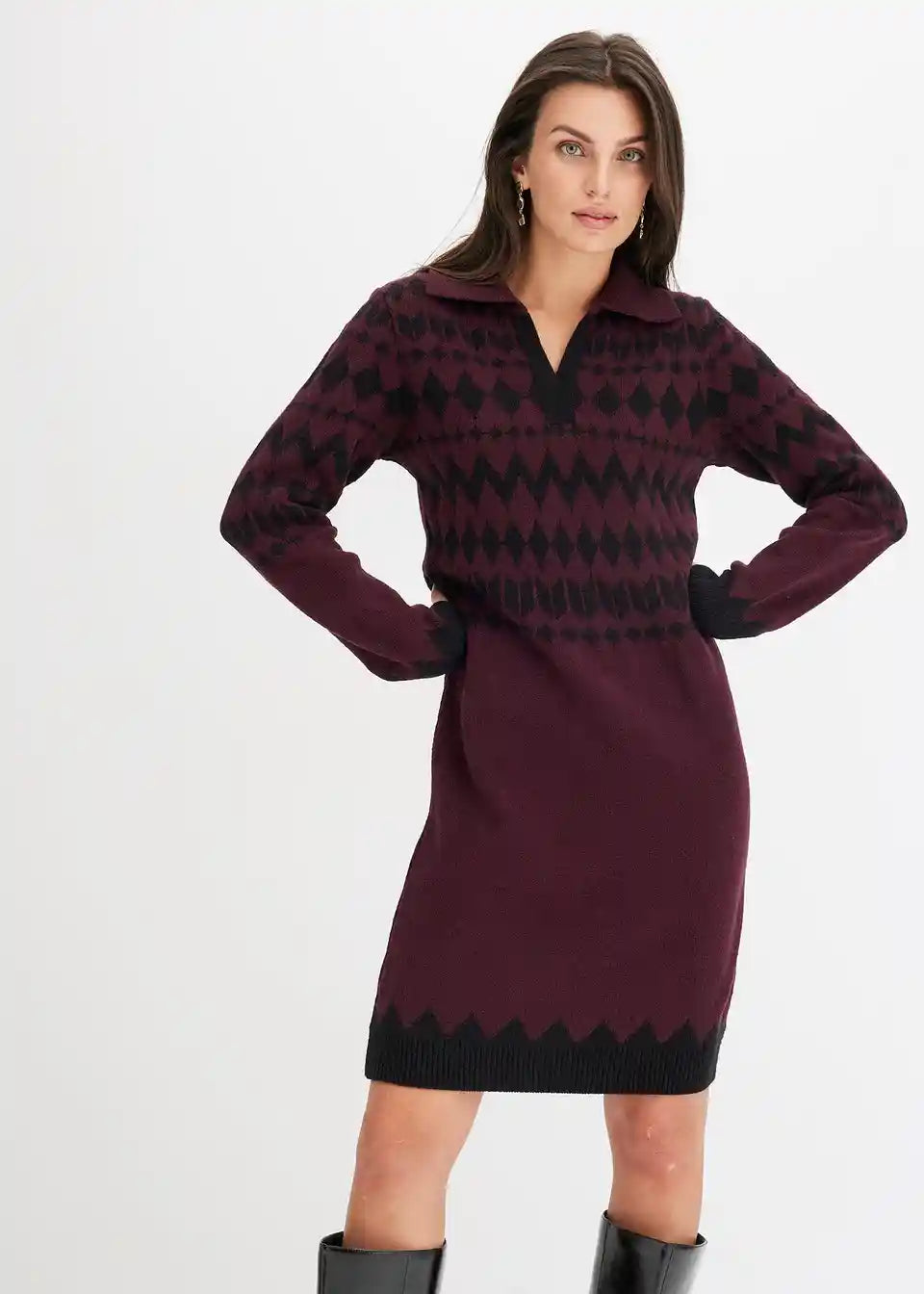 Modern und feminin: Strickkleid mit Jacquard-Muster und Kragen