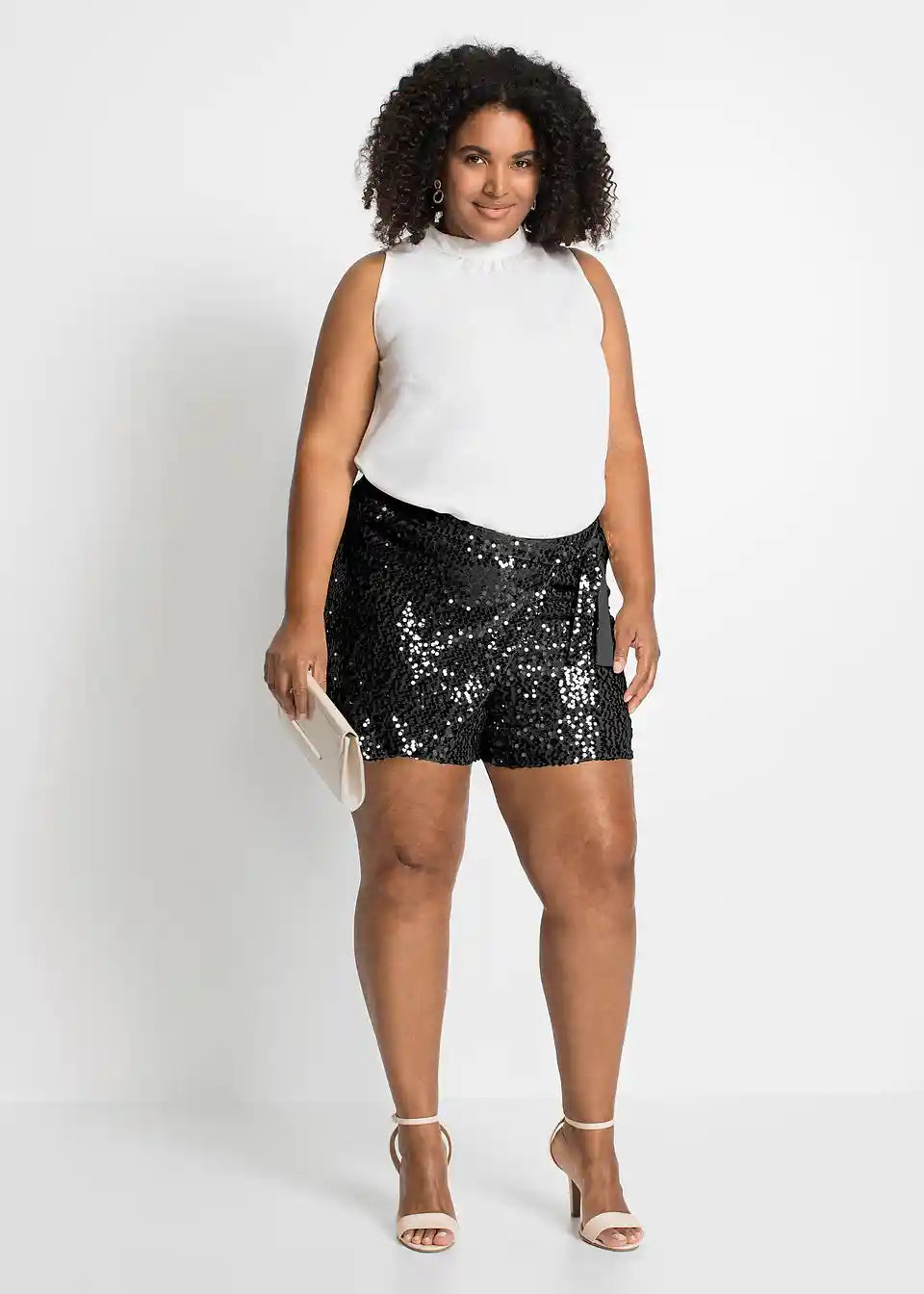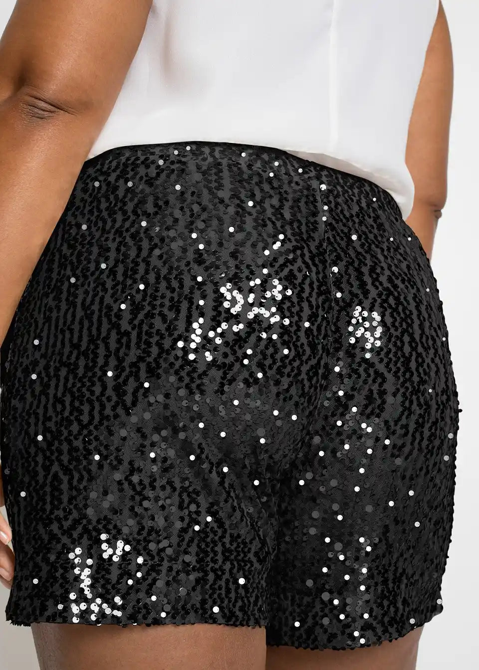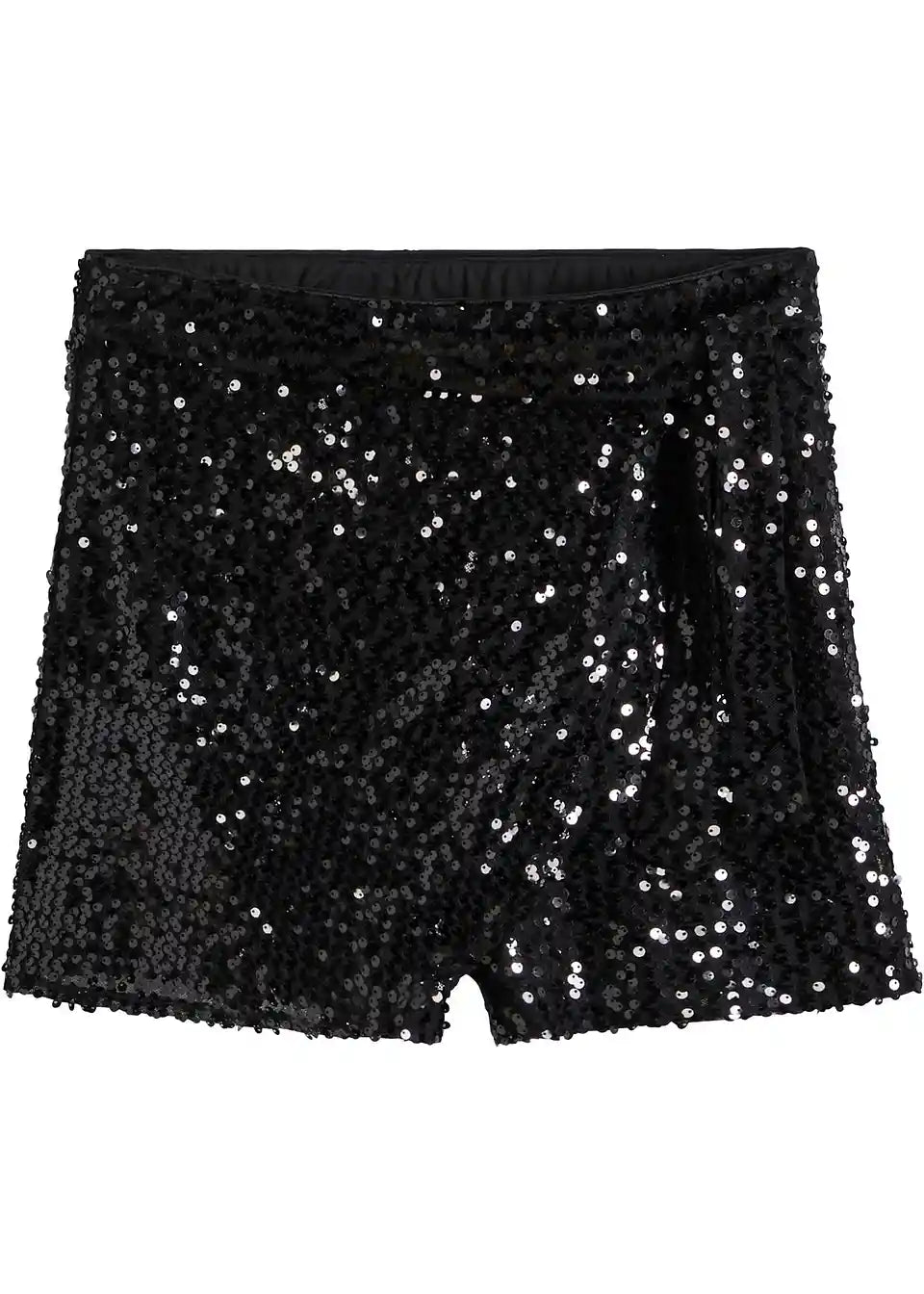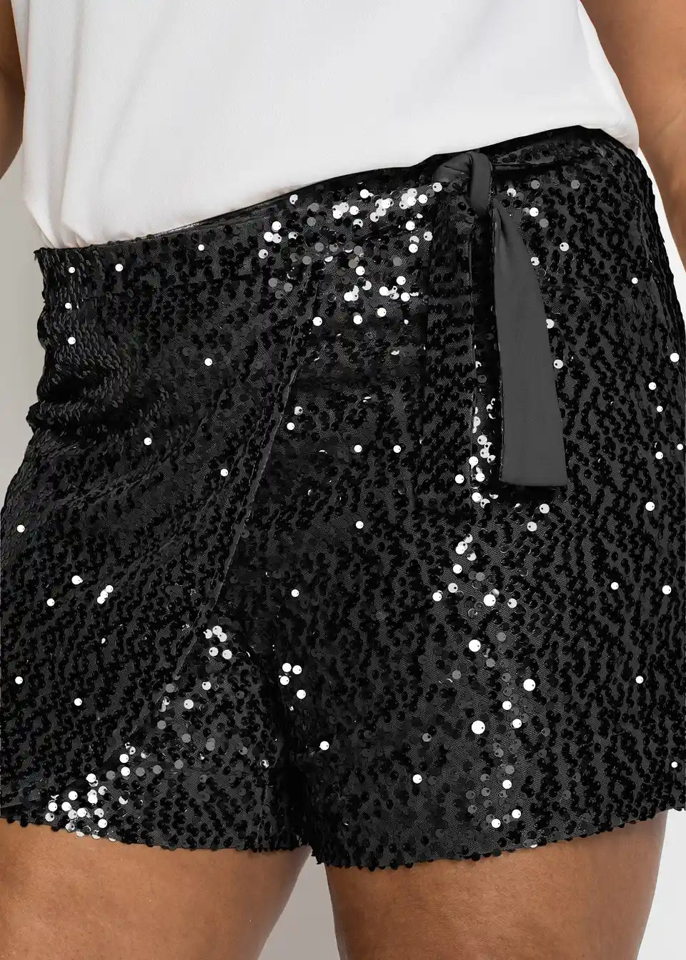 Party-Shorts im Wickel-Optik mit Pailletten und Bindedetail