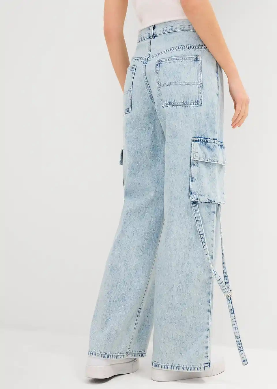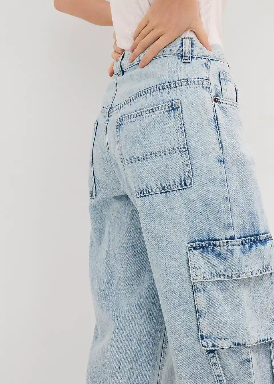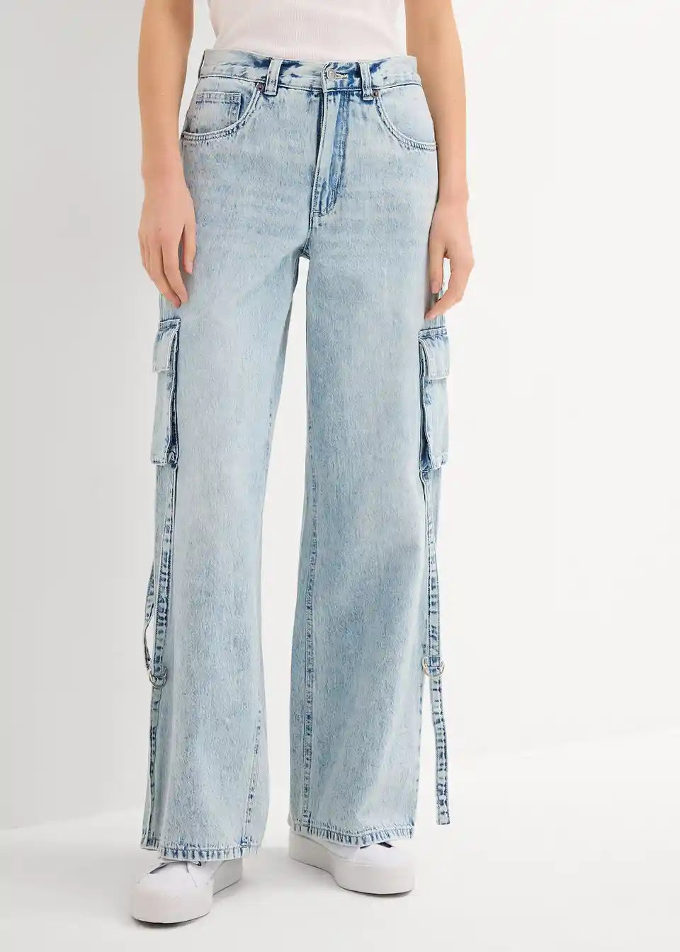 Wide-Leg-Jeans Mid Waist mit Cargo Details