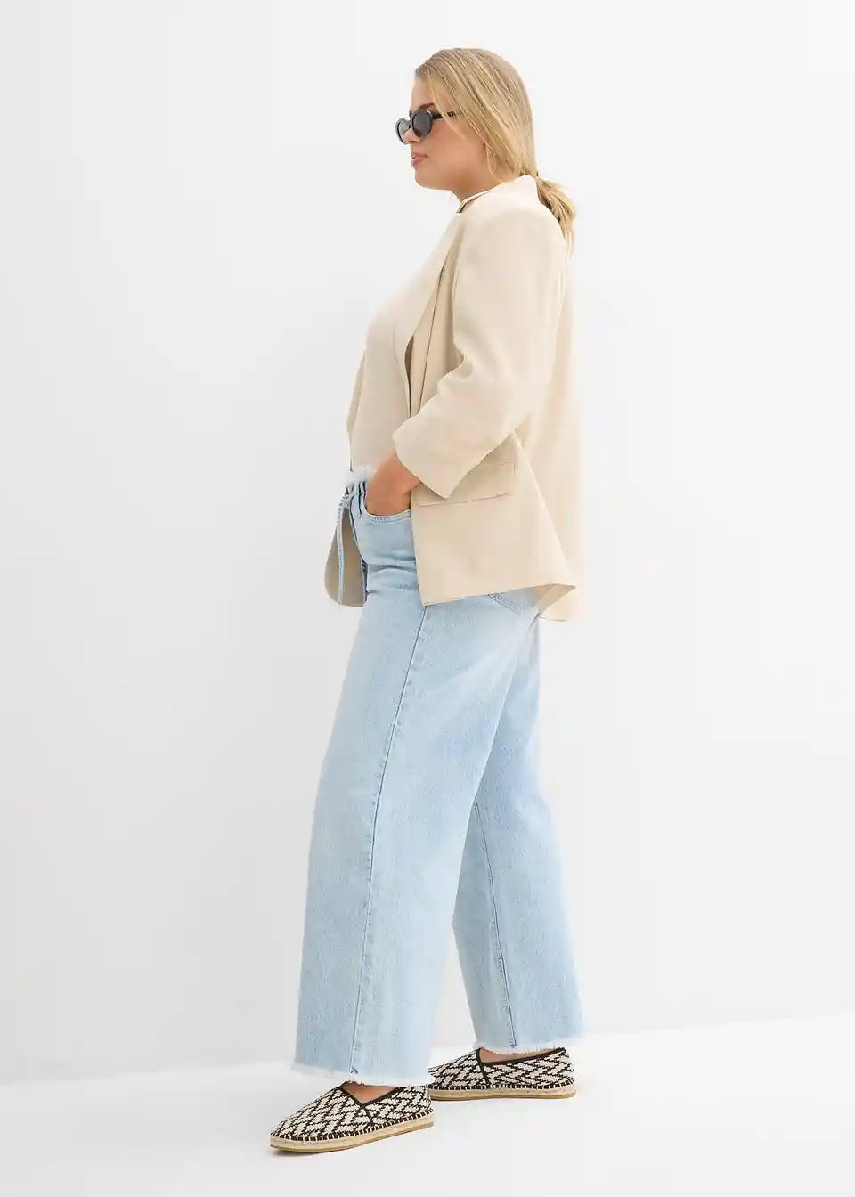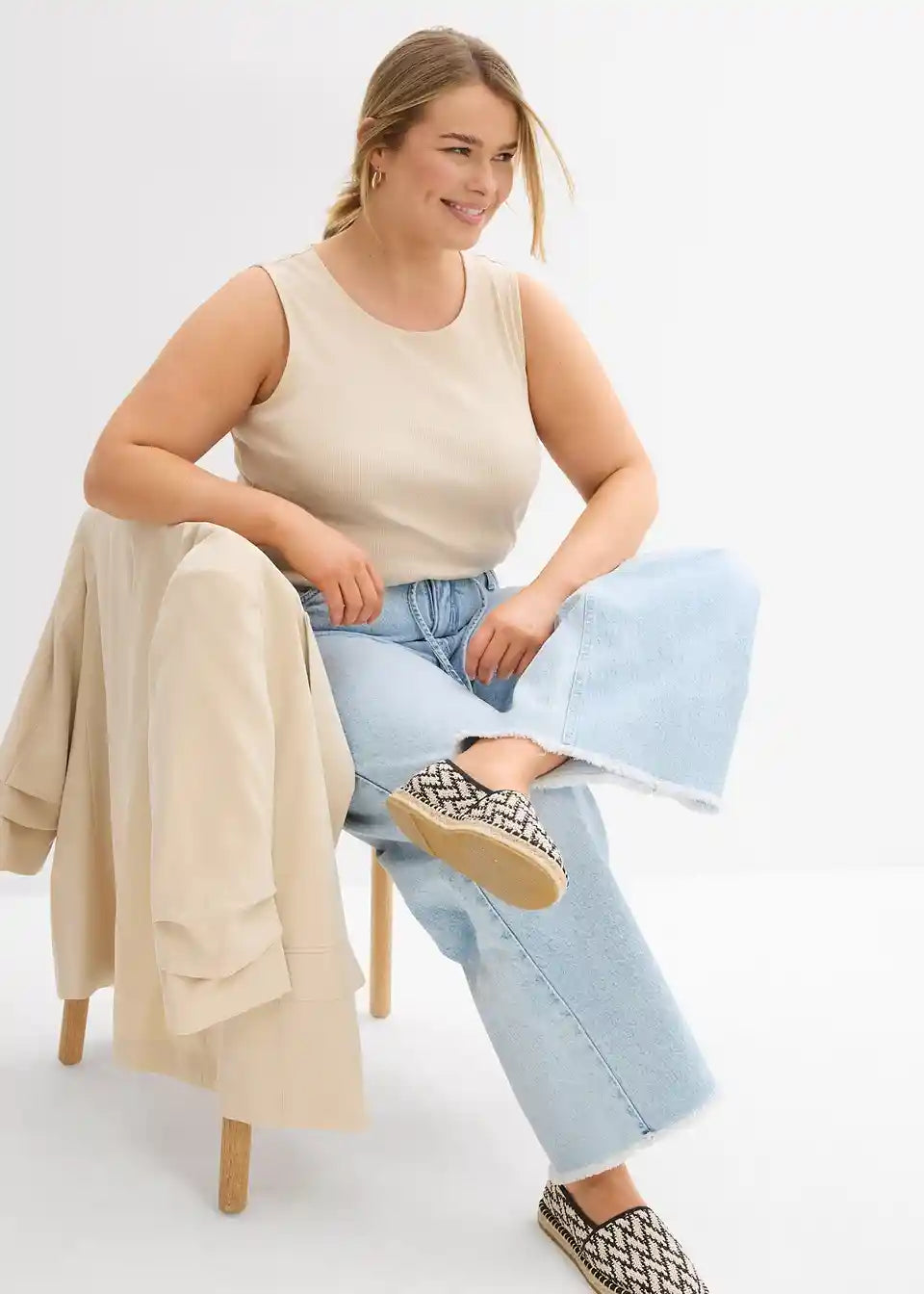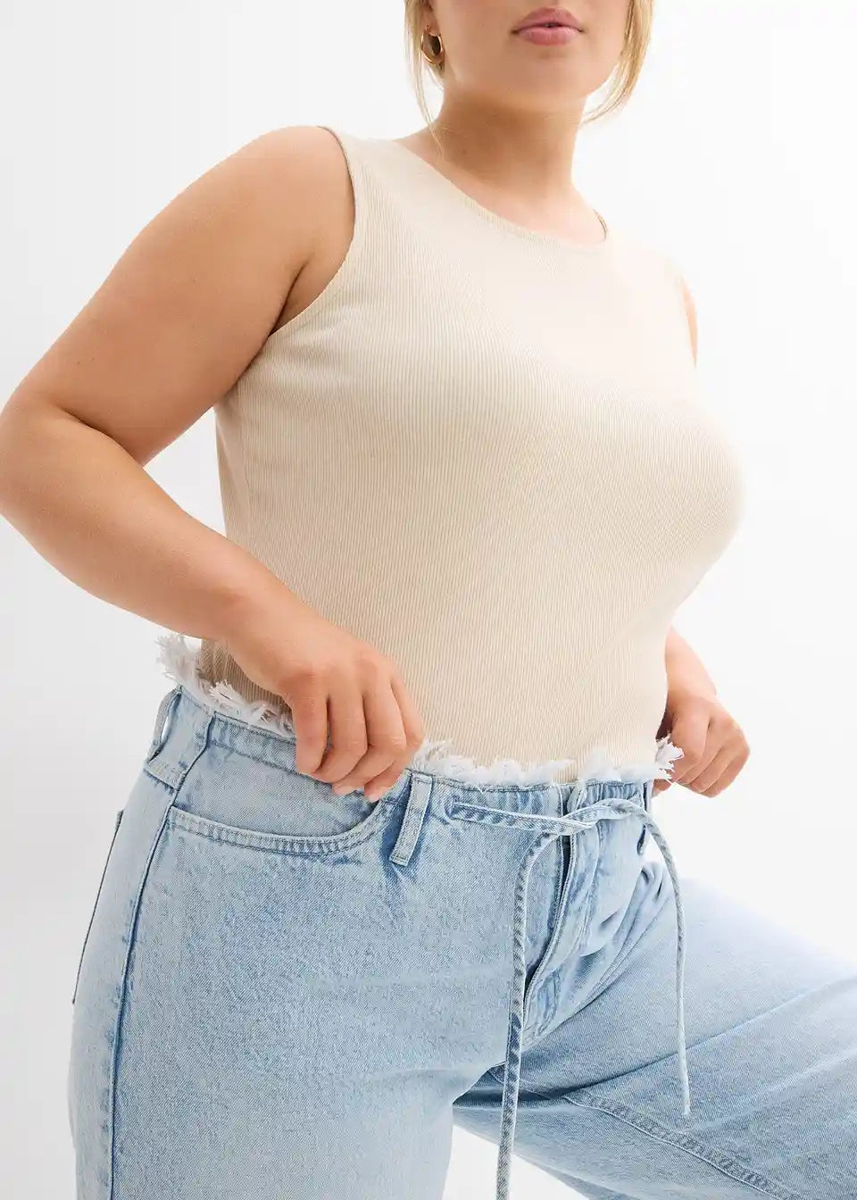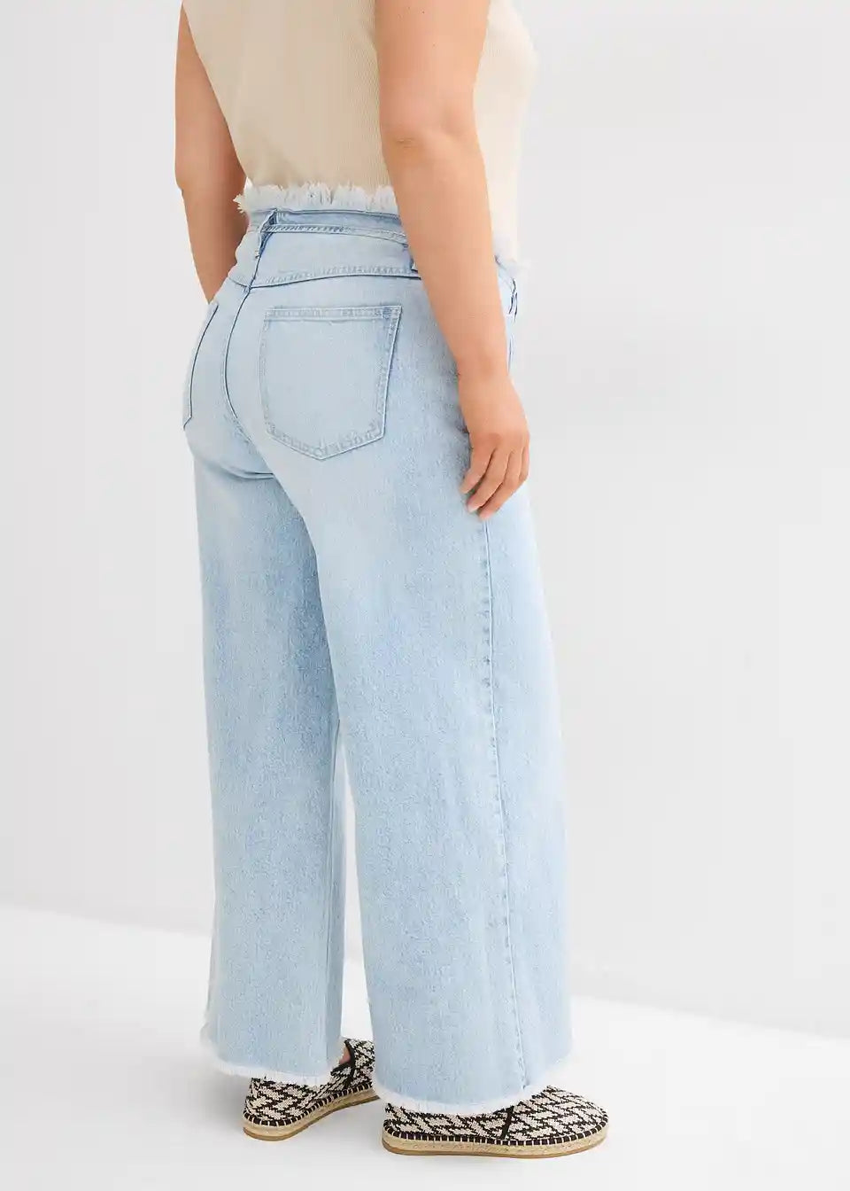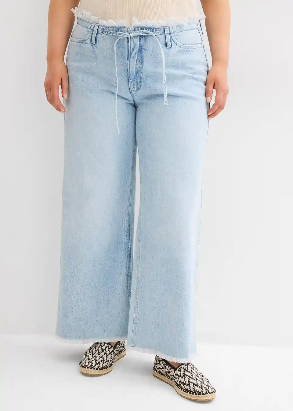 Weite Jeans mit offenem Fransenbund