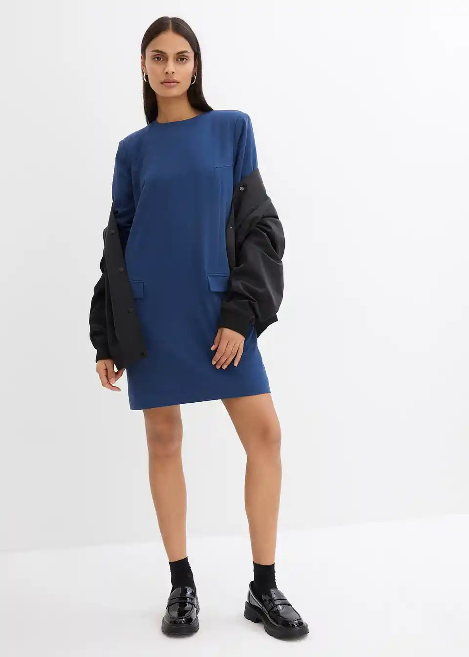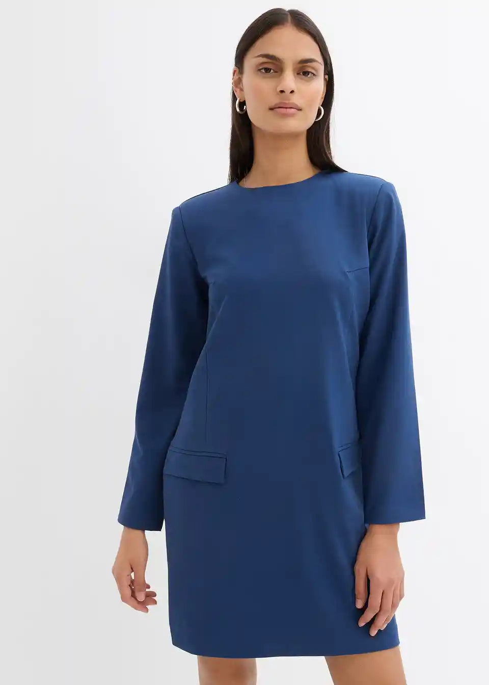 Elegantes Minikleid mit Schulterpolstern, formgebenden Abnäher und Pattentaschen vorne