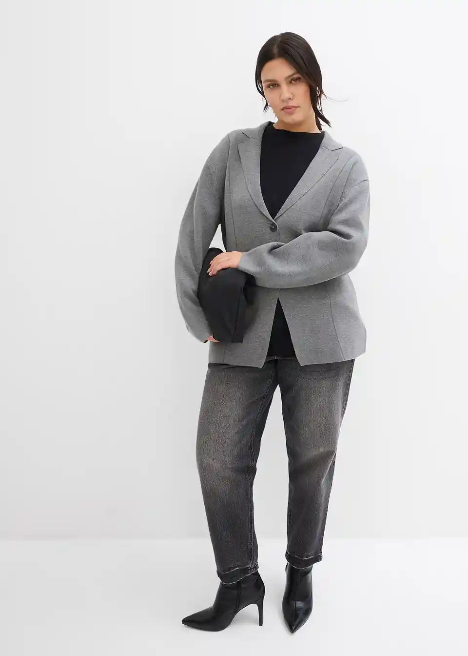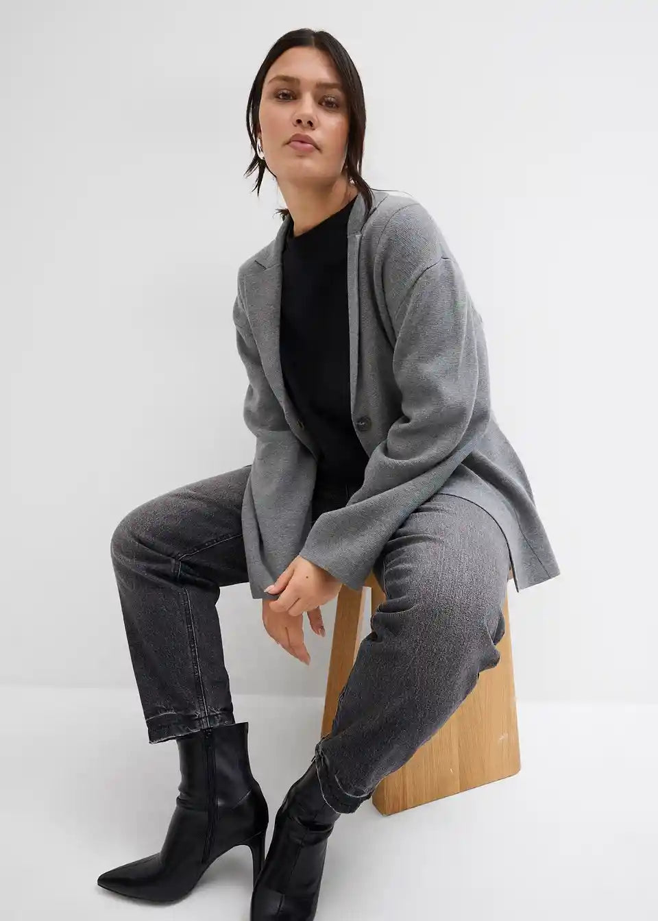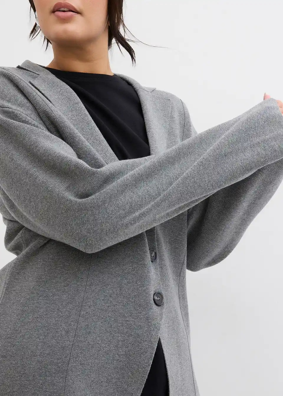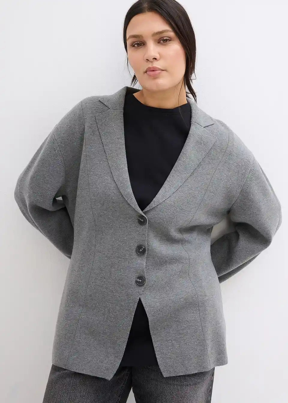 Taillierter Strickblazer mit abfallendem Revers und einem einreihigen Verschluss