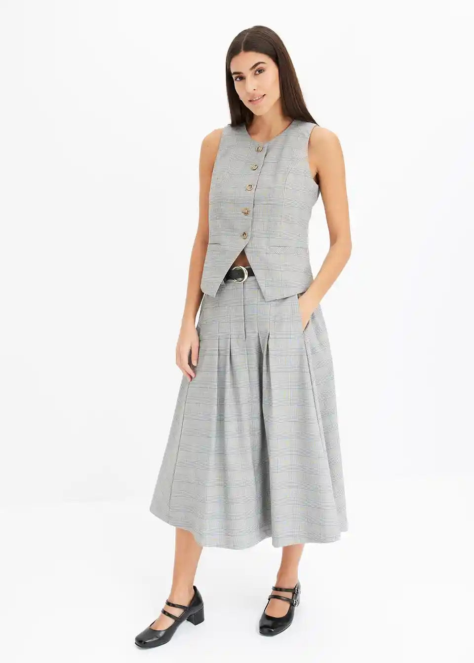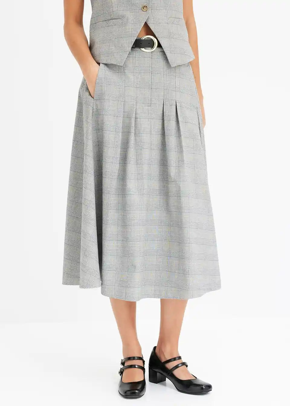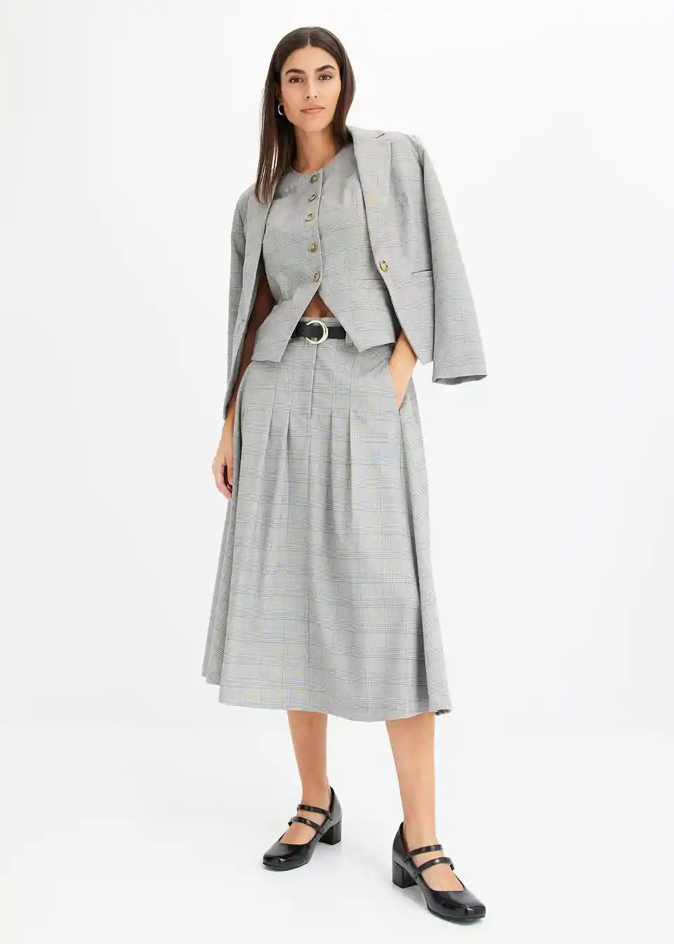 klassisch eleganter Rock mit Falten im Glencheck Design