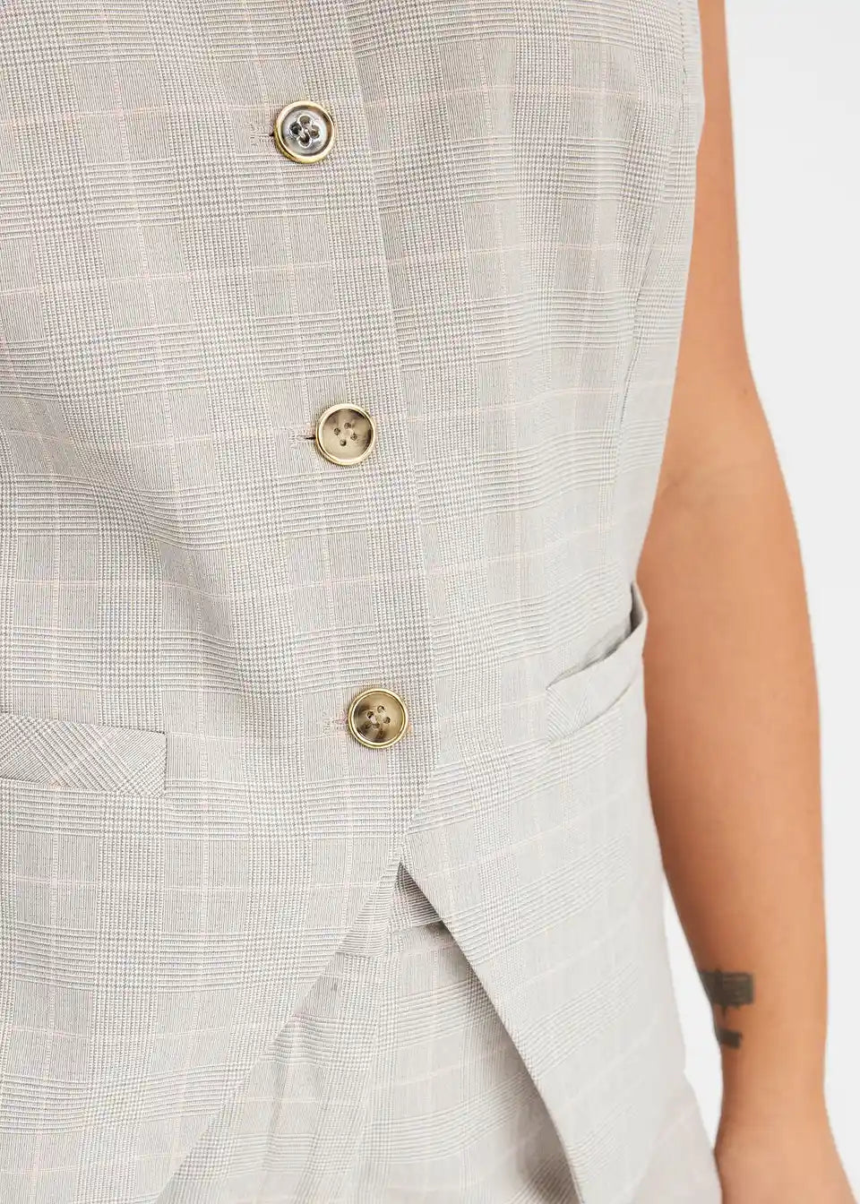 Obermaterial: 34% Polyester, 33% Viskose, 32% Polyester (recycelt), 1% Elasthan, Futter: 100% Polyester