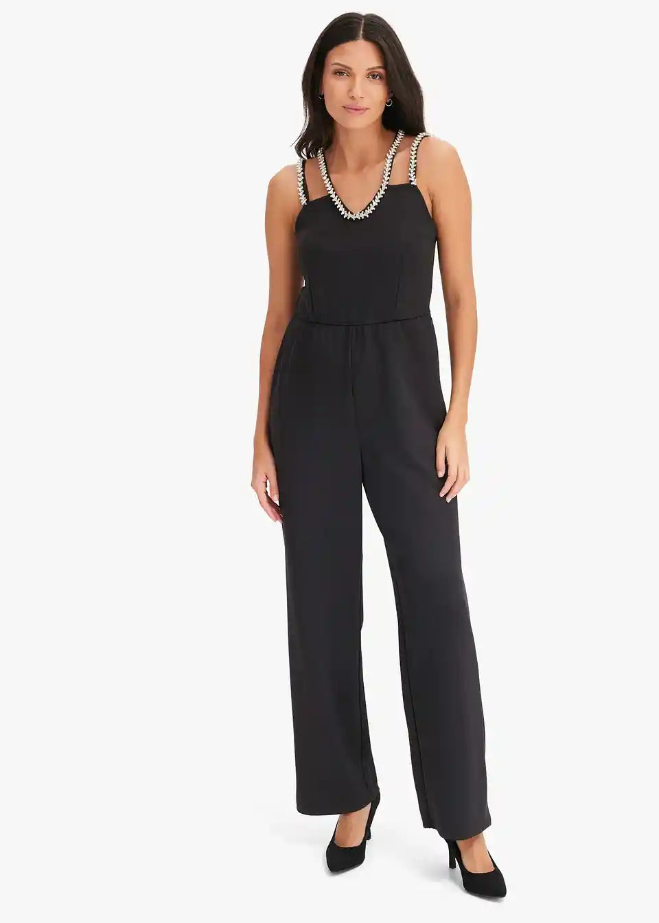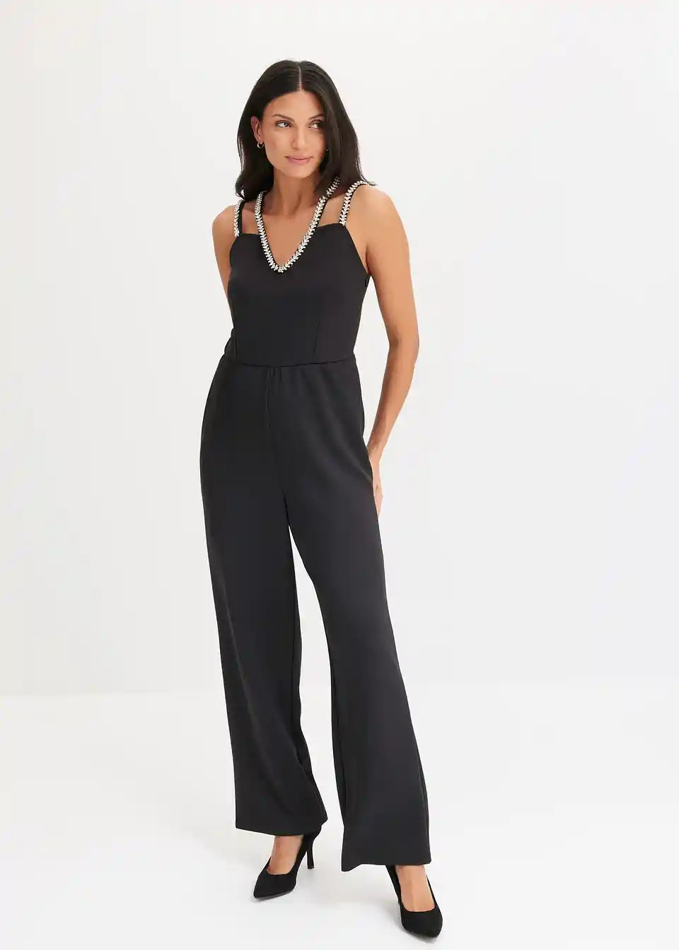 Jersey-Jumpsuit mit Strass-Detail