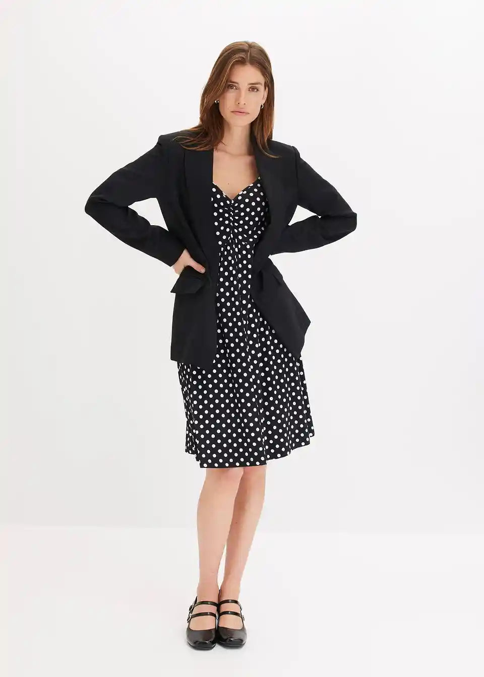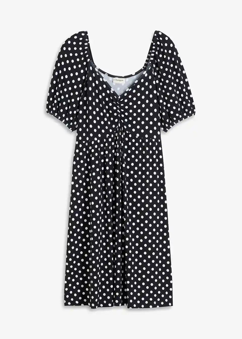 Ausgestelltes Punkte-Kleid mit Herzausschnitt und Puffärmeln