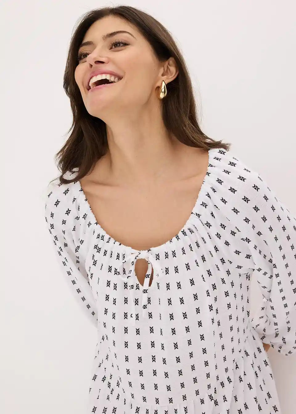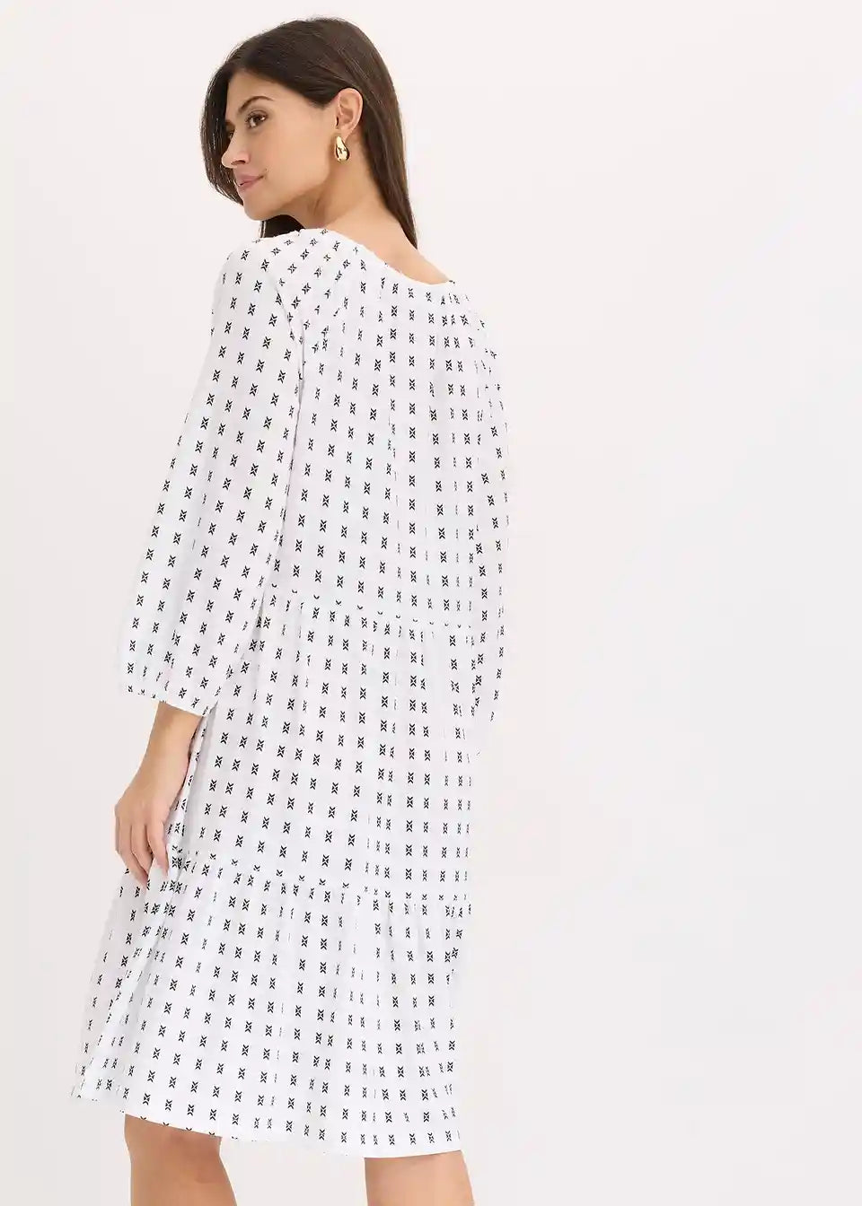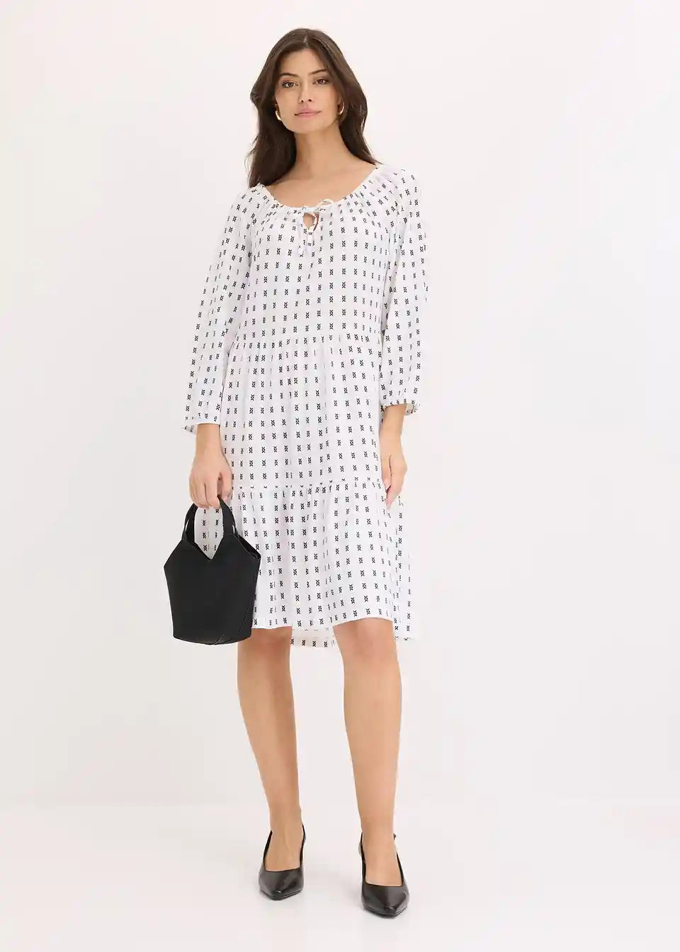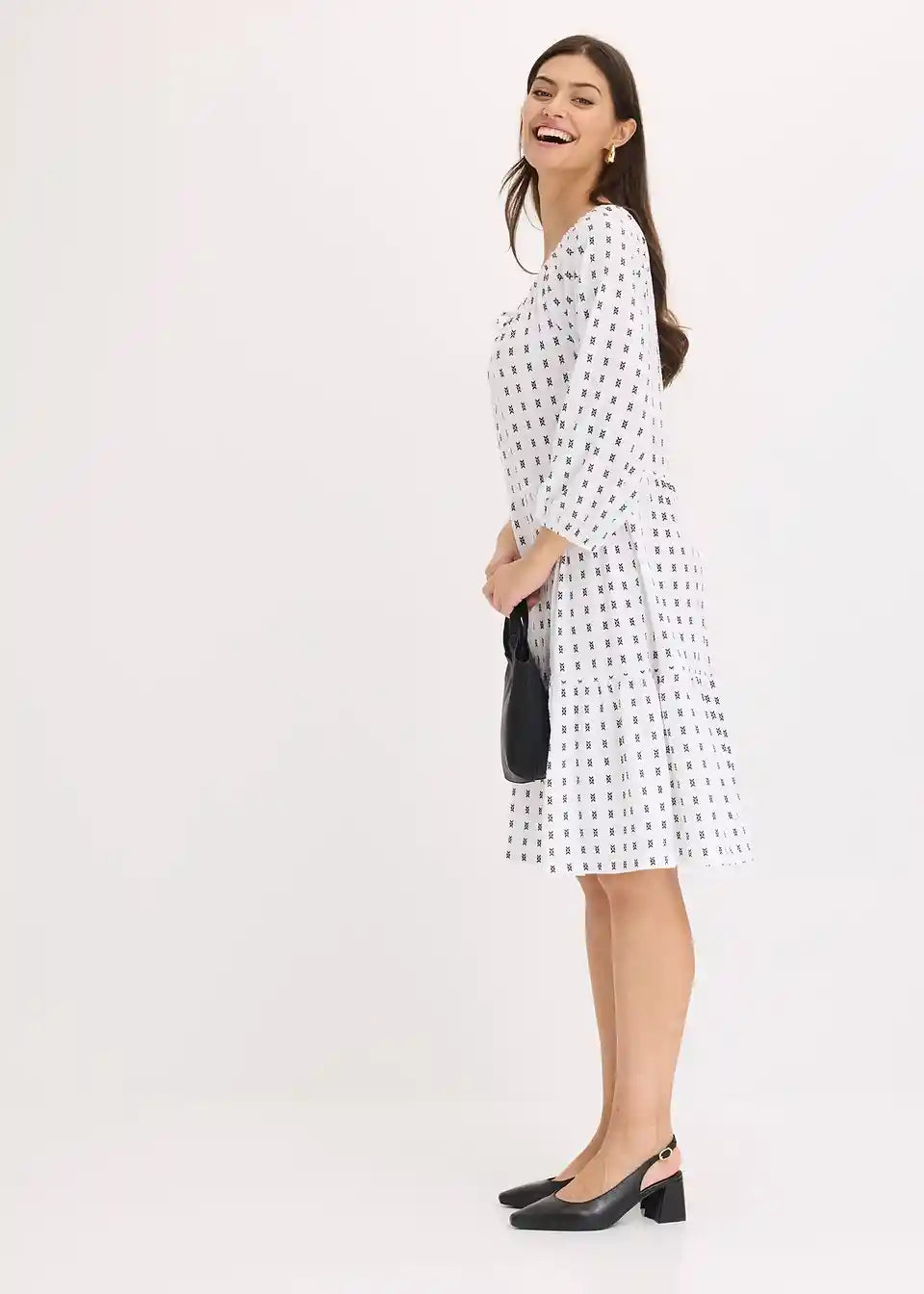 Bedrucktes Midikleid mit Volantssaum und Ballonärmeln