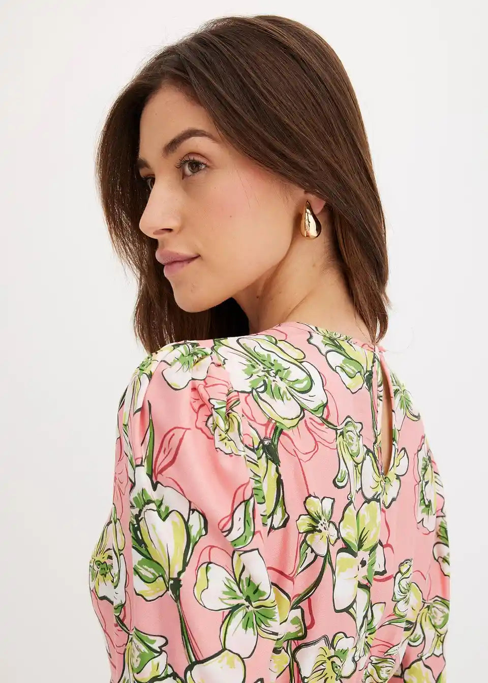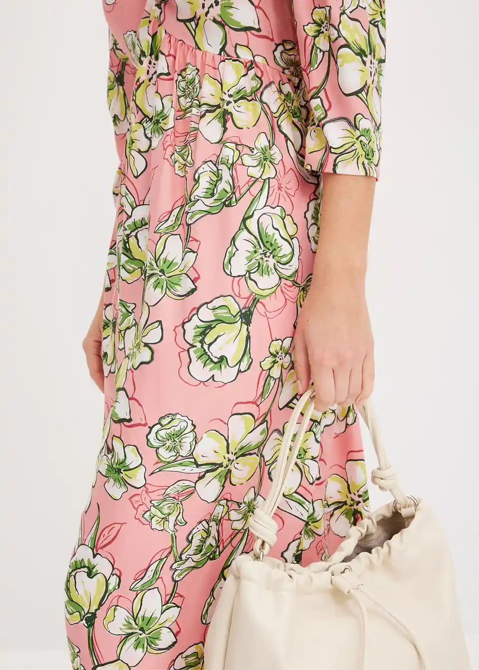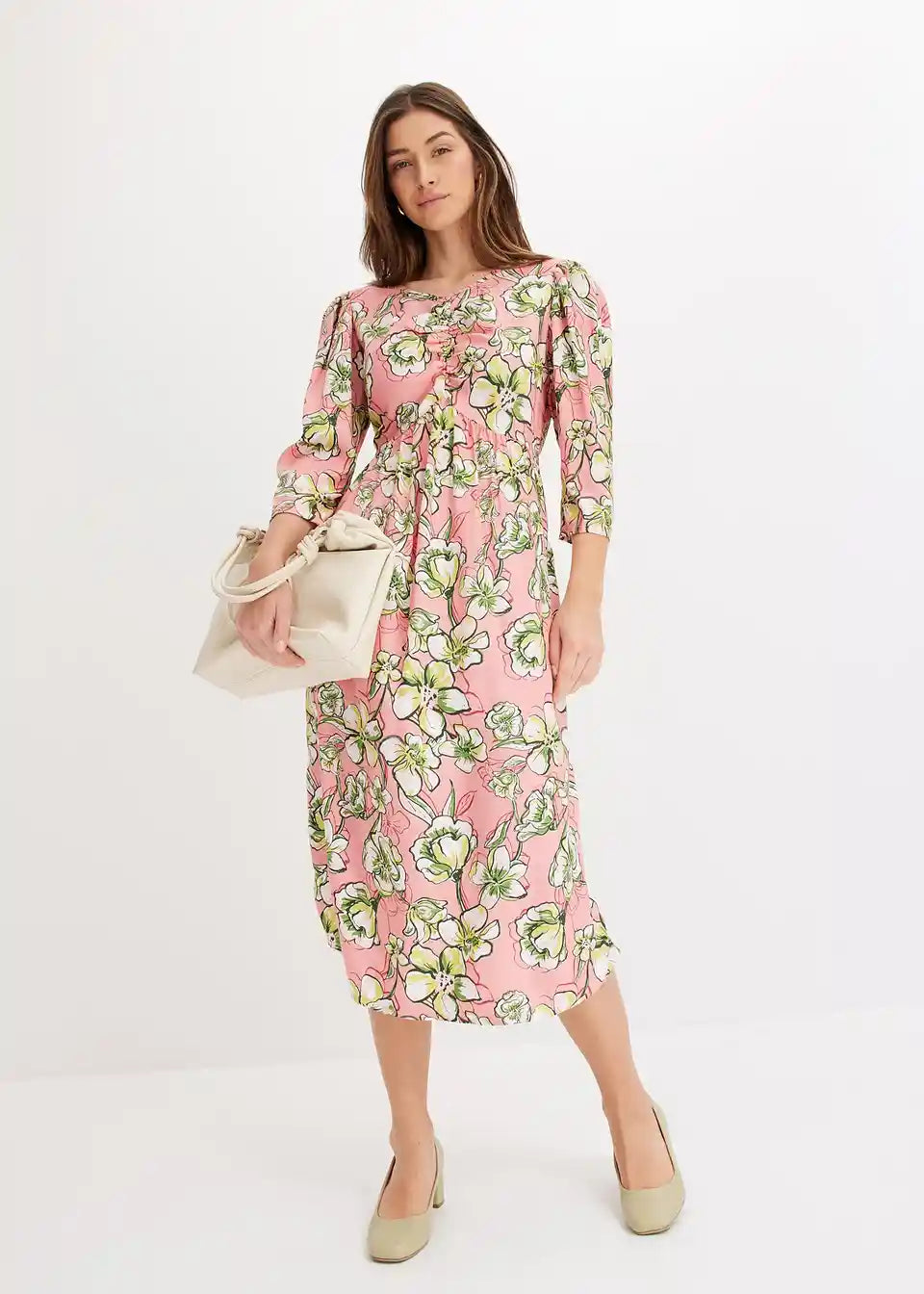 Druckkleid mit Raffung am Vorderteil und Puffärmeln