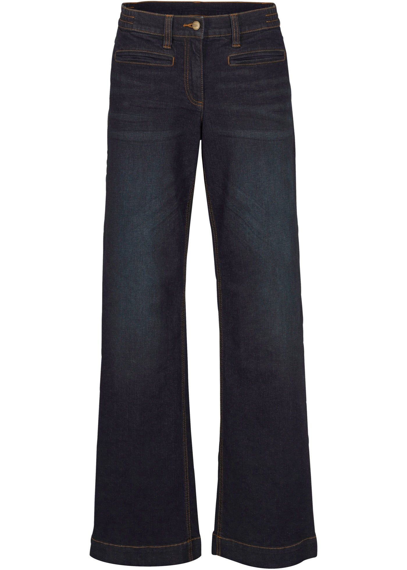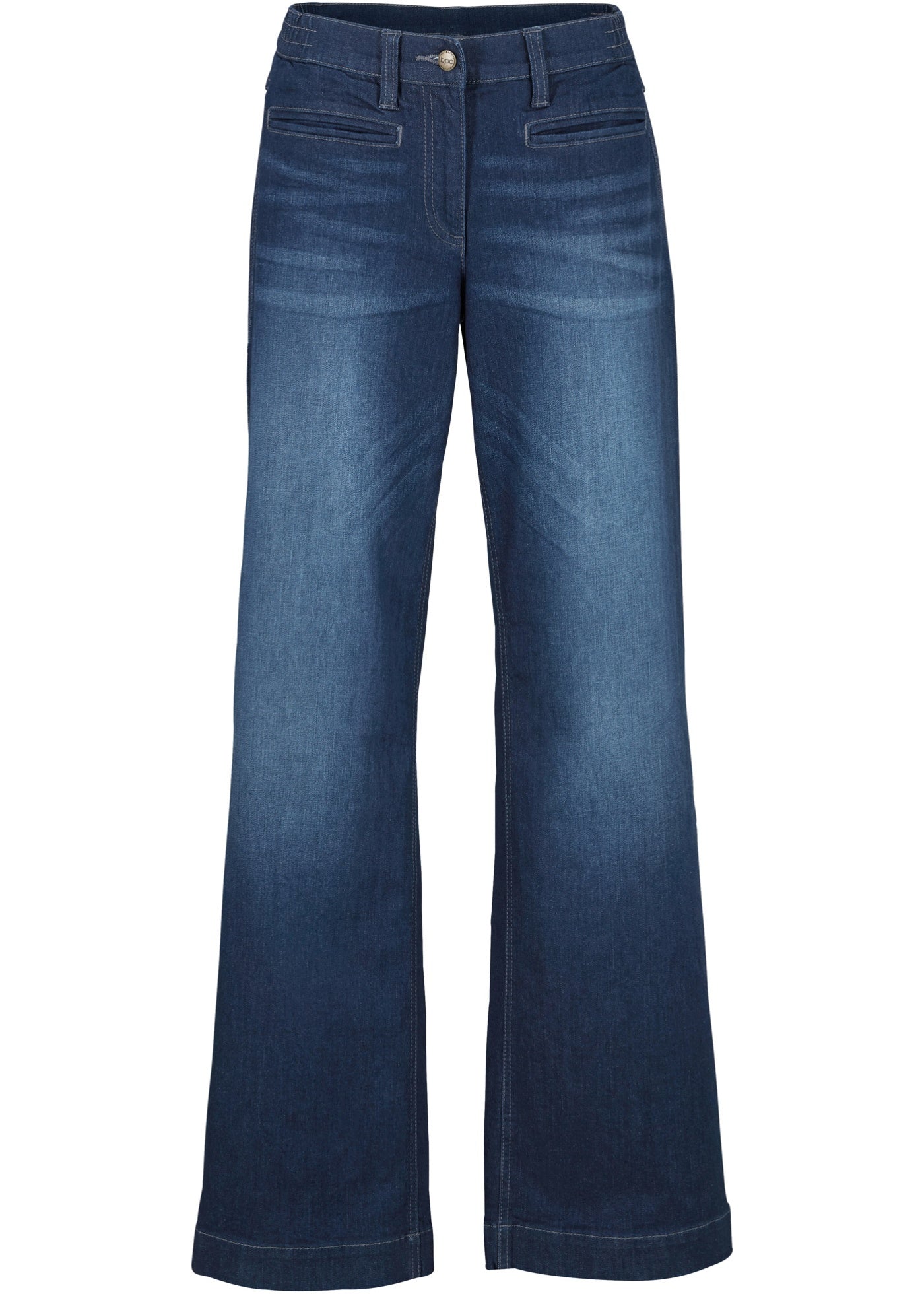 Kavbojke s širokimi hlačnicami s srednje visokim udobnim pasom