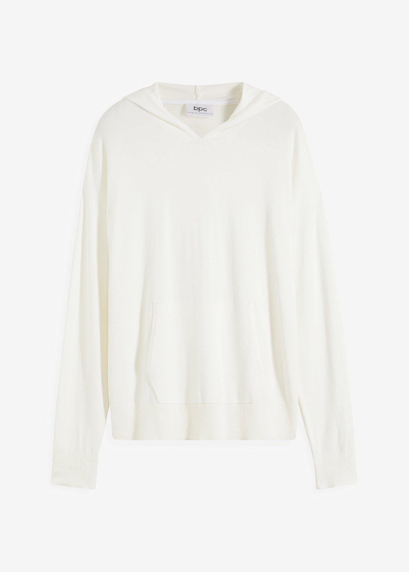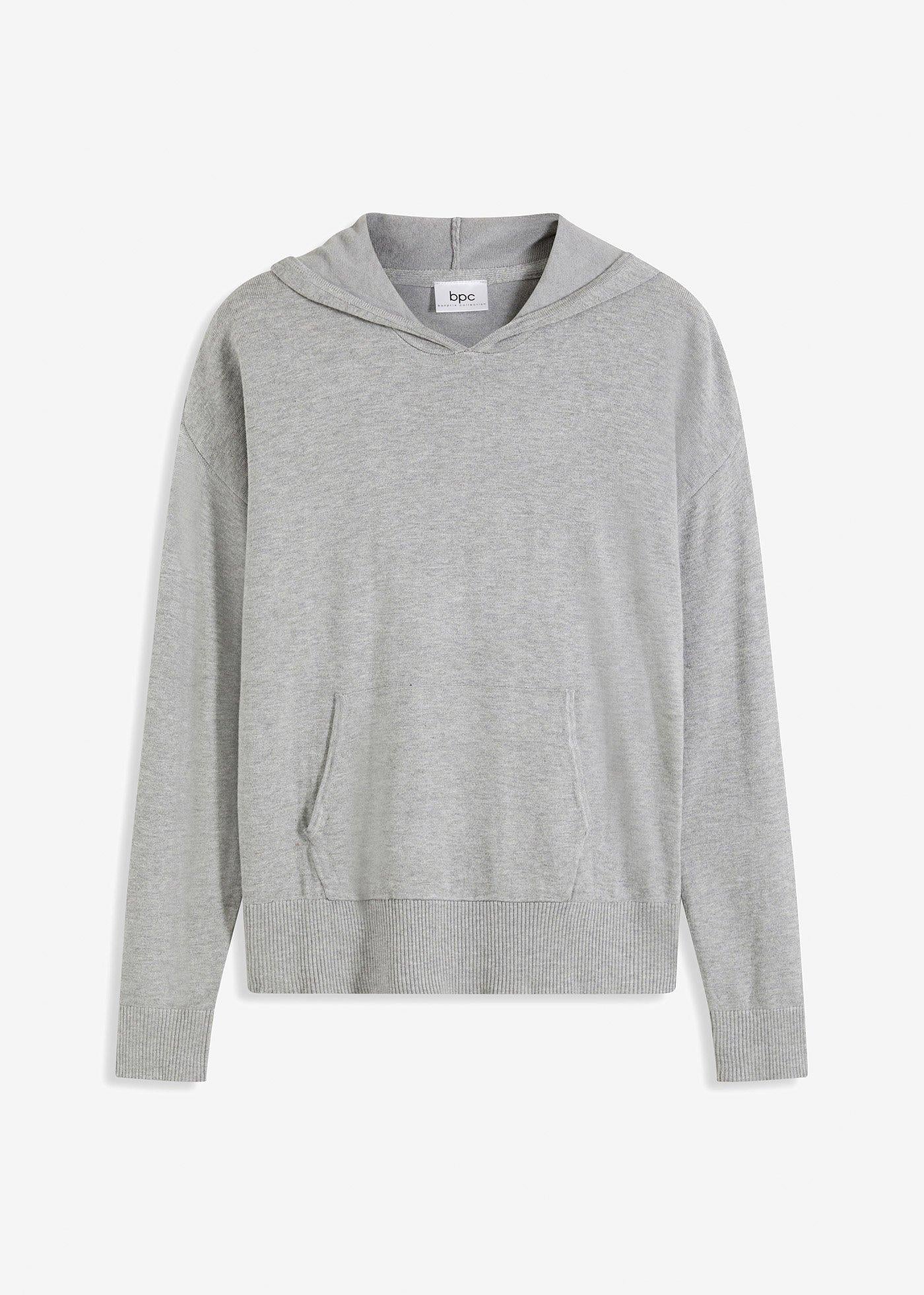 Pletena jopa s kapuco in kengurujskim žepom iz viskozne mešanice