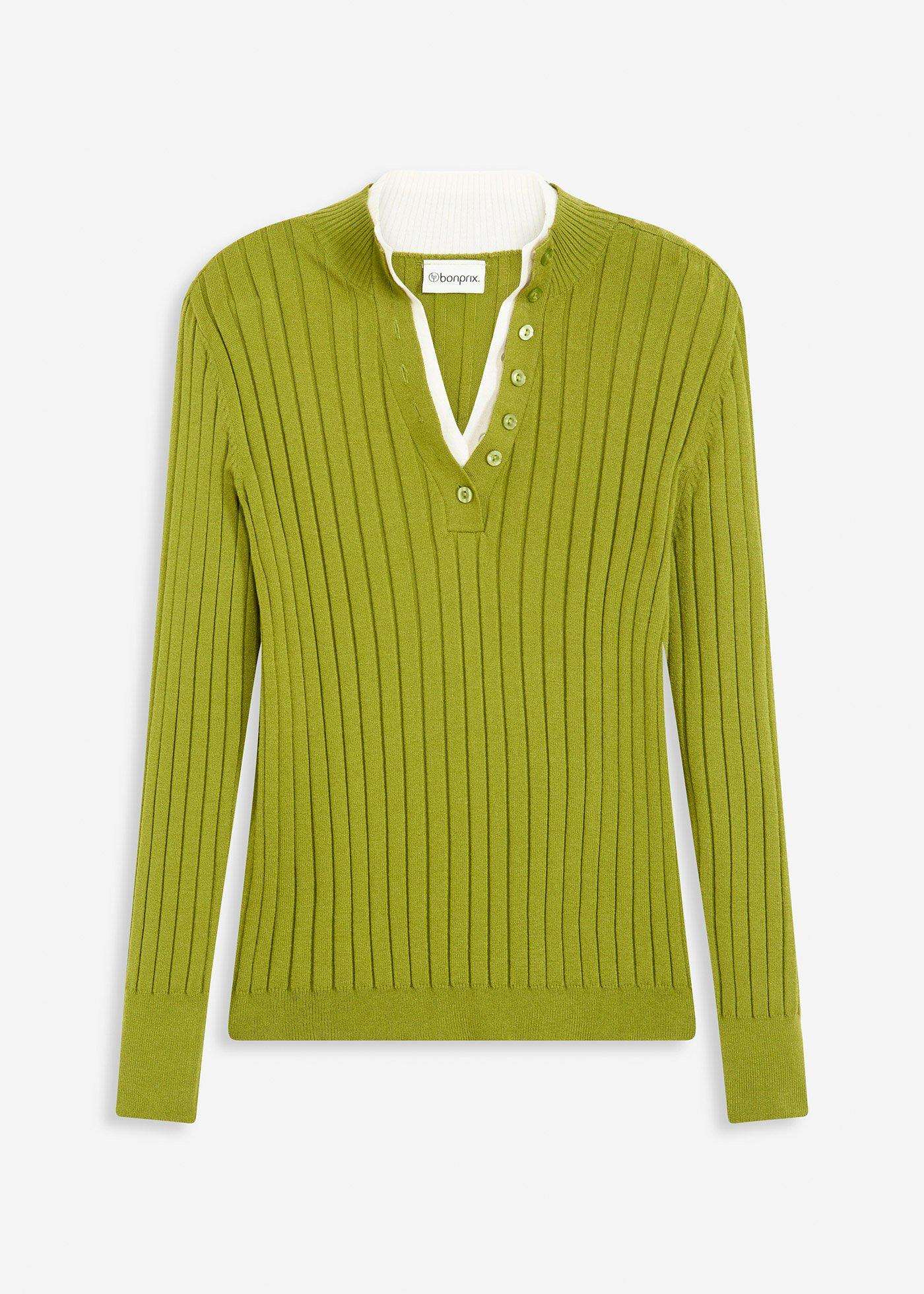 Rebrast fino pleten pulover z viskozo v dvoplastnem videzu