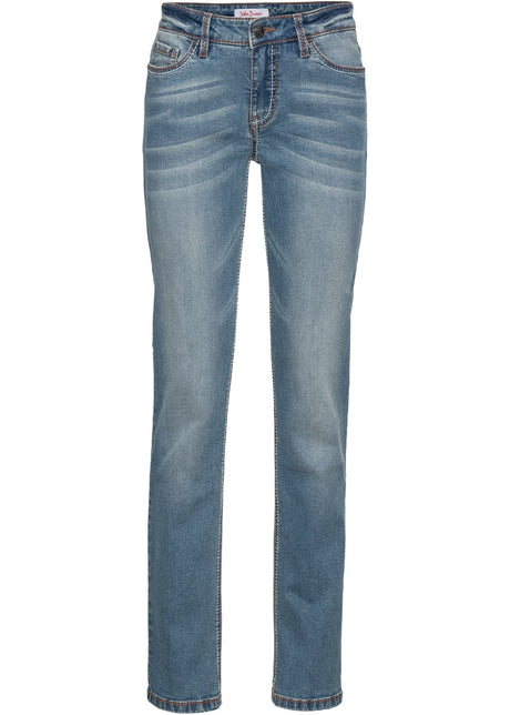 Ravne kavbojke s srednje visokim pasom in stretch materialom