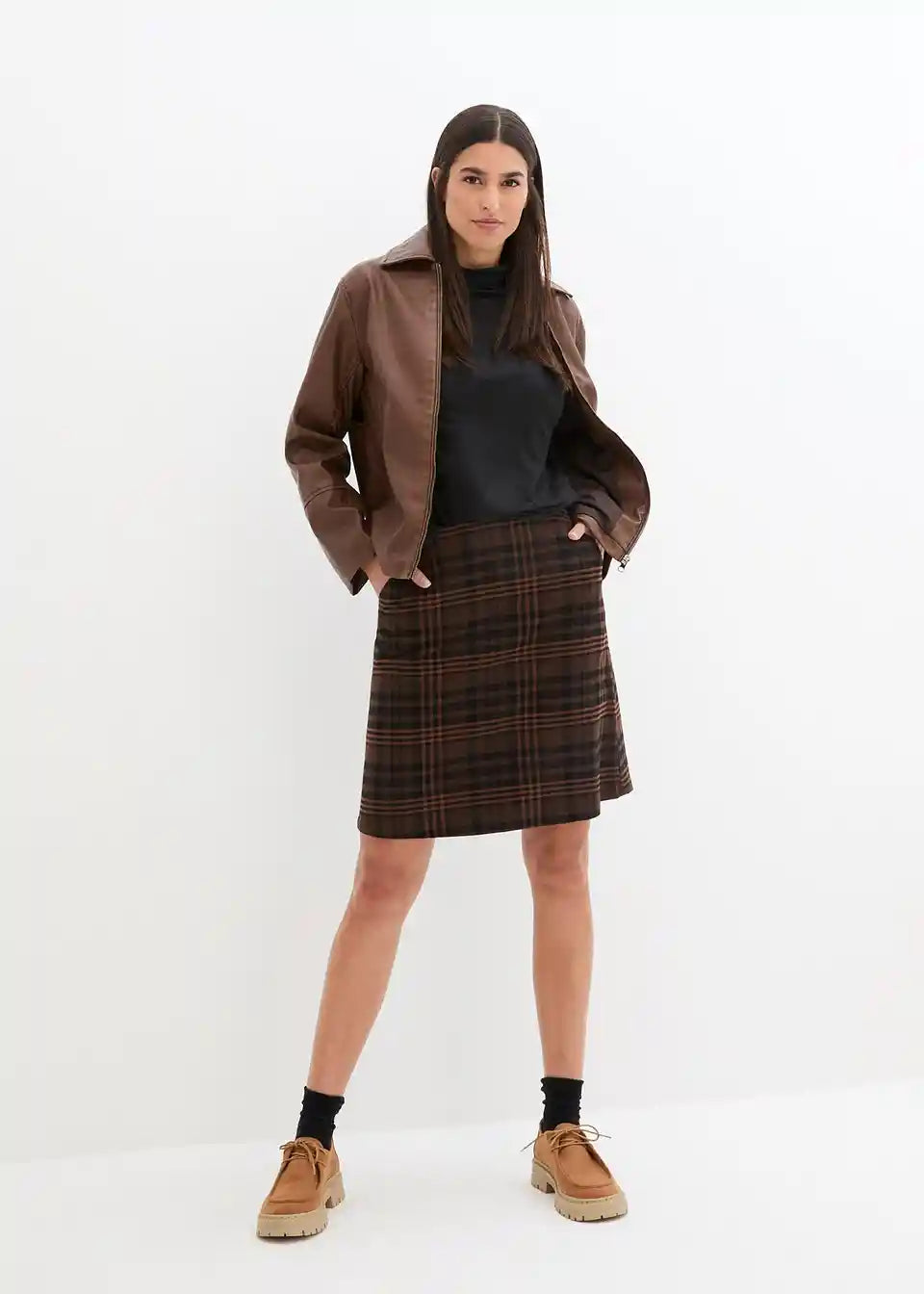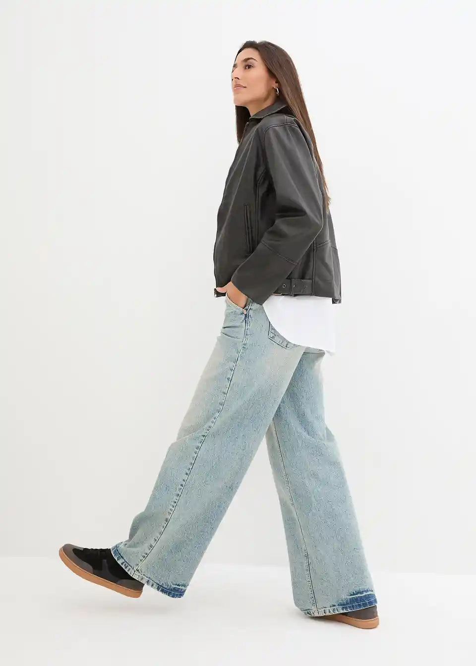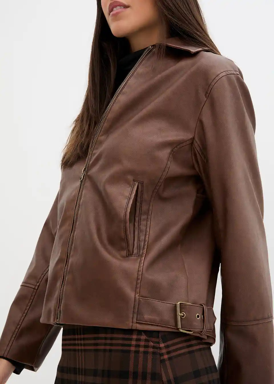 Verkürzte Lederimitat-Jacke mit Reißverschluss