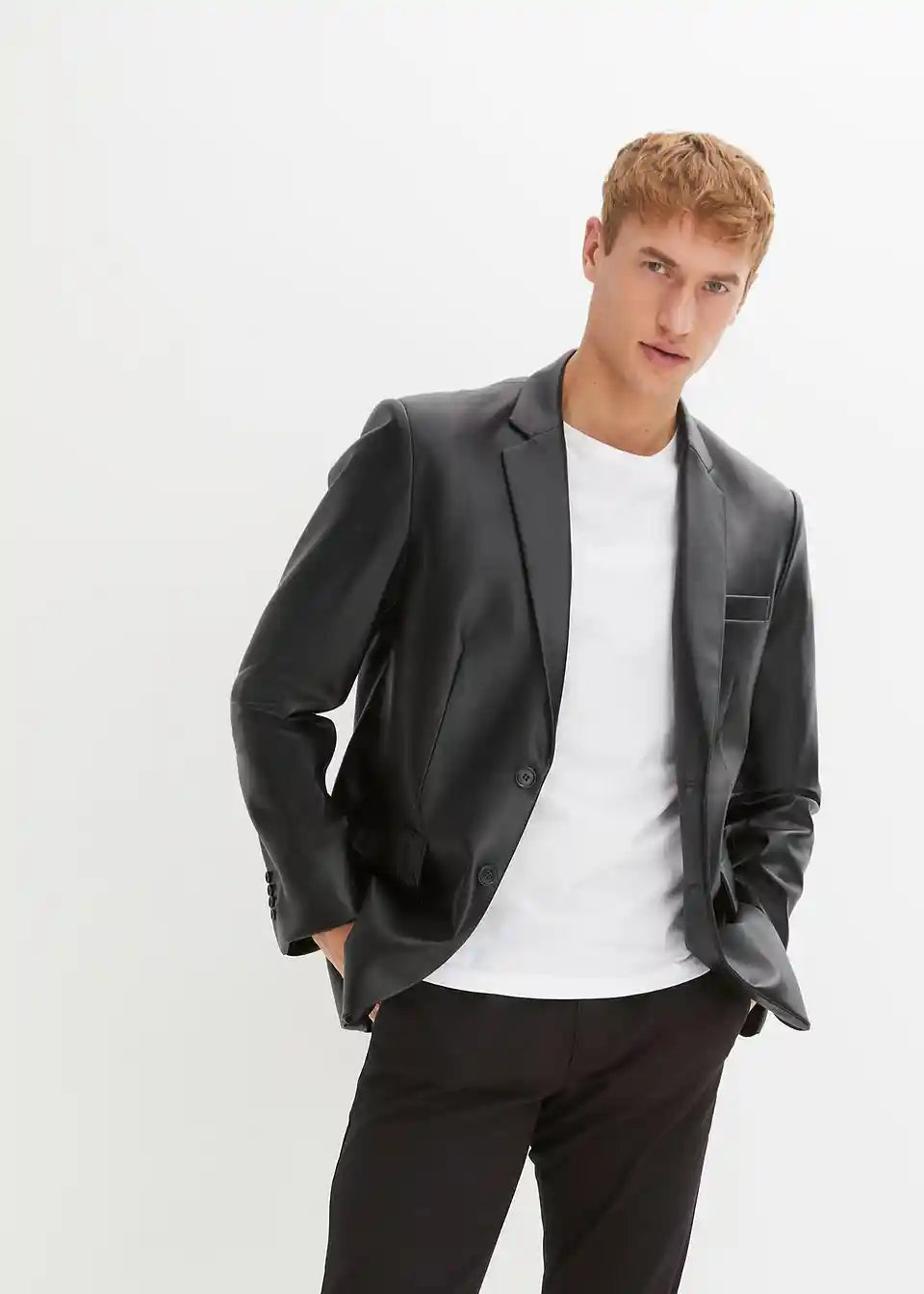 Cooles Sakko in Lederoptik, mit zwei Außentaschen und zwei Innentaschen