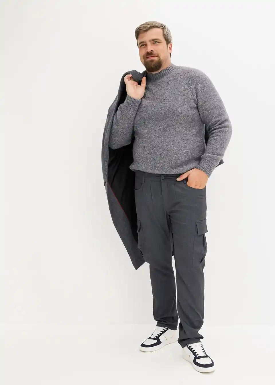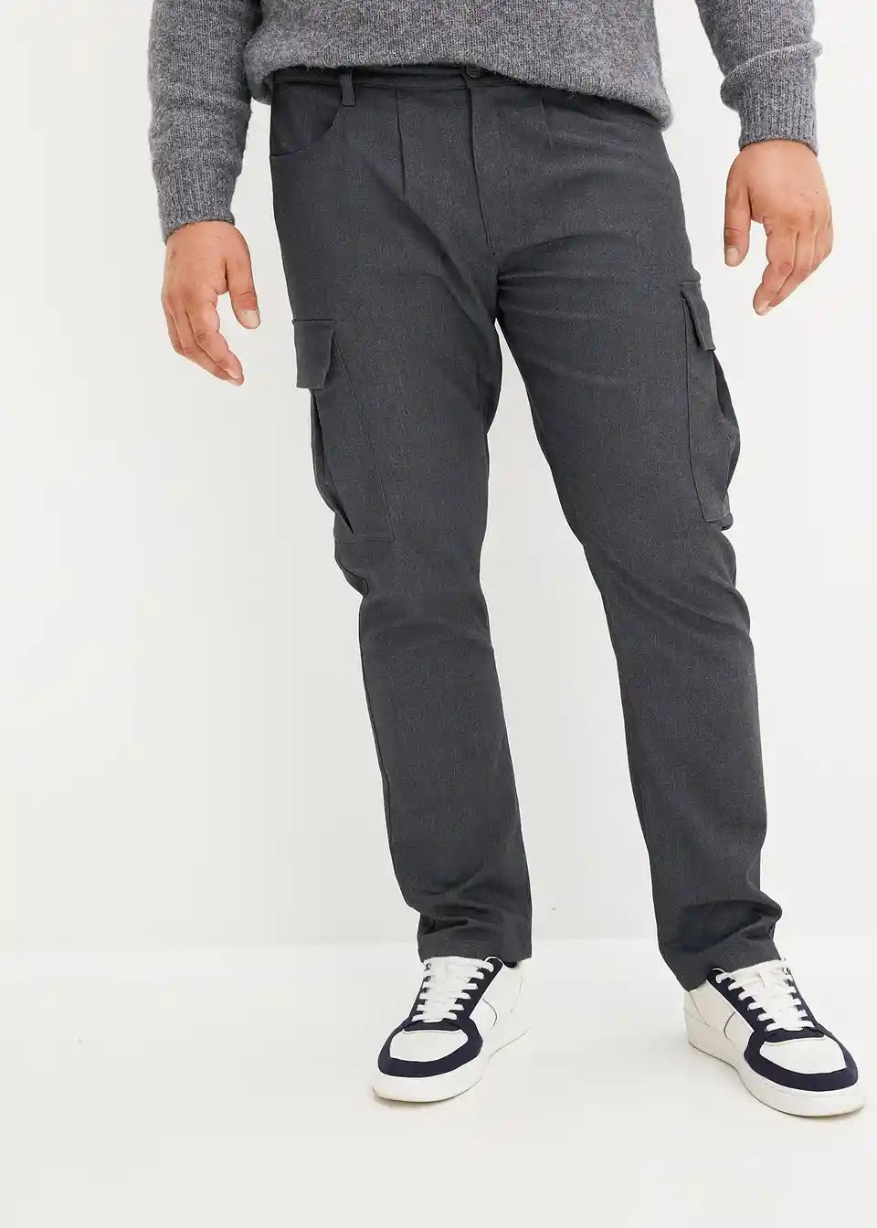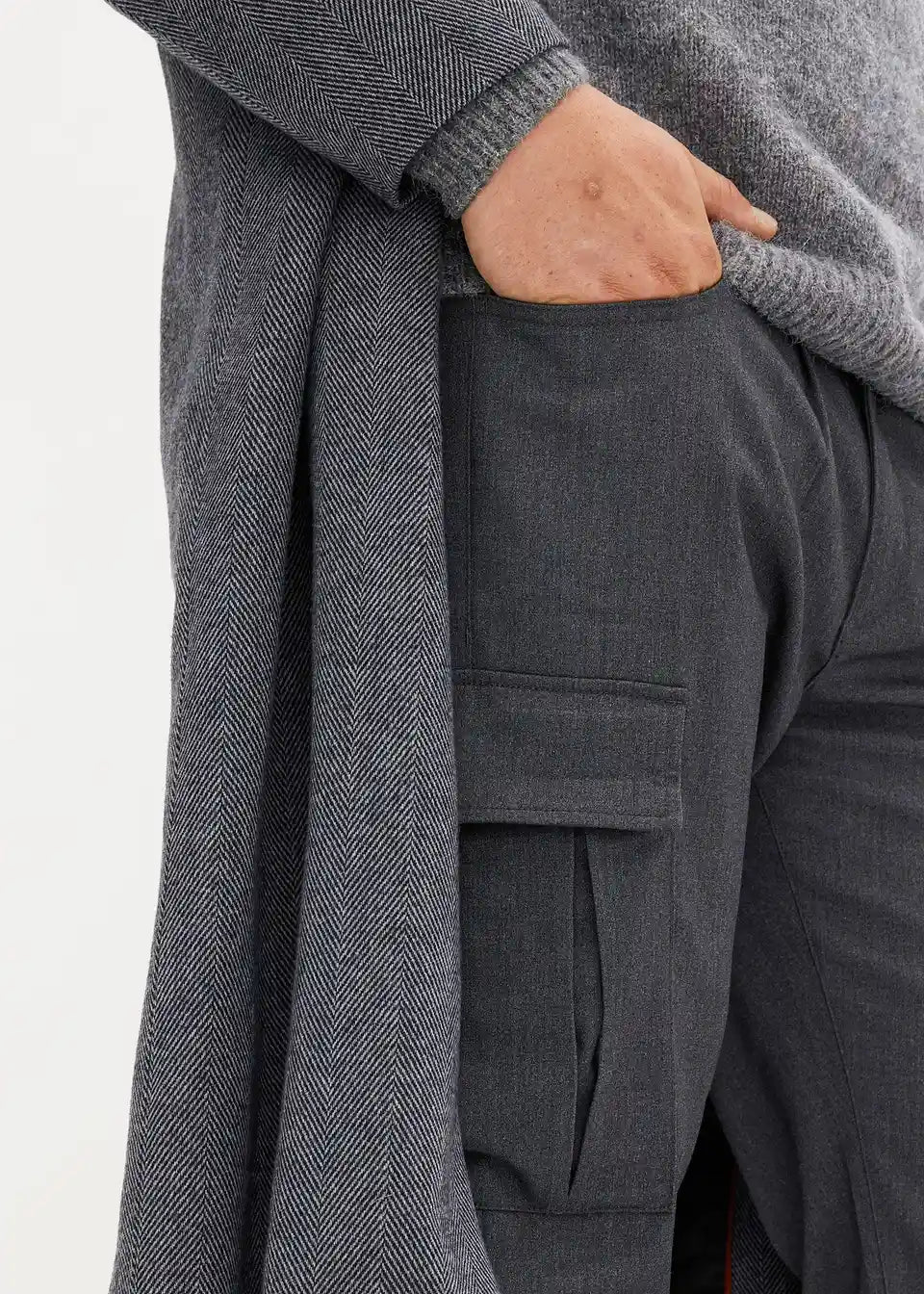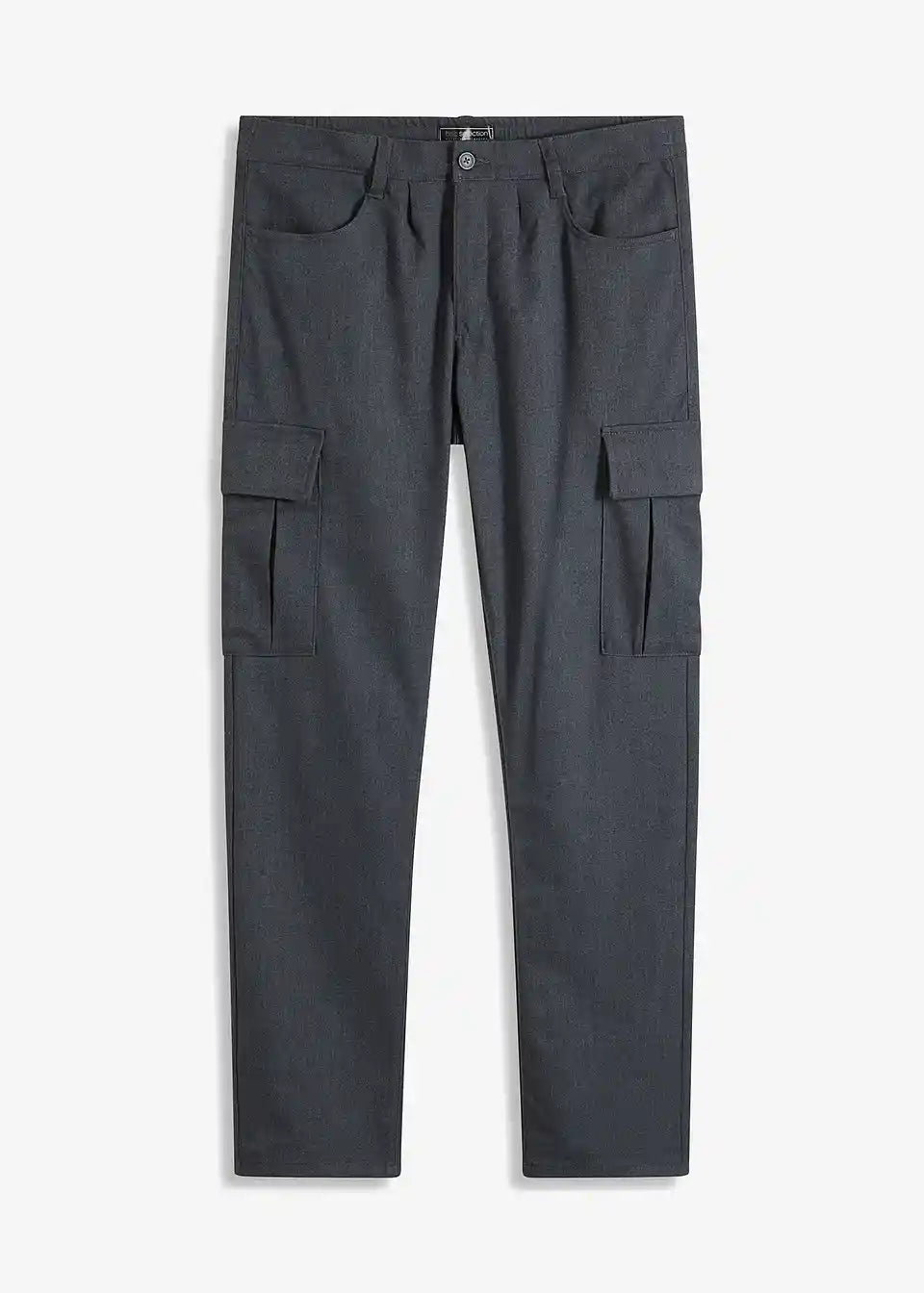Regular Fit Flanell Cargohose mit Bundfalte, Straight