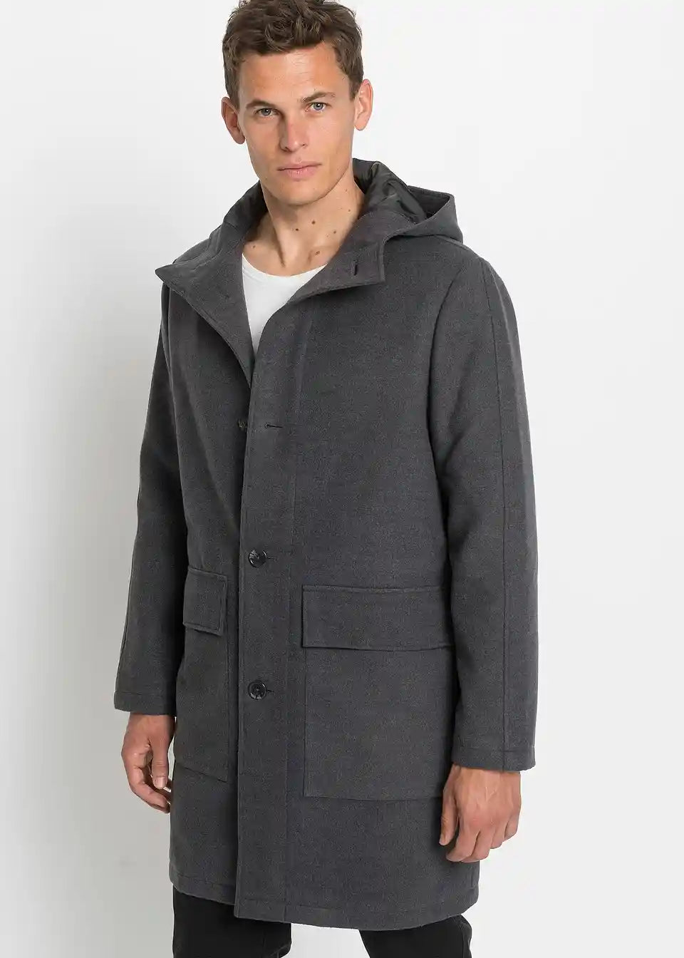 Schöner Kurzmantel in Wolloptik mit Kapuze