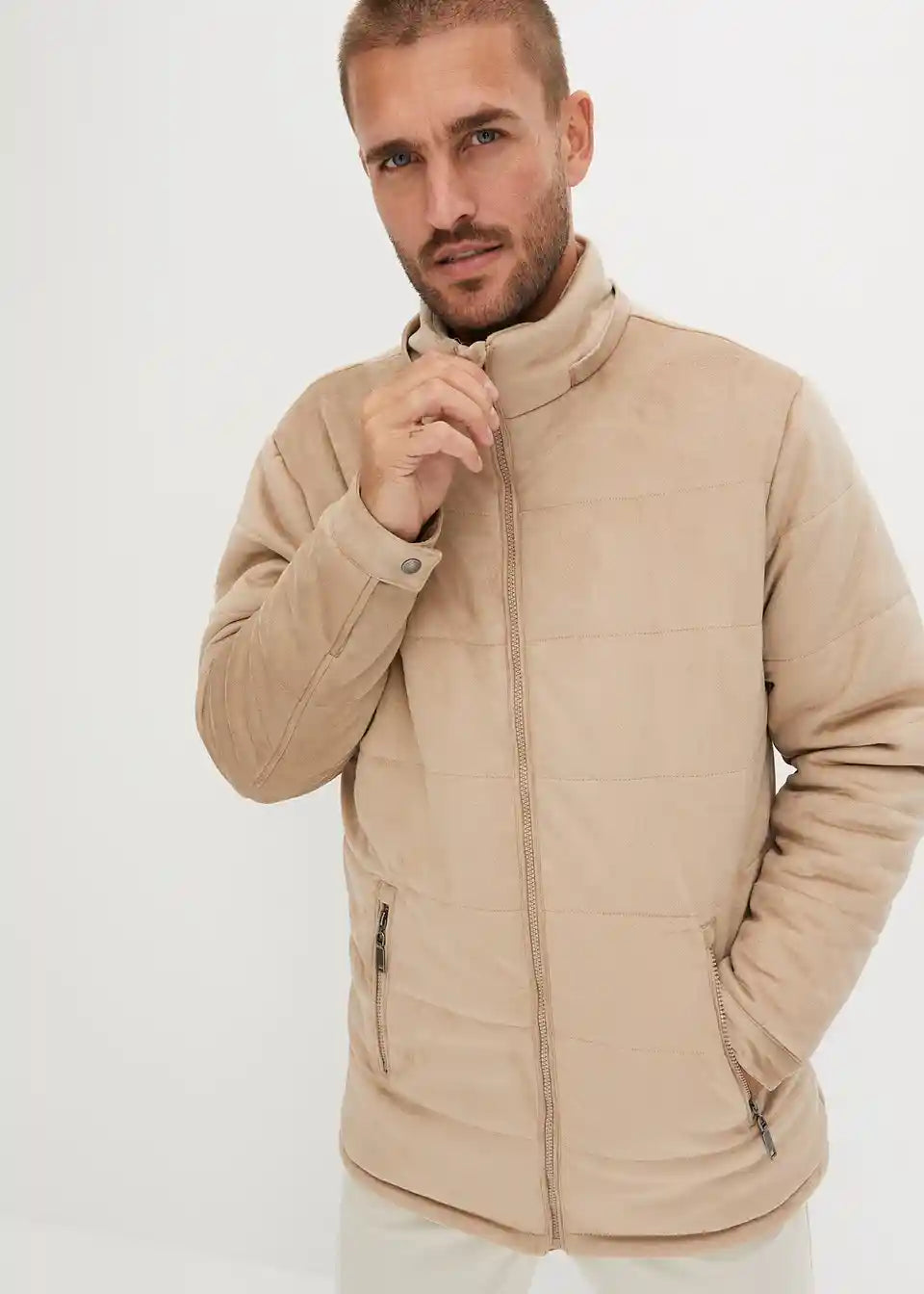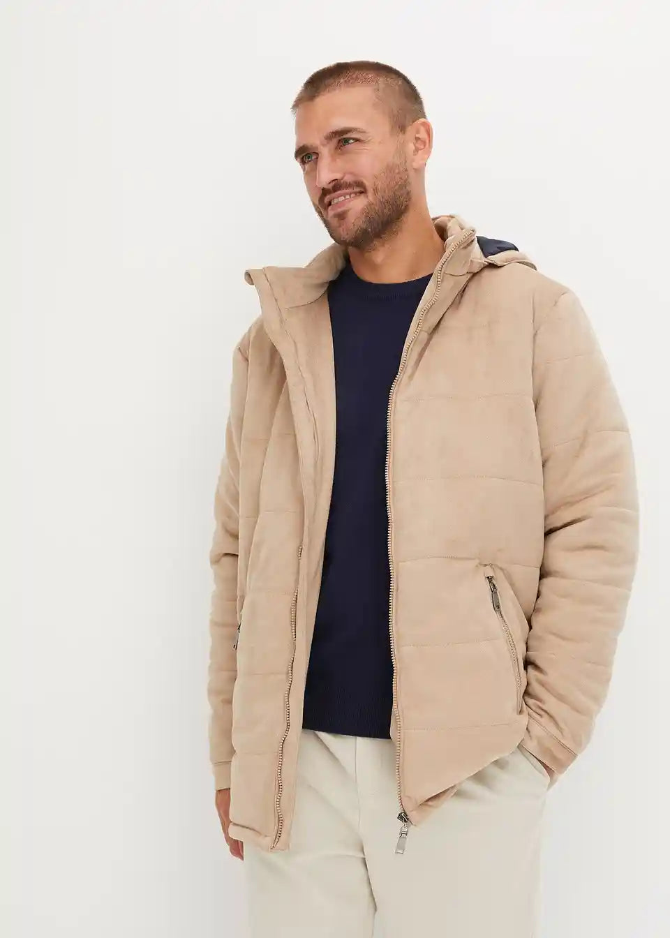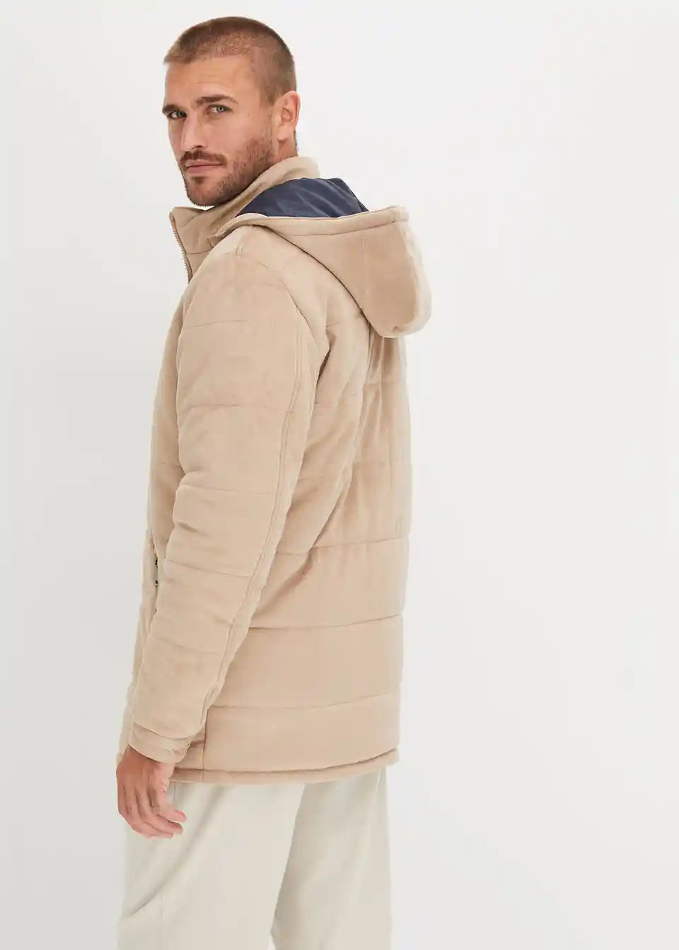 Steppjacke mit Kapuze in Veloursoptik