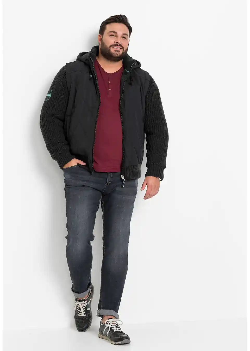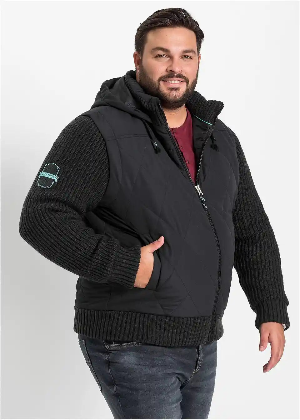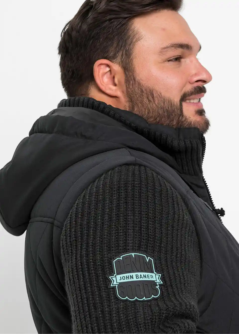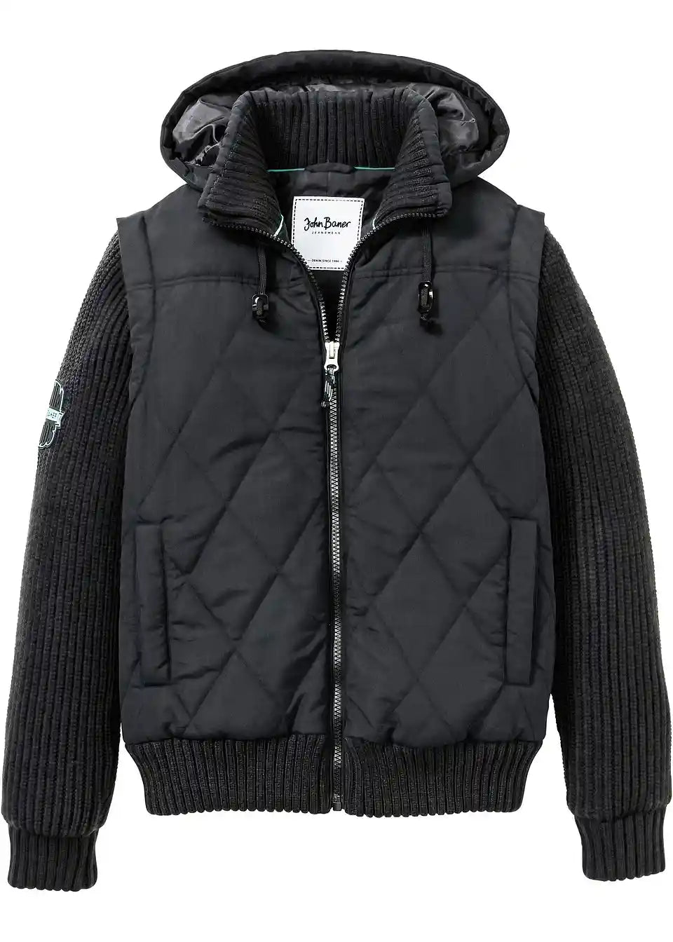 Ein sportlicher Begleiter für kühle Tage - das ist diese legere Jacke mit Strickärmeln im Regular Fit. Die kurze Jacke von John Baner ist grob gesteppt und mit zwei seitlichen Eingrifftaschen gestaltet. Ärmel, Kragen und Saum überzeugen mit ihrem gerippten Strickmaterial.Die Kapuze der Regular Fit Jacke lässt sich mit einer Kordel regulieren.