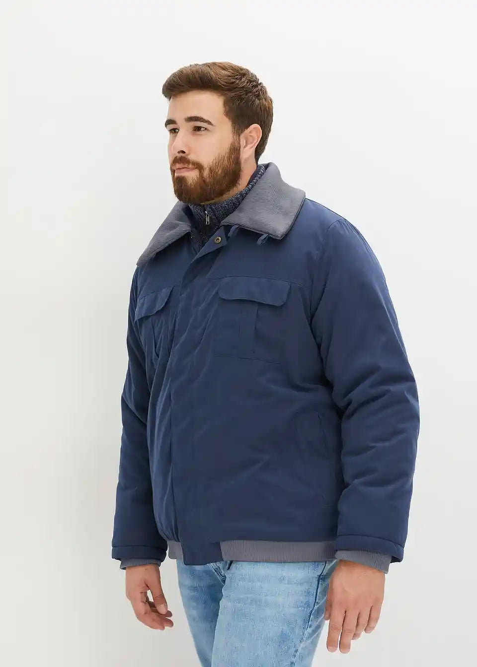 Warm gefütterte Winterjacke mit angesagten Strick-Details