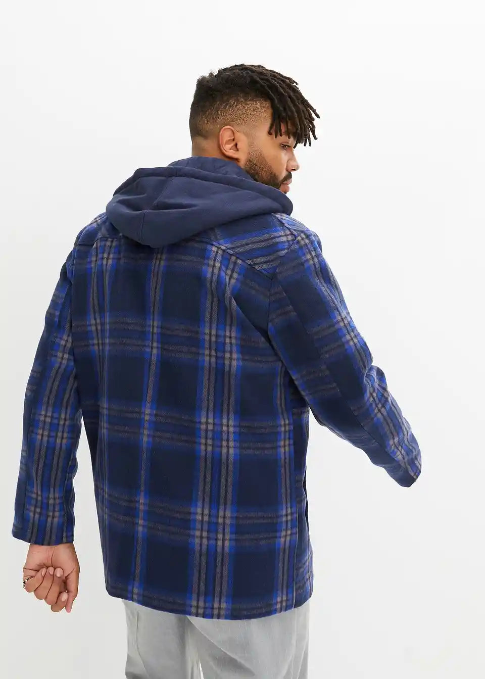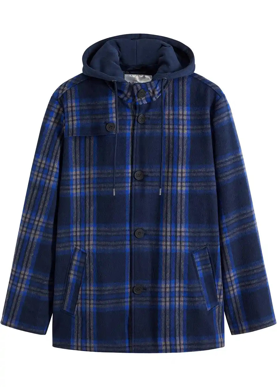 Modische Langjacke im dezenten Karo mit Kapuze