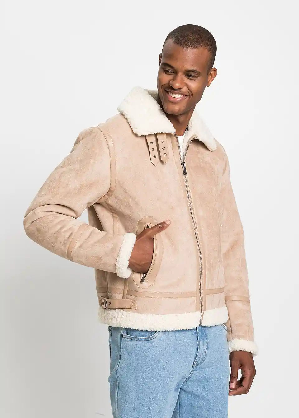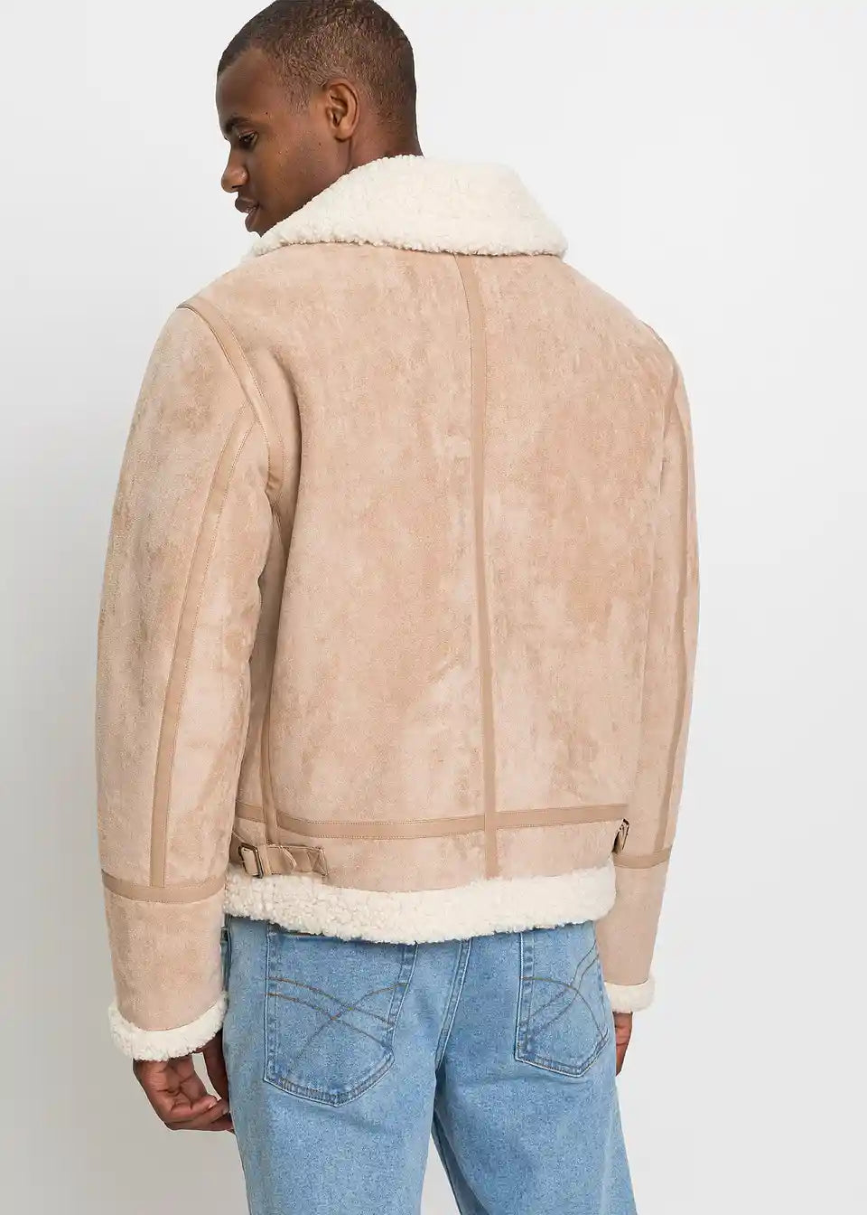 Kernige Lederimitat-Bomberjacke mit Teddyfutter
