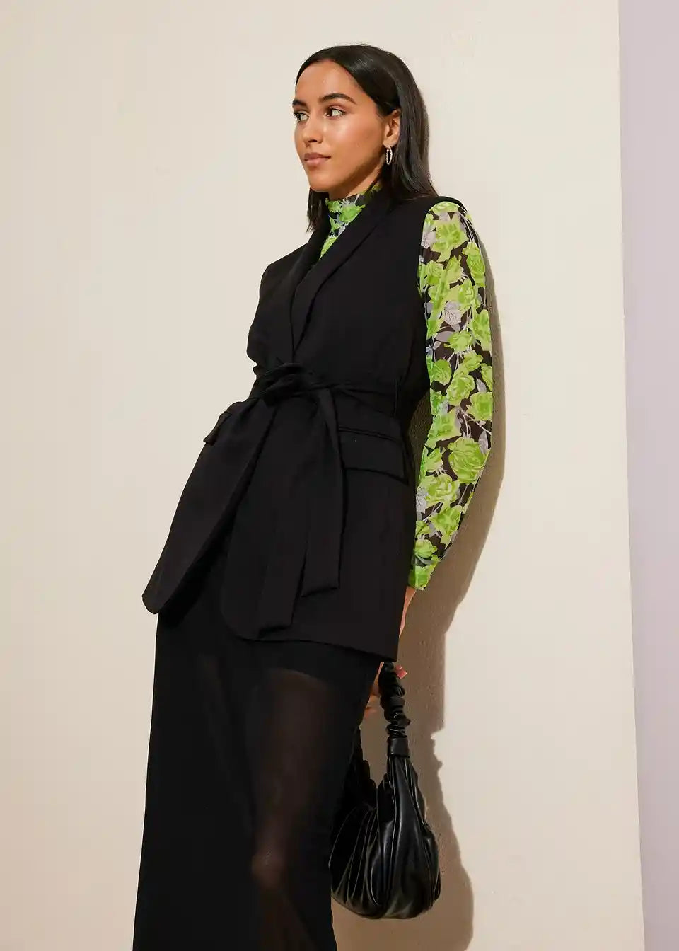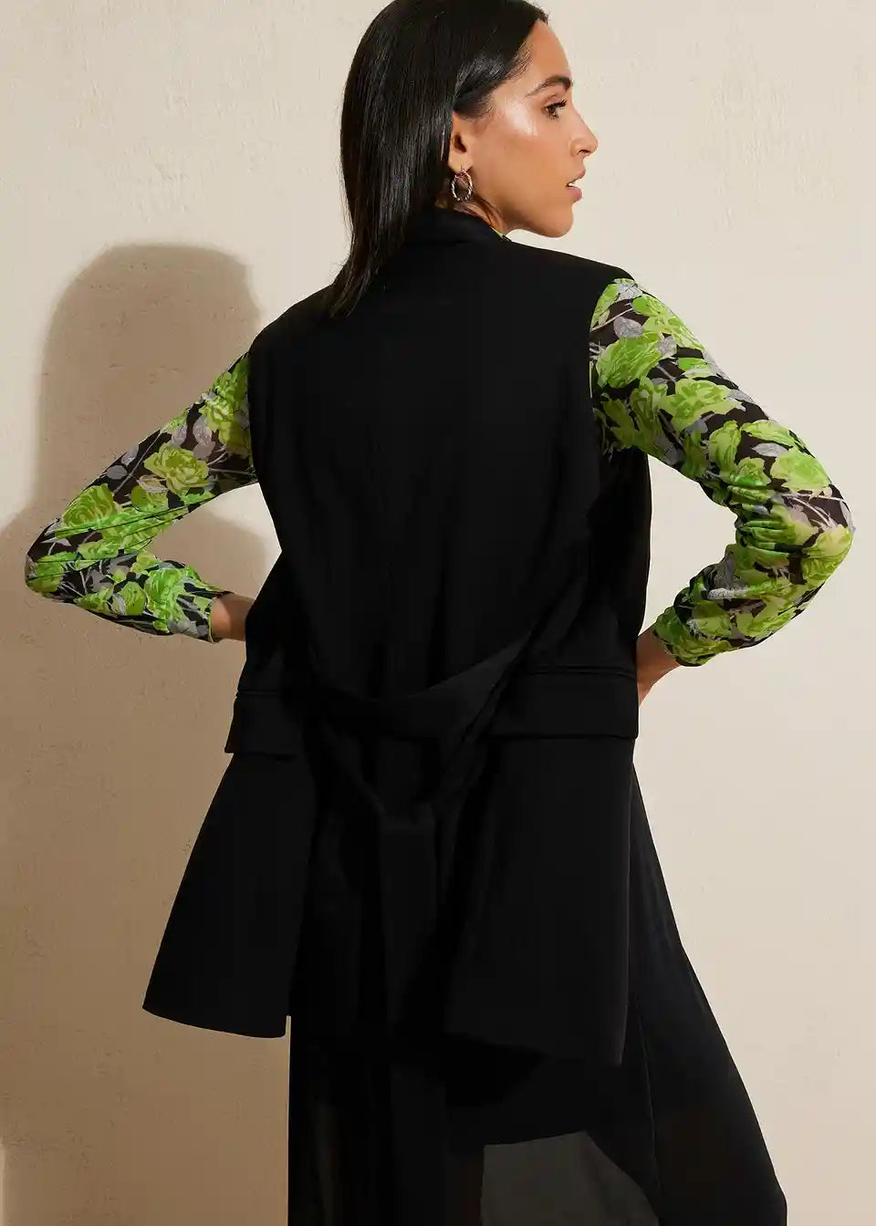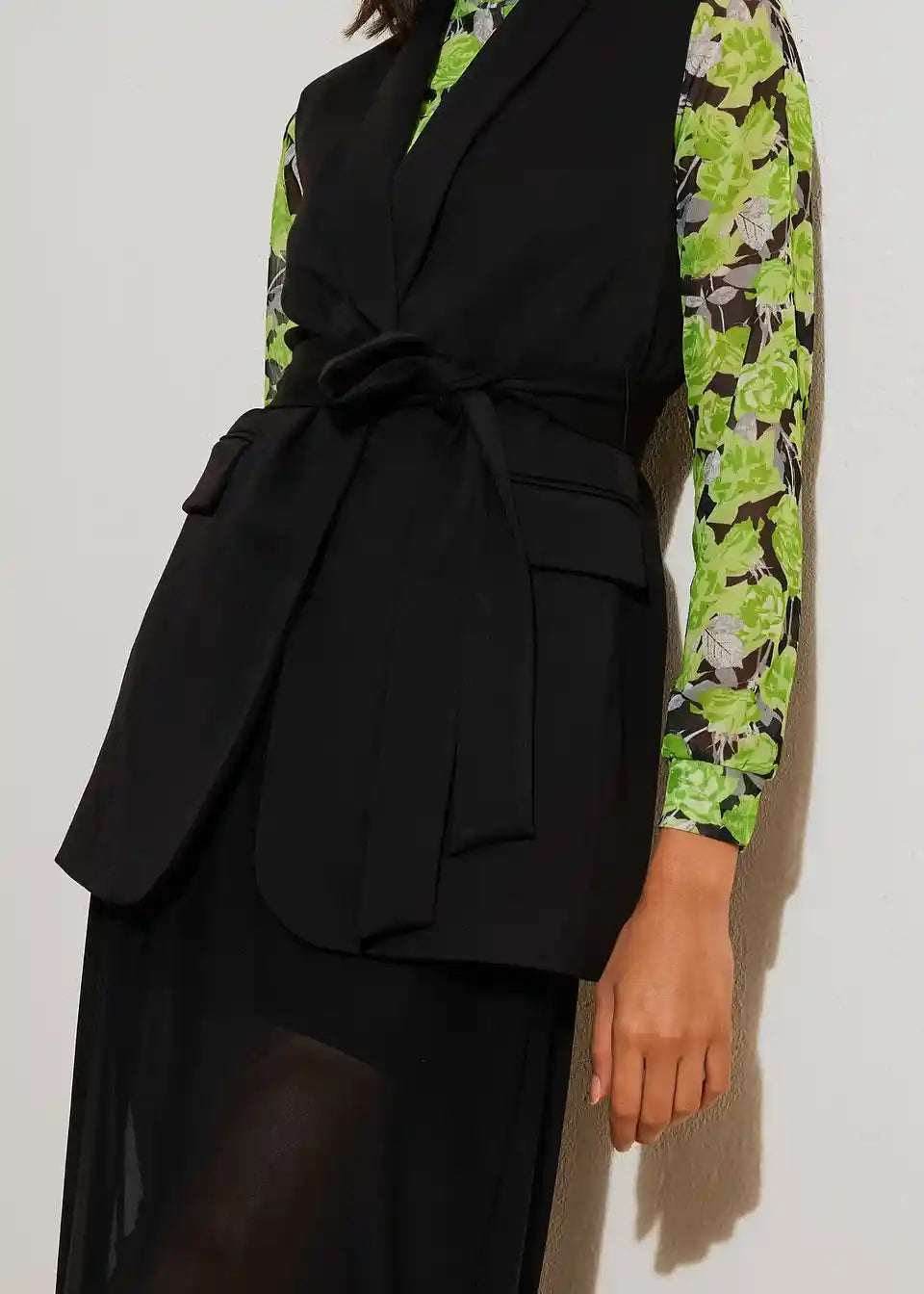 Schöne Longweste im Blazer-Stil mit Bindeband.