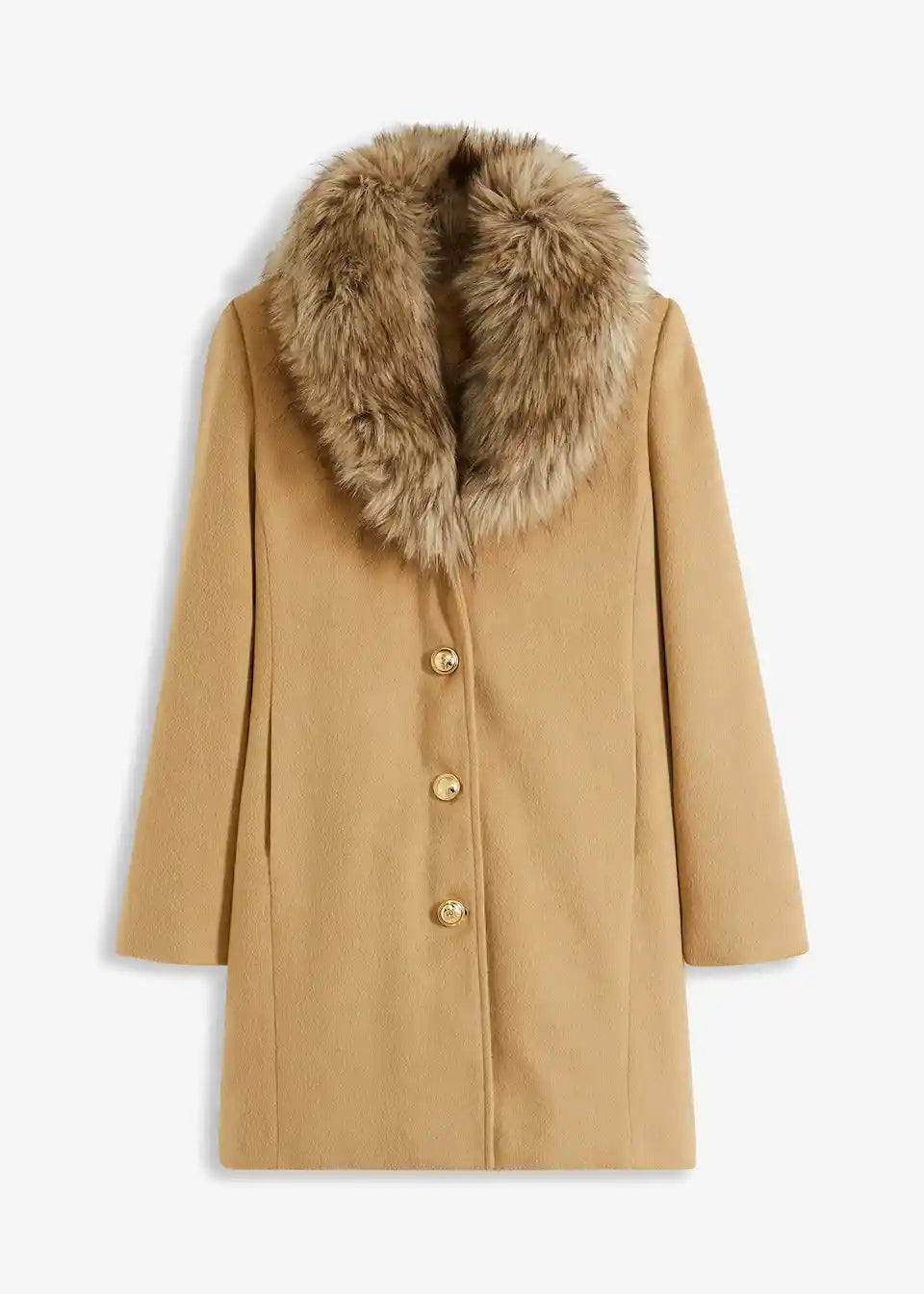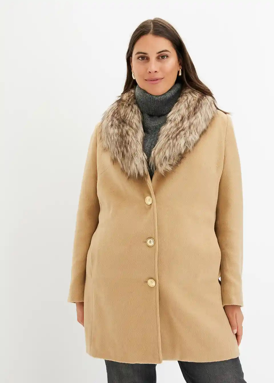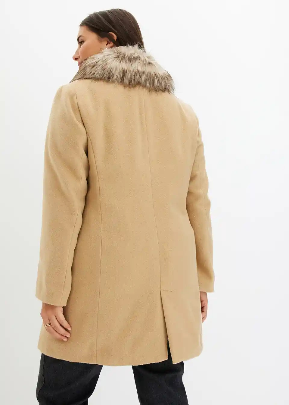 femininer Mantel mit abnehmbaren Fellimitat-Kragen und dekorativen Knöpfen vorne