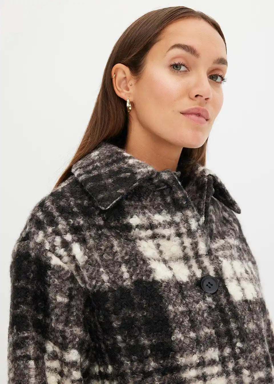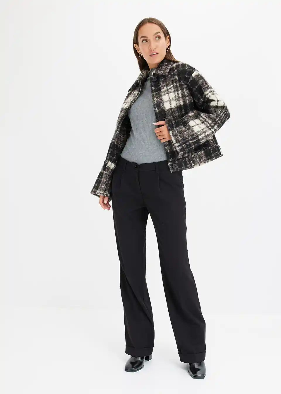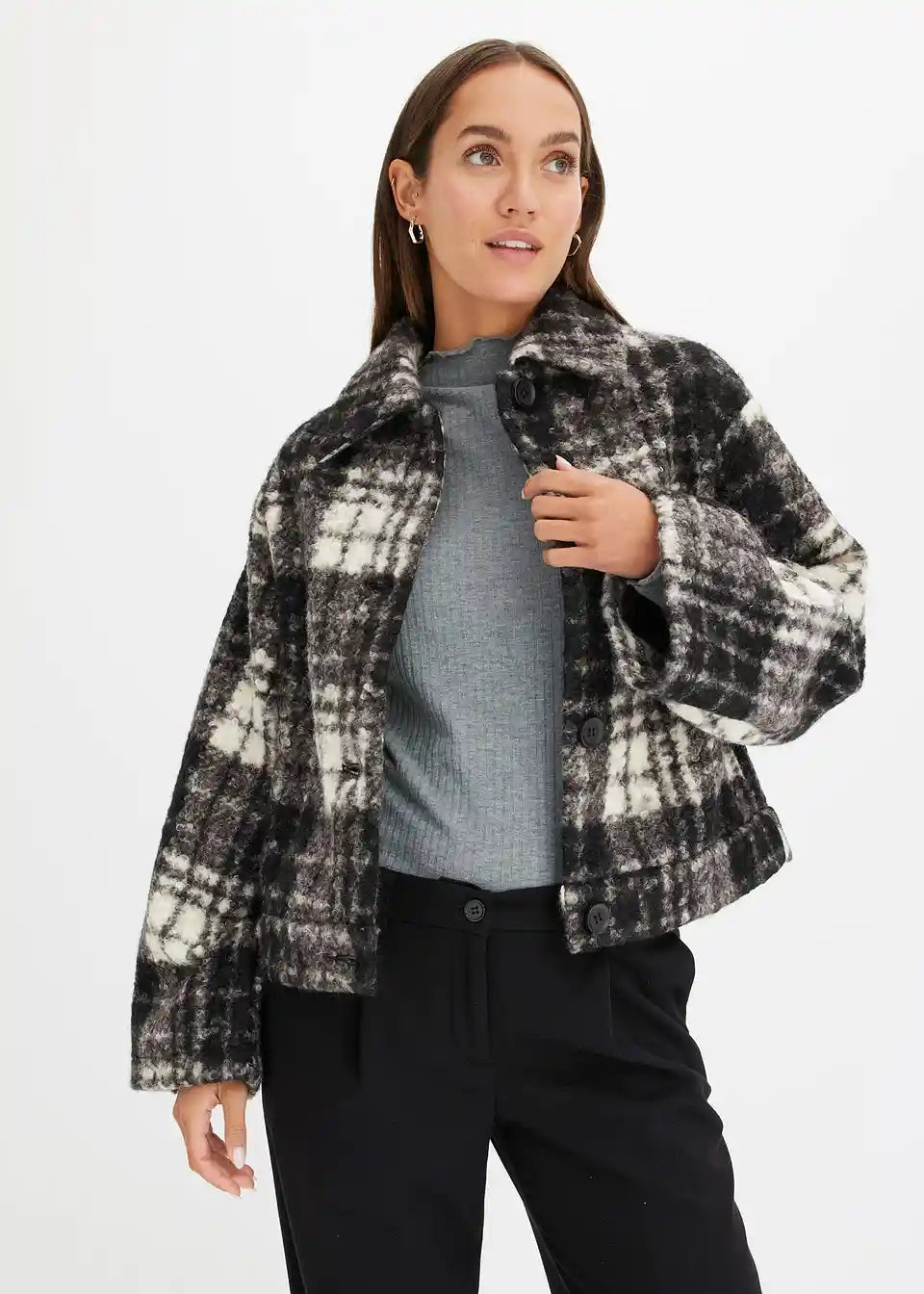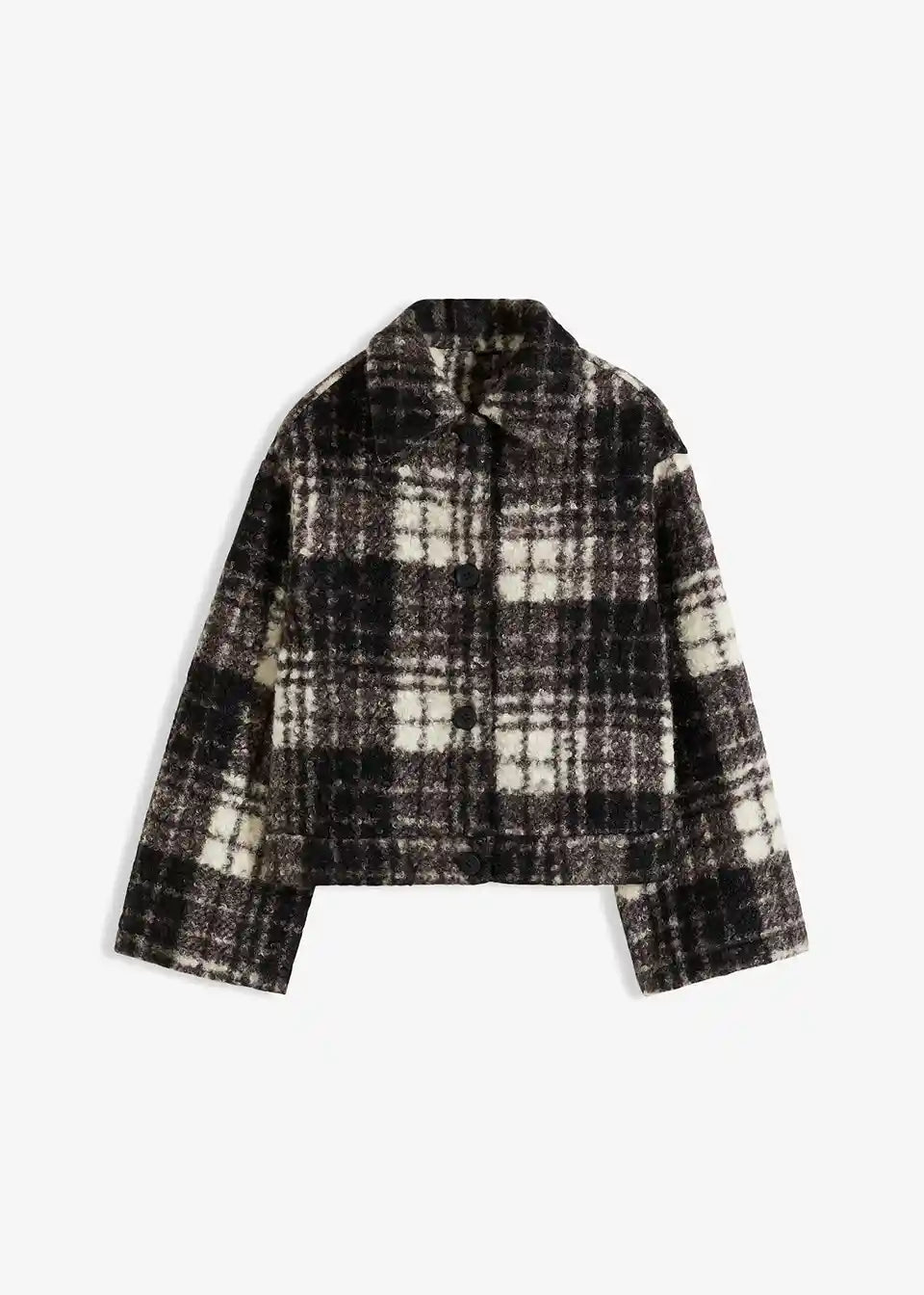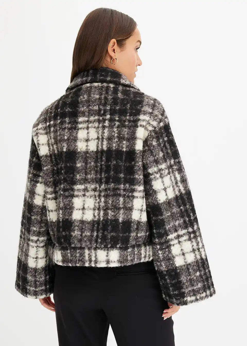 modische kurze Jacke mit auffälligem Karo-Design und Knopfverschluss vorne