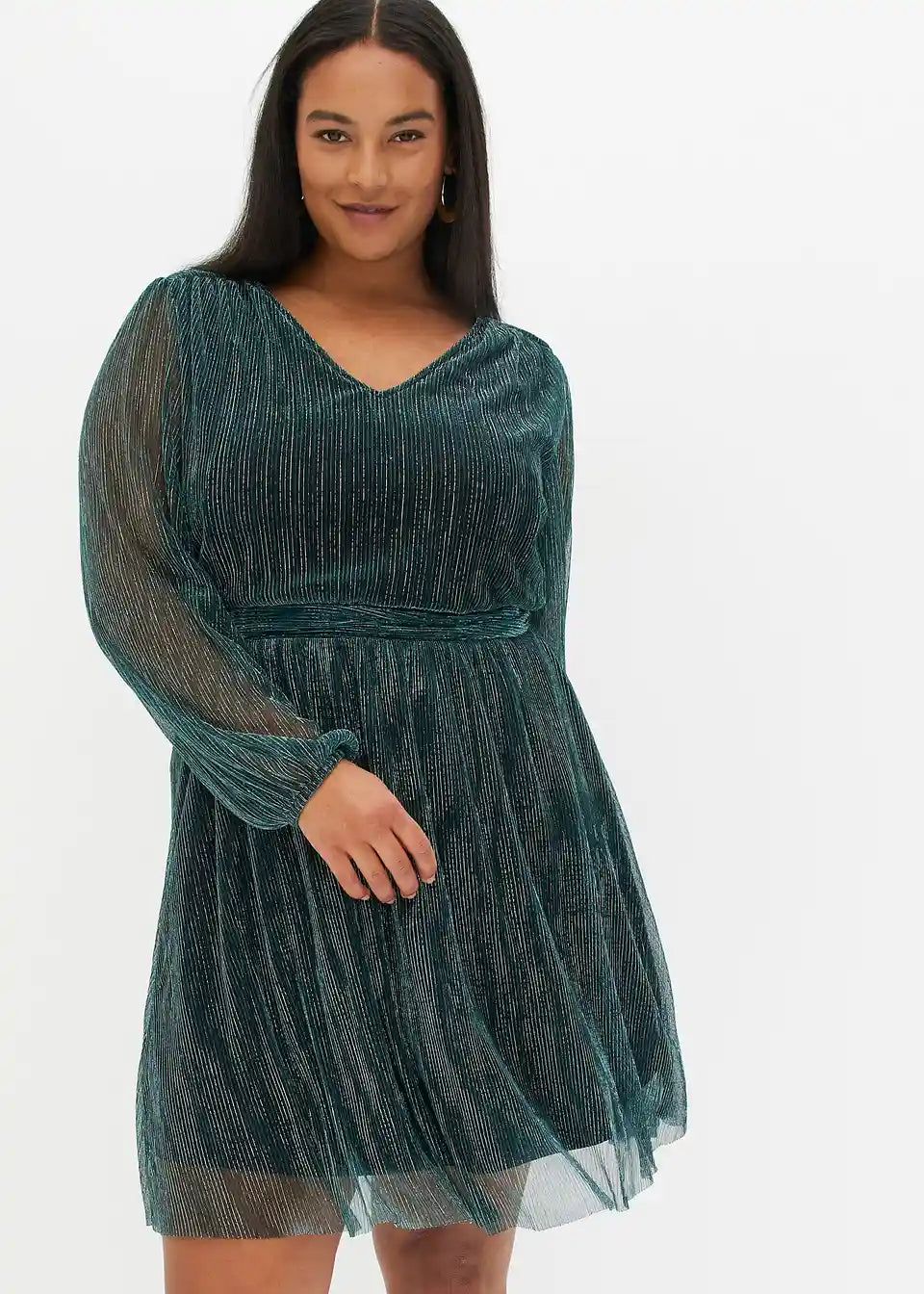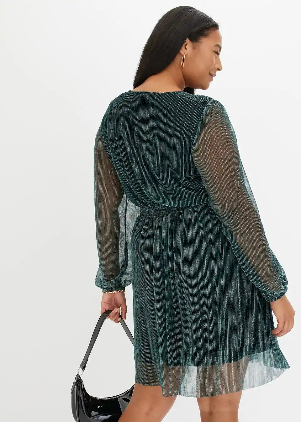 modisches Kleid mit Glitzereffekt und tiefem V-Ausschnitt vorne