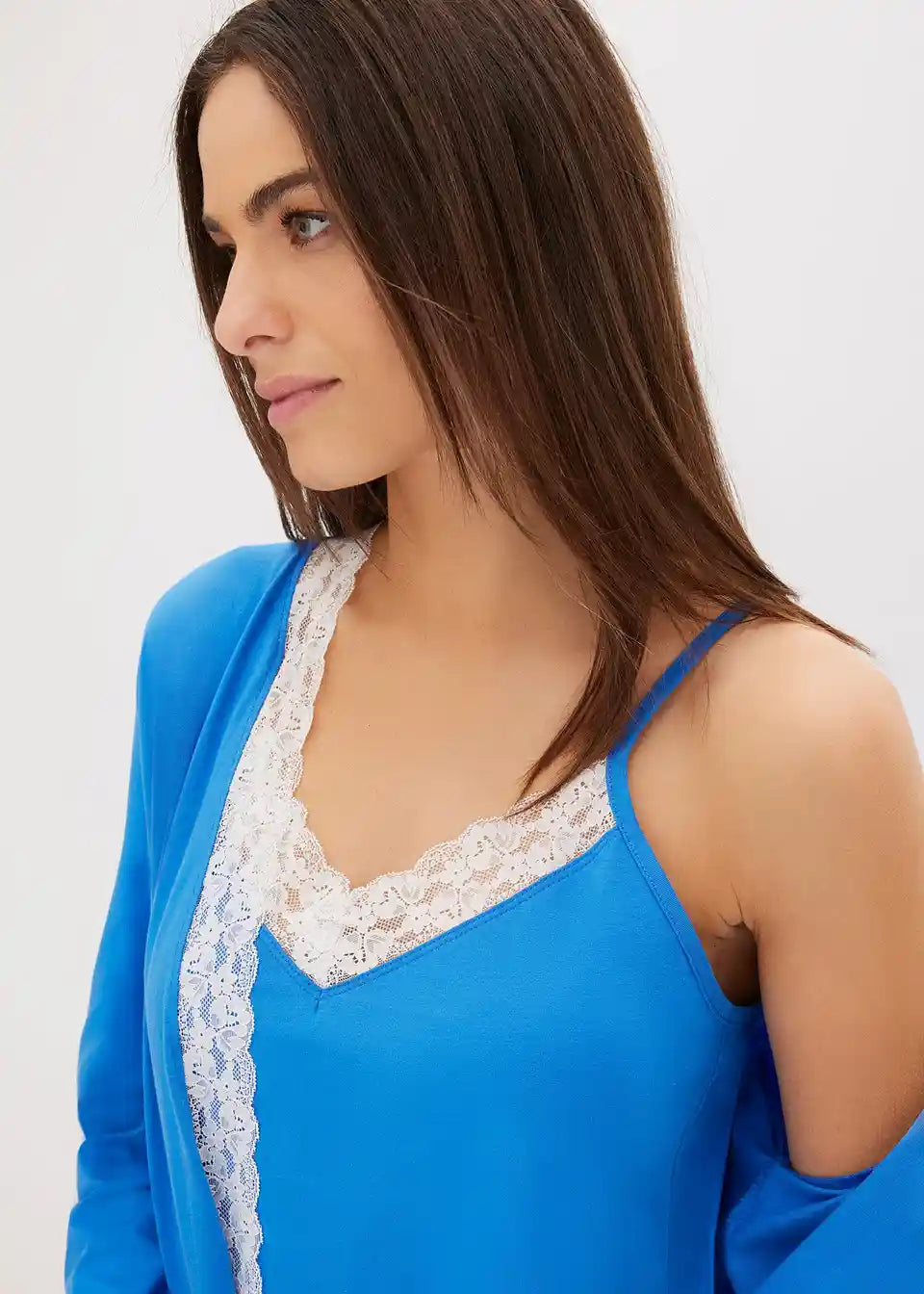 Femininer Pyjama mit Morgenmantel mit schönen Spitzendetails