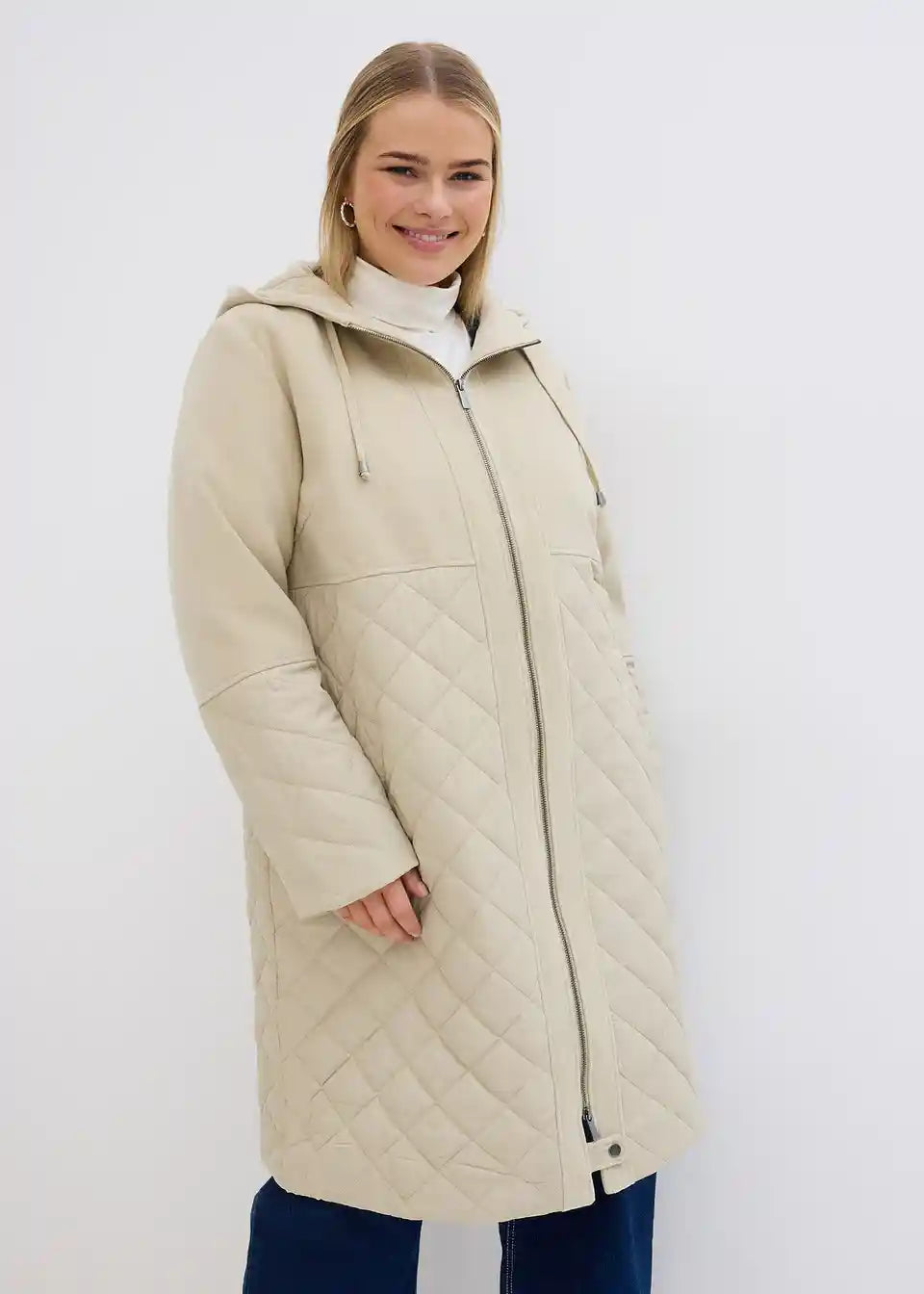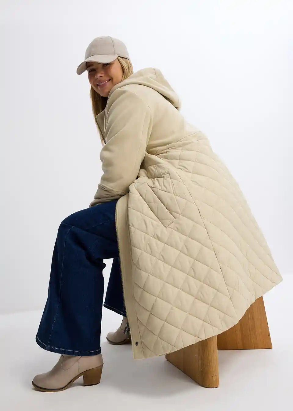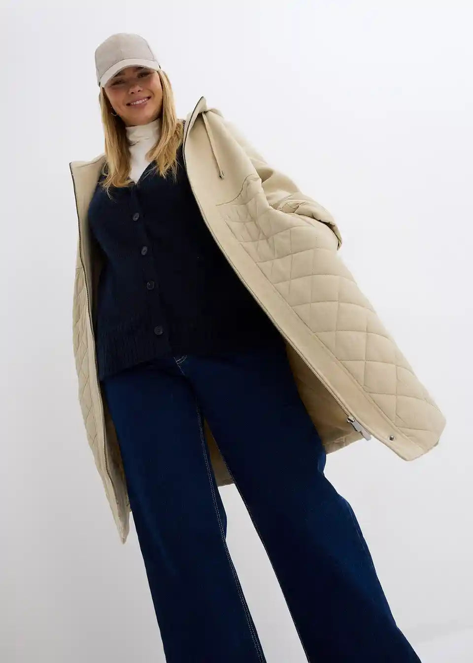 Geschmackvoller Mantel mit Kapuze und geradem Schnitt aus einem ansprechenden Materialmix