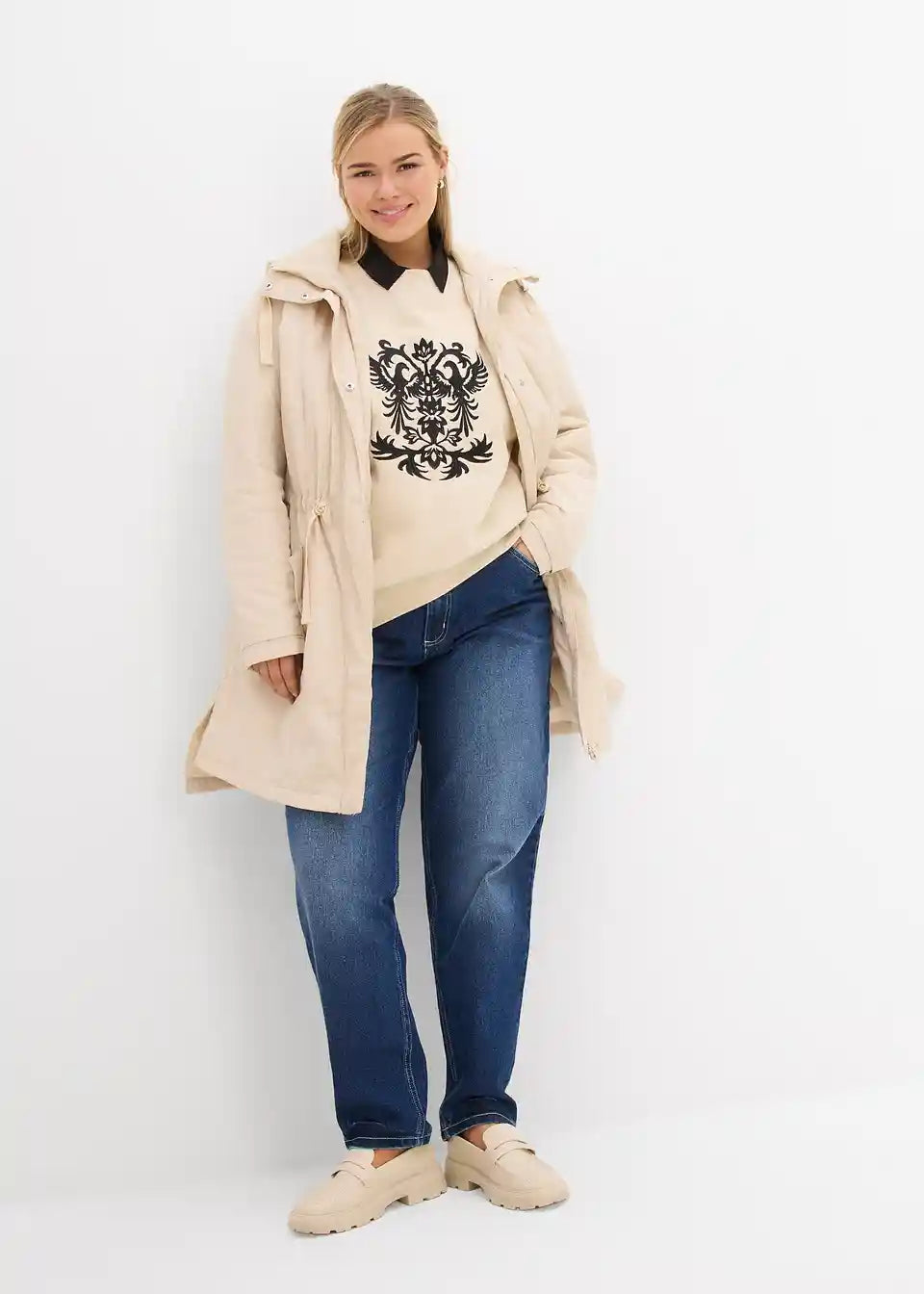 Weit geschnittene Jacke mit Vokuhila- Saum und Schlitzen, leicht wattiert
